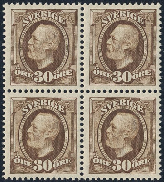 Sweden. Facit 58d ★★, Block of four. Very beautiful. SEK 10400