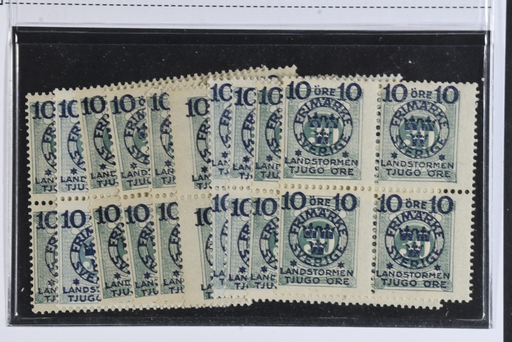 Sweden. Facit 122 ★★, 1916 Landstorm II 10+TJUGO / 30 öre green. 40 ex. SEK 16000