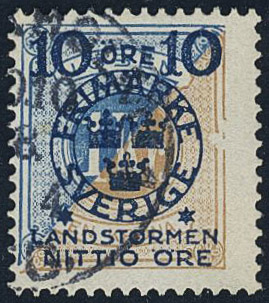 Sweden. Facit 124v1 used, 10+NITTIO öre på 1 kr, right frame broken Pos. 33 (only 219 printed). SEK 6000