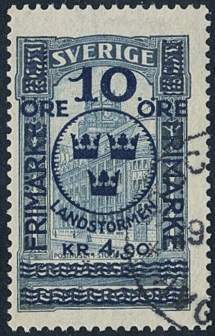 Sweden. Facit 125 used, 1916 Landstorm II 10+4,90 / 5 kr blue. SEK 3000
