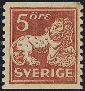 Sweden. Facit 142Acz ★★, 5 öre brown type II vertical perf 9¾ with vm turned lines + KPV. Good centering. SEK 6000