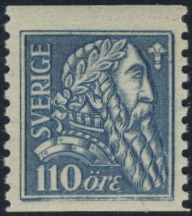 Sweden. Facit 154a ★★, 1921 Gustaf Vasa 110 öre blue – dull blue vertical perf 9¾ on yellowish paper (Agry). Signed Kan. SEK 1900