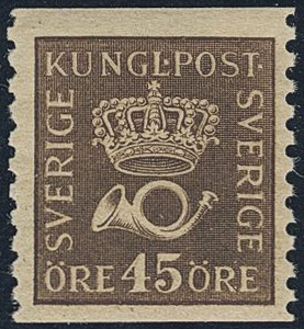 Sweden. Facit 160 ★★, 45 öre brown vertical perf 9¾ type I. SEK 1700
