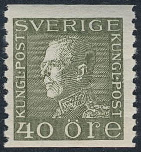 Sweden. Facit 190b ★★, 40 öre olive-green type II vertical perf 9¾ on white paper (A3). Good centering. SEK 1500