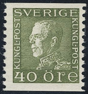 Sweden. Facit 190c ★★, 40 öre olive-like green type II vertical perf 9¾ on white paper (A3). Fair centering. Some pencil notes on back side. SEK 1500