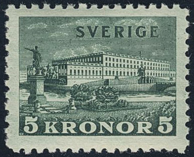 Sweden. Facit 233A ★★, 1931 The Royal Palace 5 Kr green, toned paper. SEK 2500