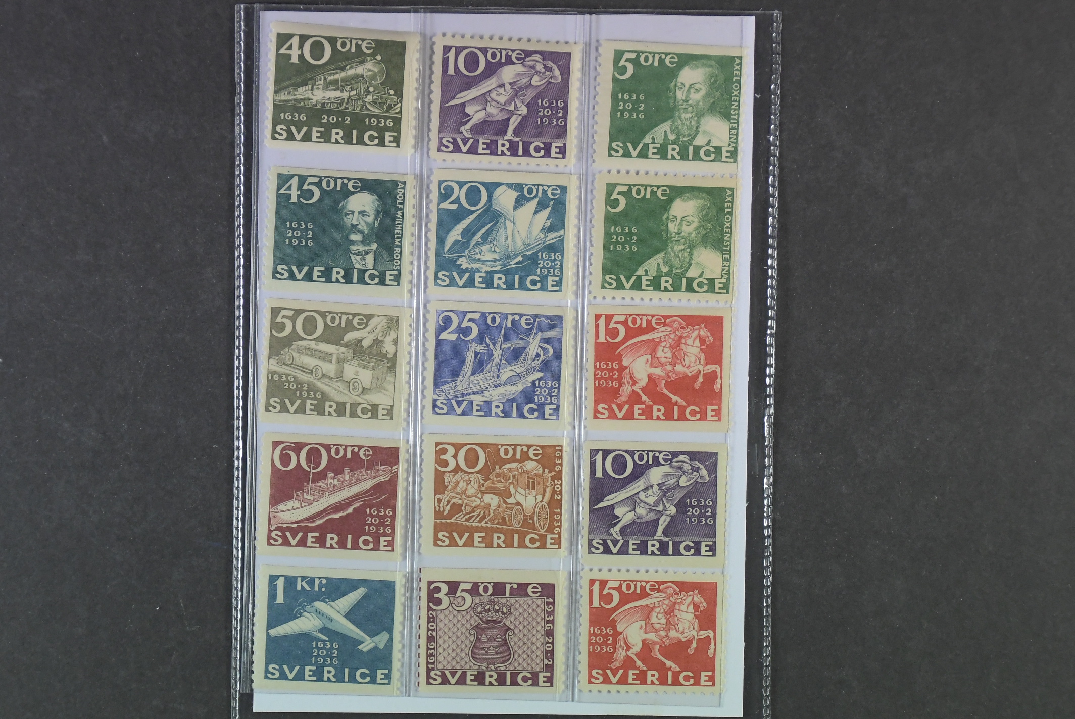 Sweden. Facit 246–57 ★★, 1936 Tercentenary of the Post Office SET (15). SEK 2800