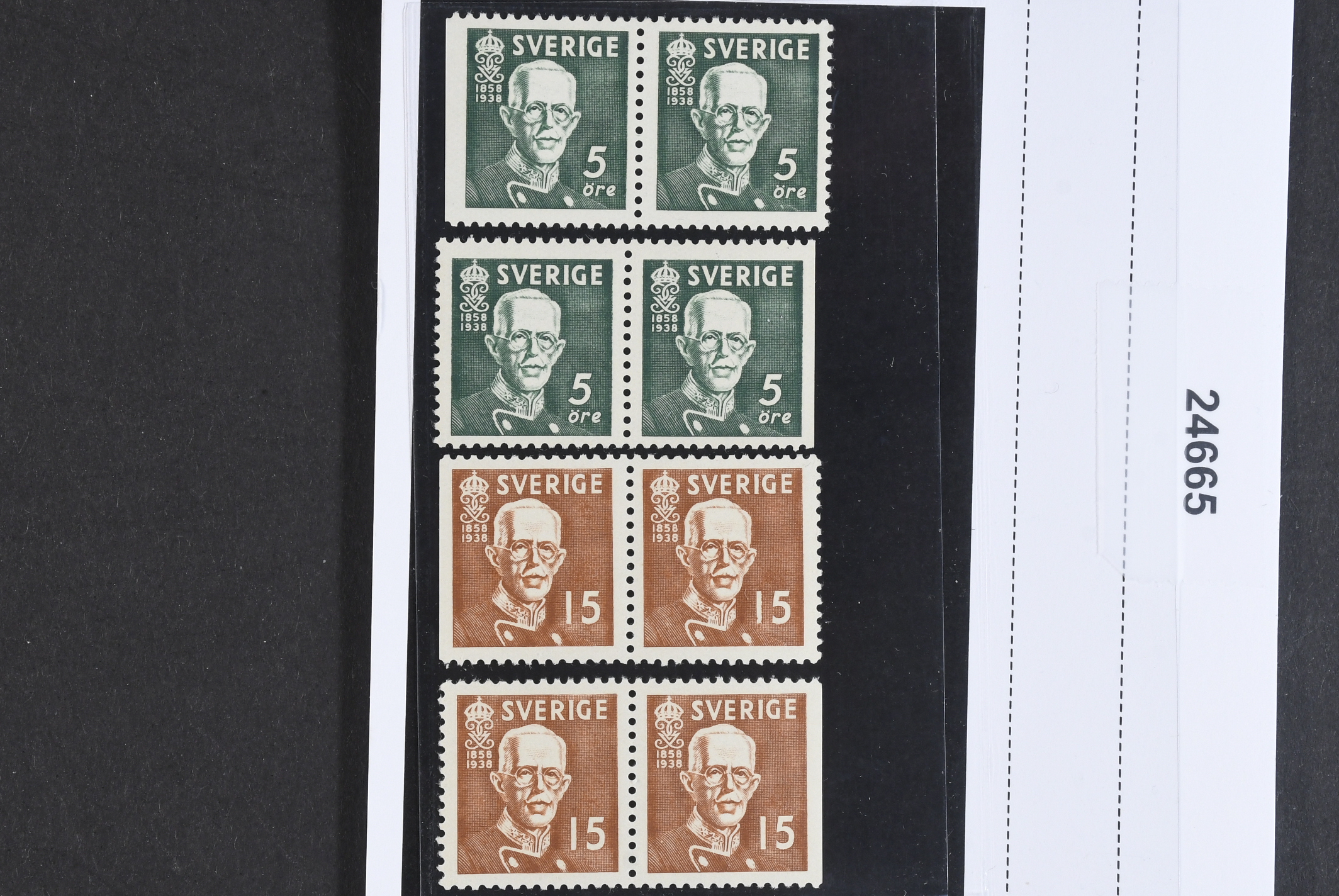 Sweden. Facit 266–67BC/CB ★★, 1938 80th Birthday of King Gustaf V 5 + 15 öre pair 3+4 and 4+3 (4). Wide margins. SEK 2300