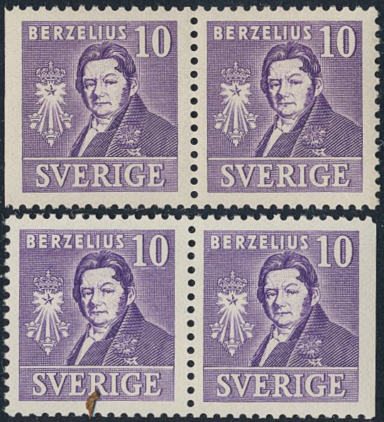 Sweden. Facit 320BC/CB ★★, 1939 Royal Academy of Sciences 10 öre violet, pair 3+4 and 4+3. Wide margins. SEK 3400