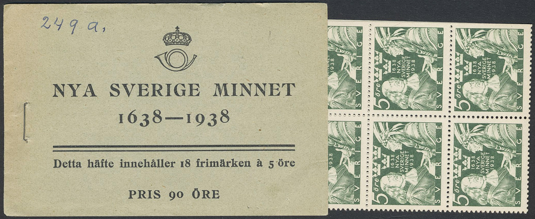 Sweden. Booklet Facit H34CB, 1938 New Sweden 18 × 5 öre green, perf on 4+3 sides. With note '249a' at front. SEK 2250