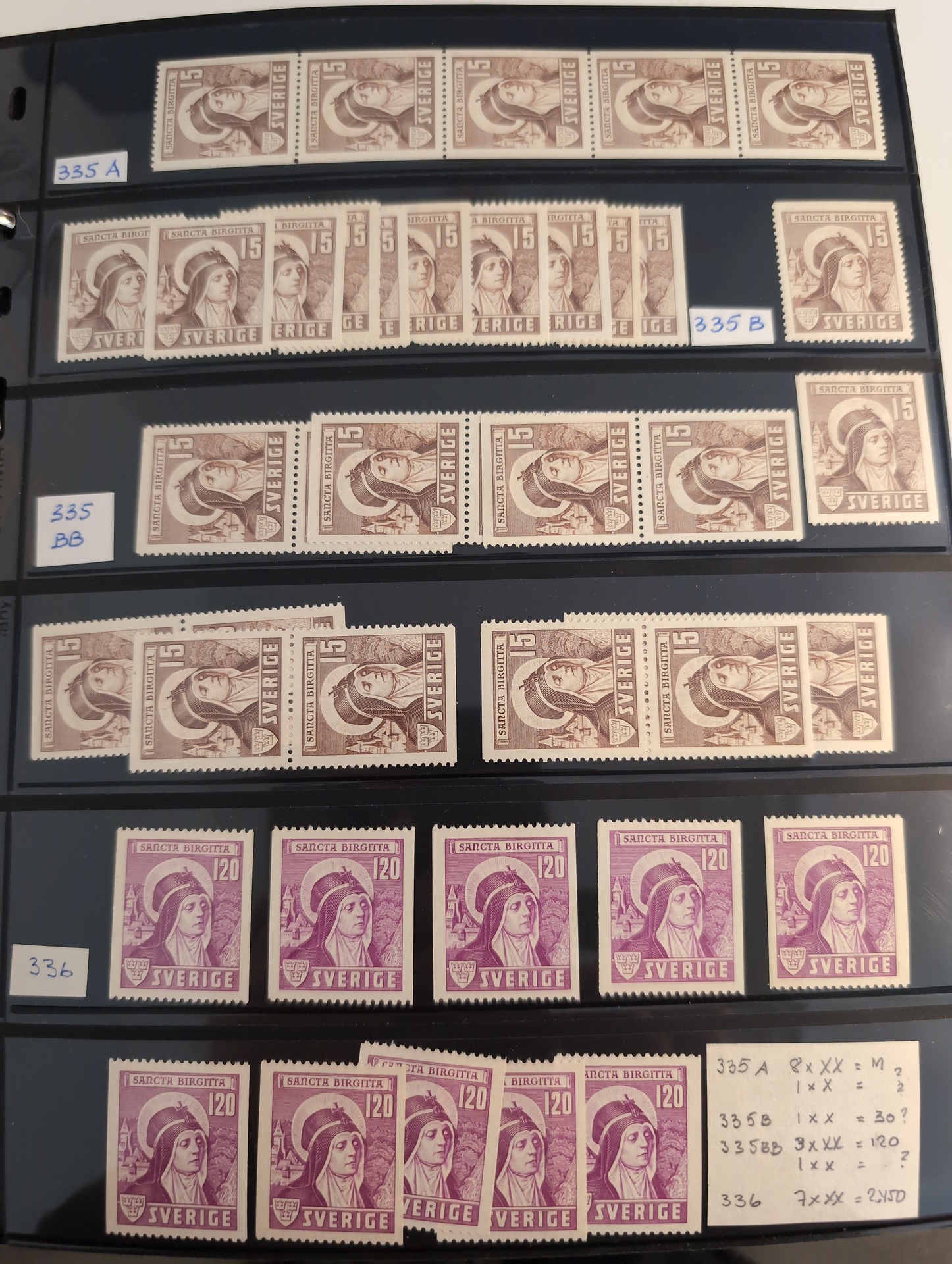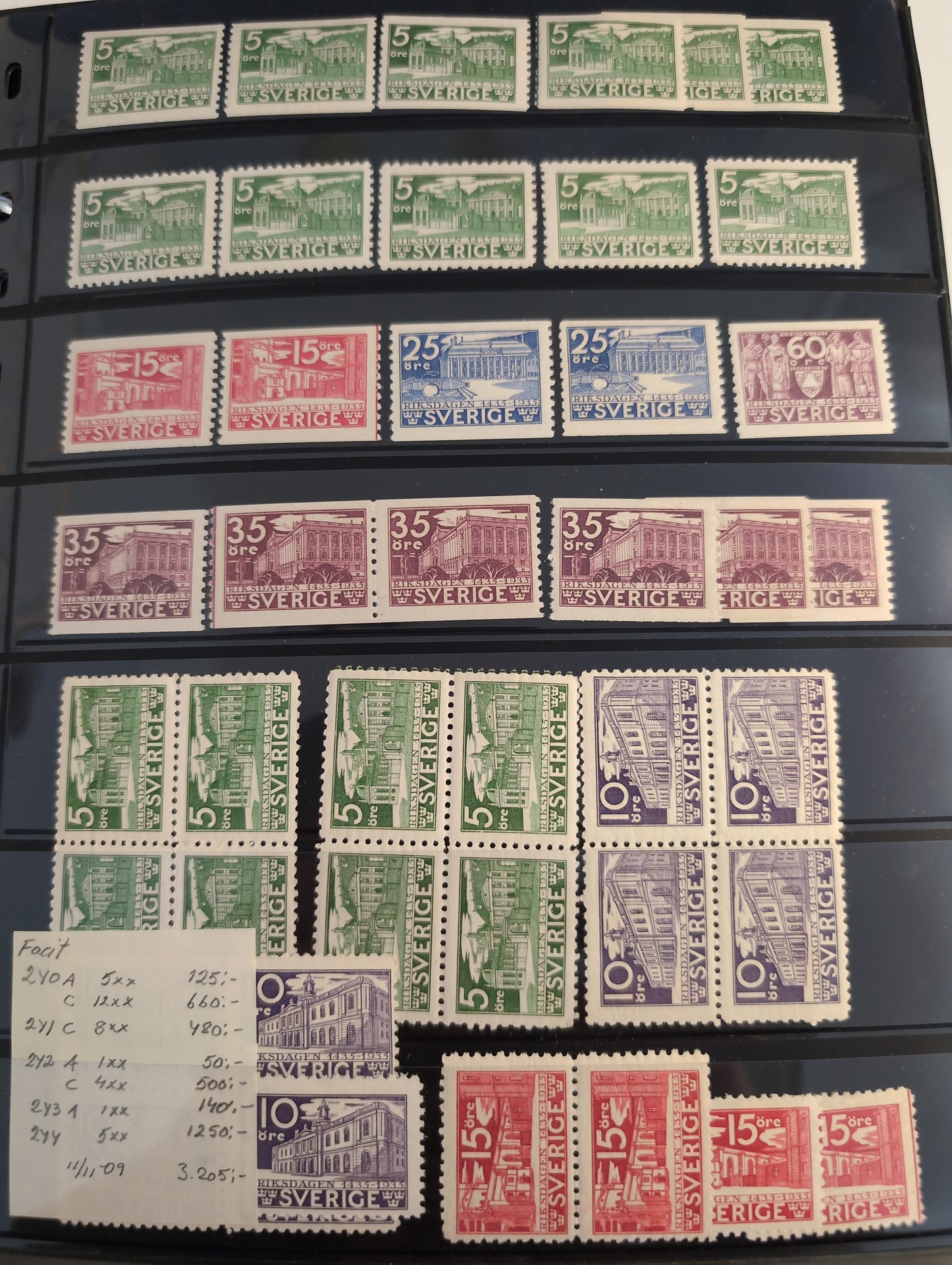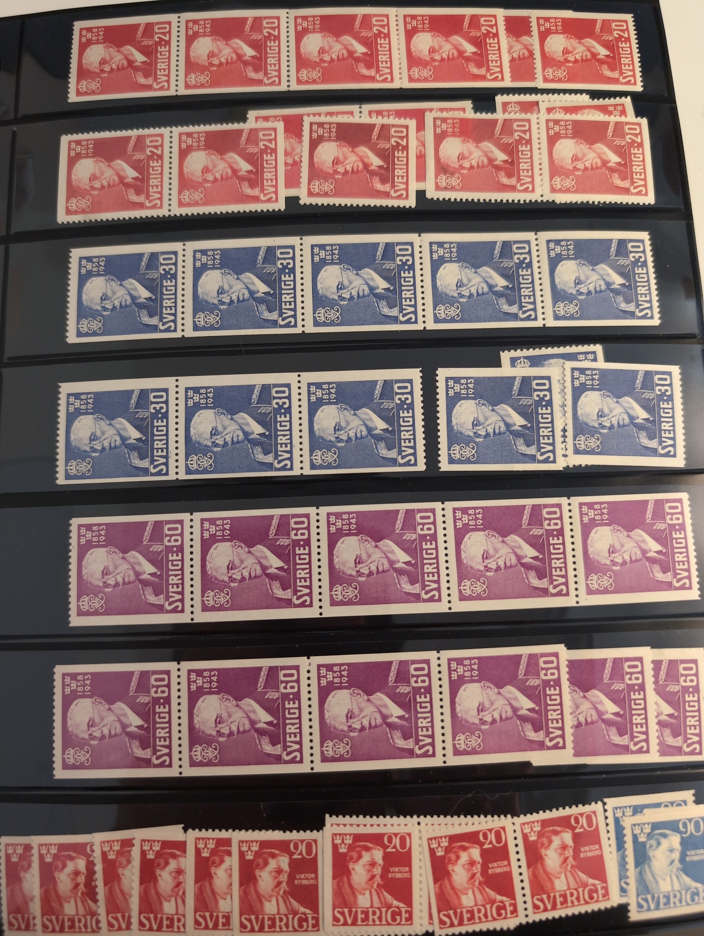 Sweden. Accumulation mostly ★★ 1888–1952 in thick album. Incl. some better stamp, from 1940s extensive stock with many strips of five. Please see a selection of scans at www.philea.se. Mostly fine quality. (1000s)