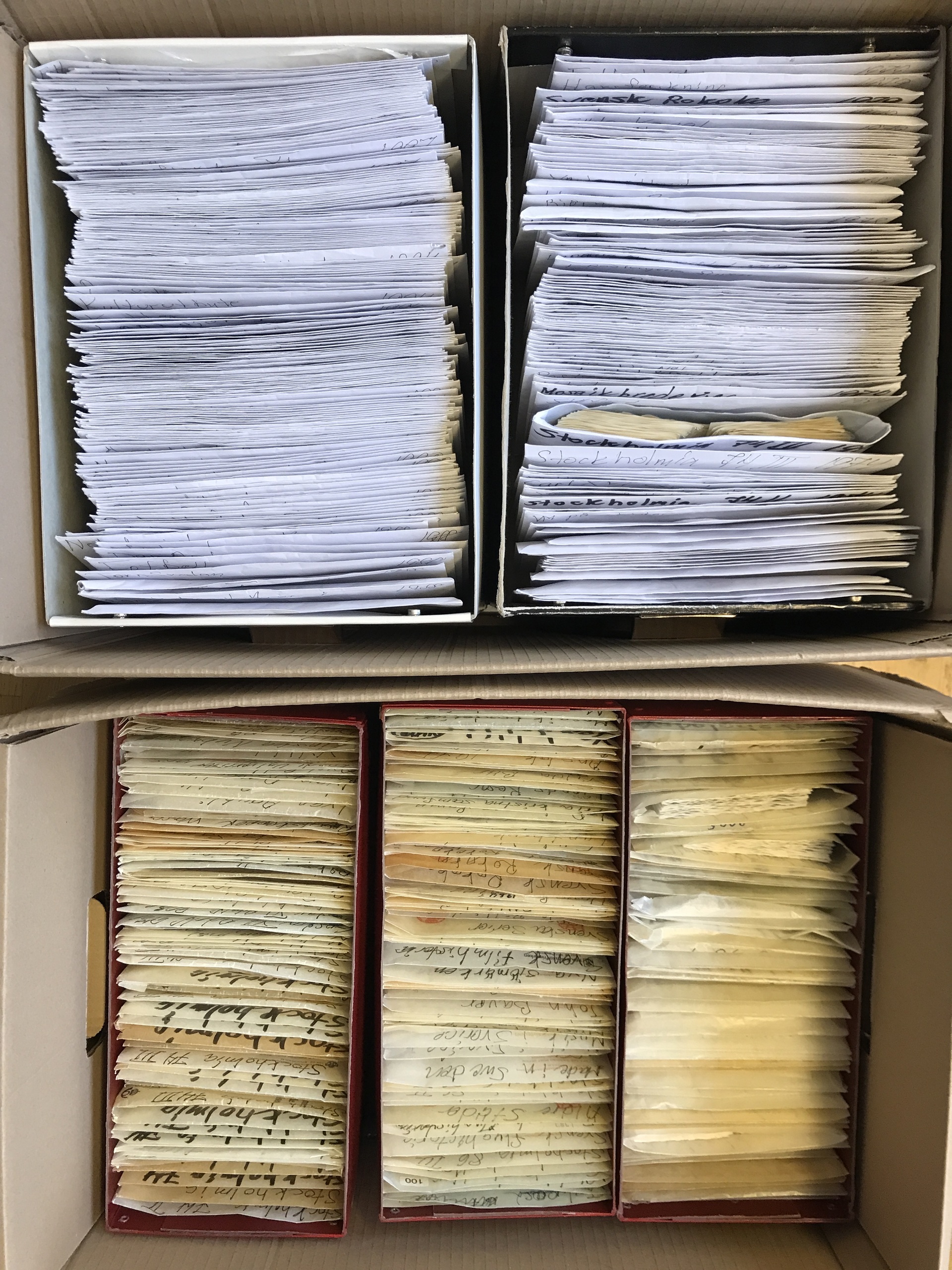Sweden. ★★. Enormous duplicate stock Oscar–2024 sorted in envelopes incl. 1000s of booklet blocks and blocks, etc. Modern section mainly with FDC-cancellations. Approx. 30 kg.