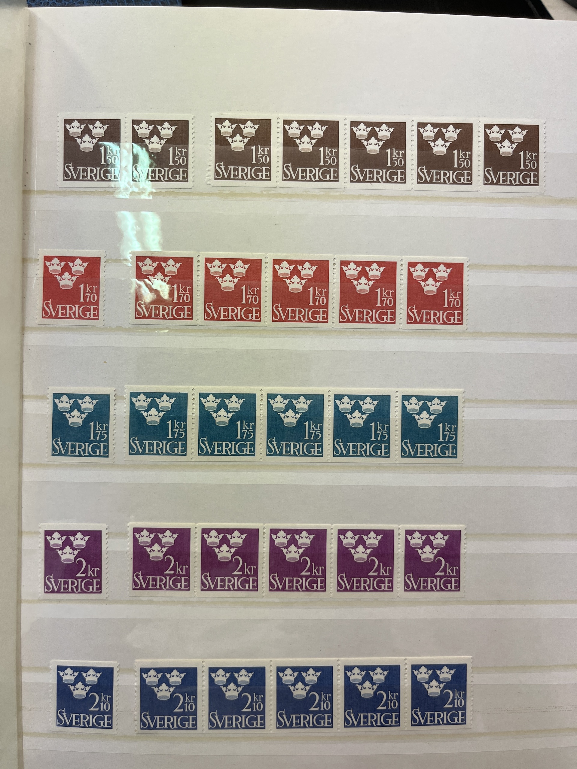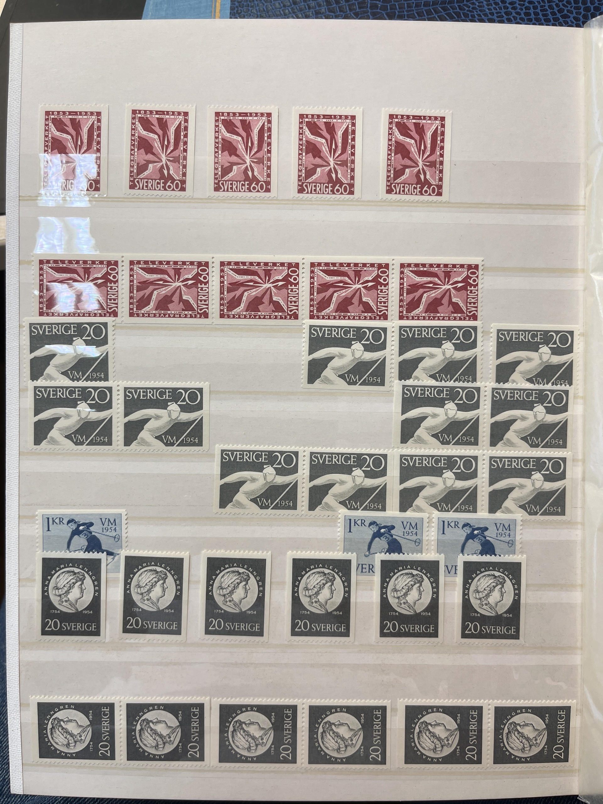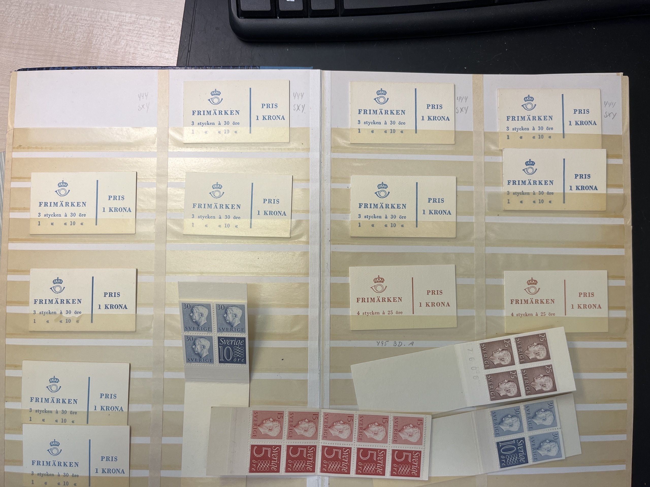 Sweden. Accumulation mostly ★★ 1889–1956 in two stockbooks. With blocks e.g. Landstormen I in blocks of 9–10, many strips of five and one album with slot-machine booklets e.g. HA5 (13), HA 6 (20).