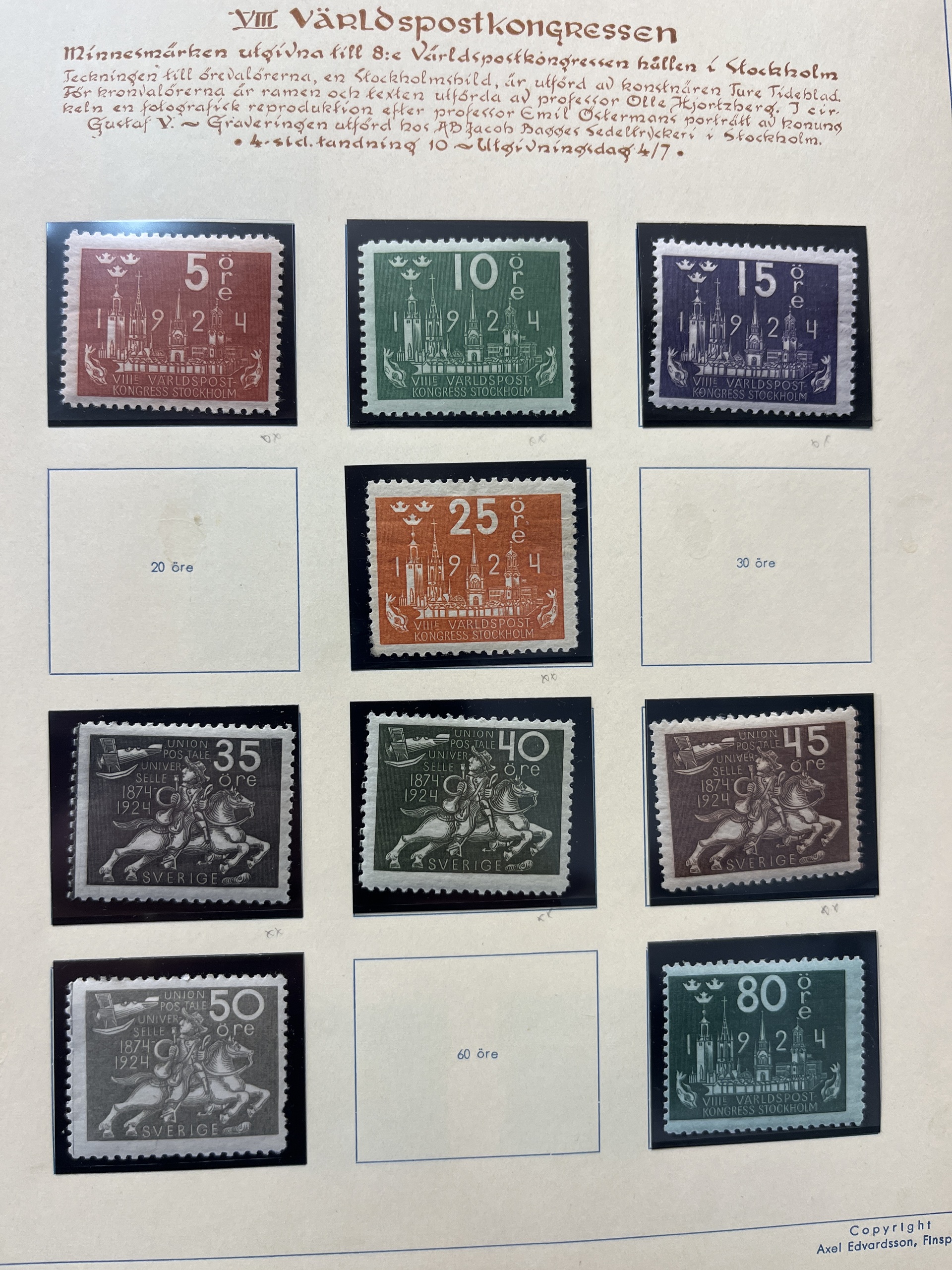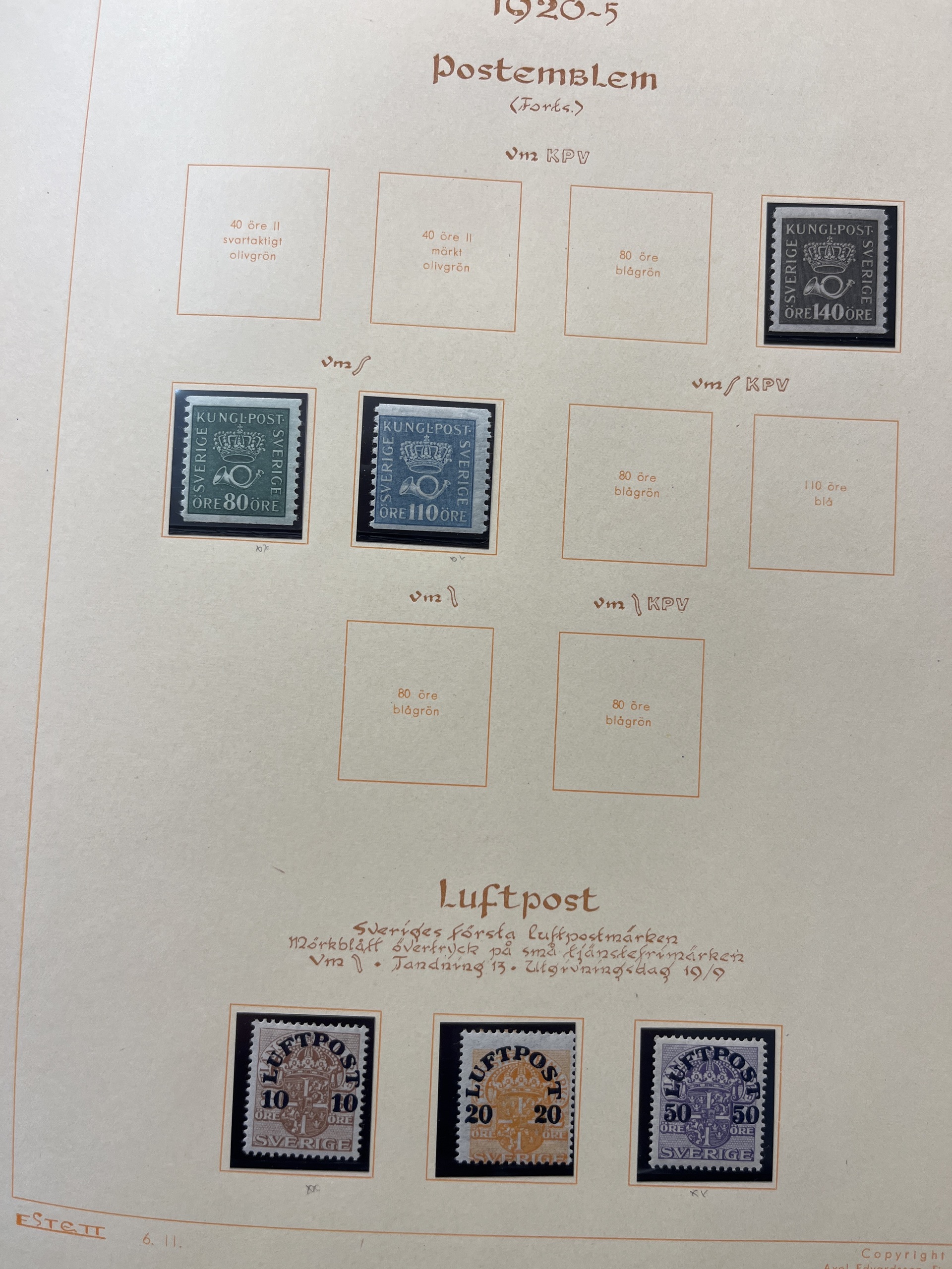 Sweden. Collection ★★/★ 1878–1956 in Estett album with few stamps at the beginning. Please see a selection of scans at www.philea.se. Fine quality.
