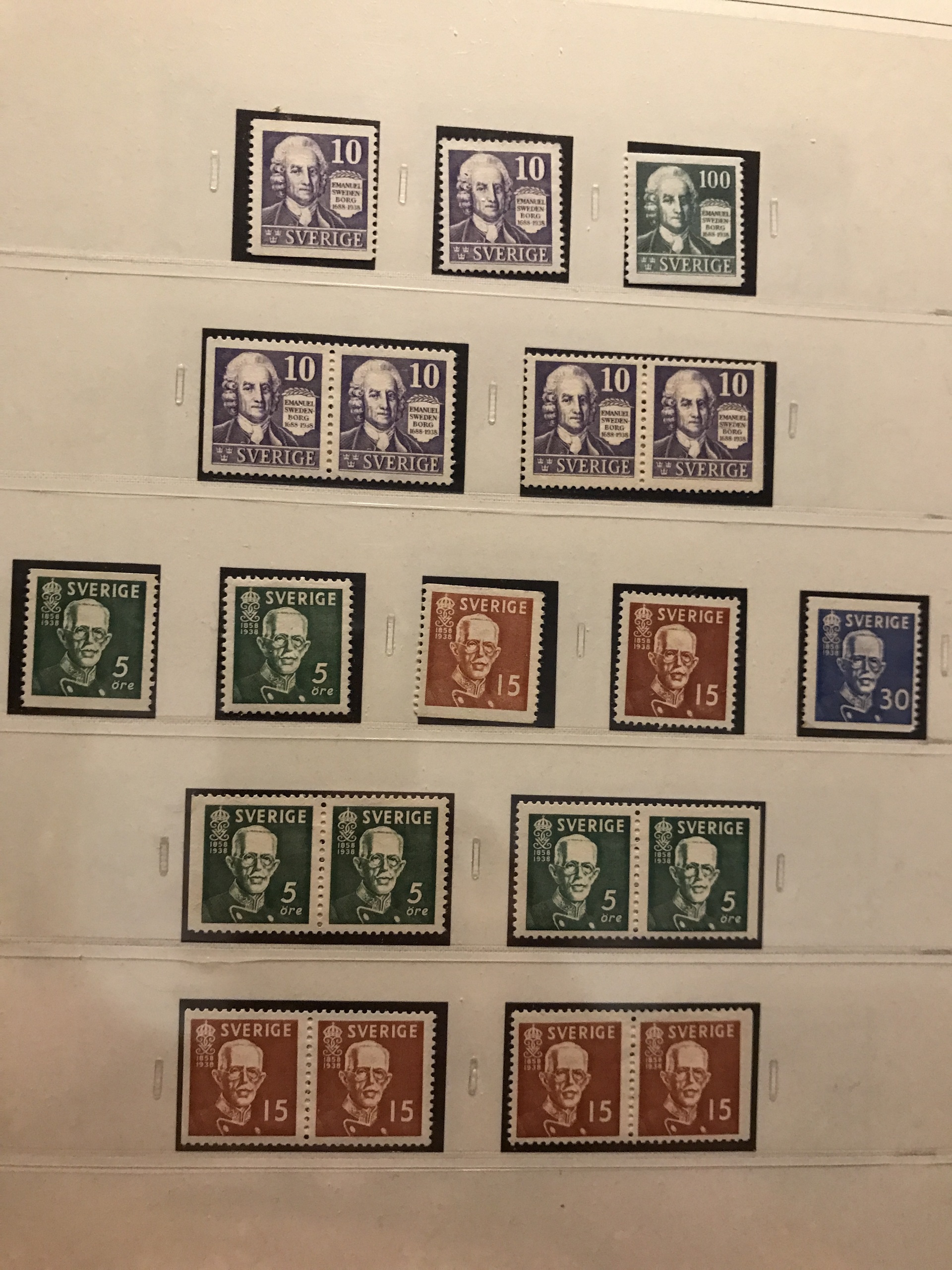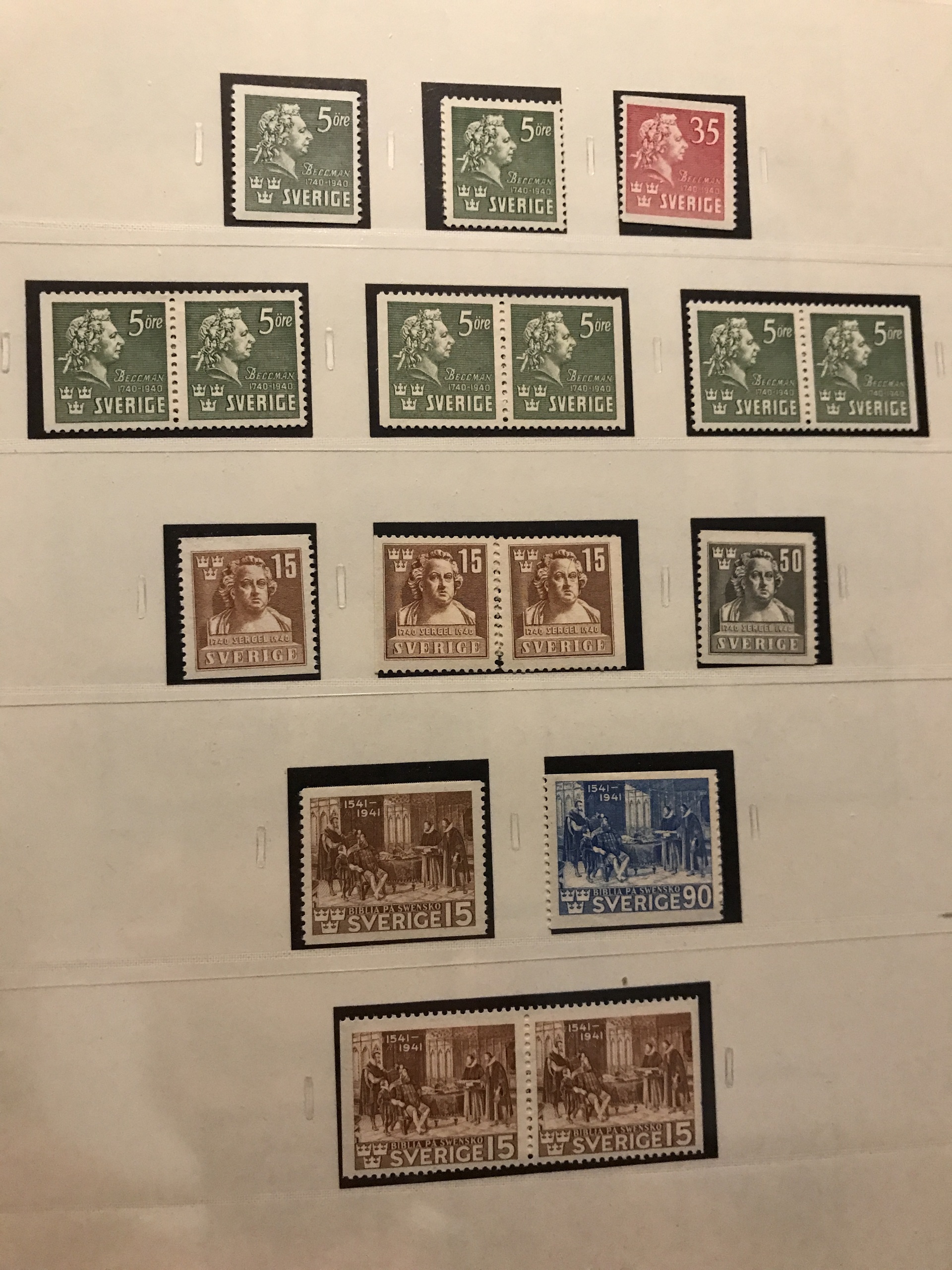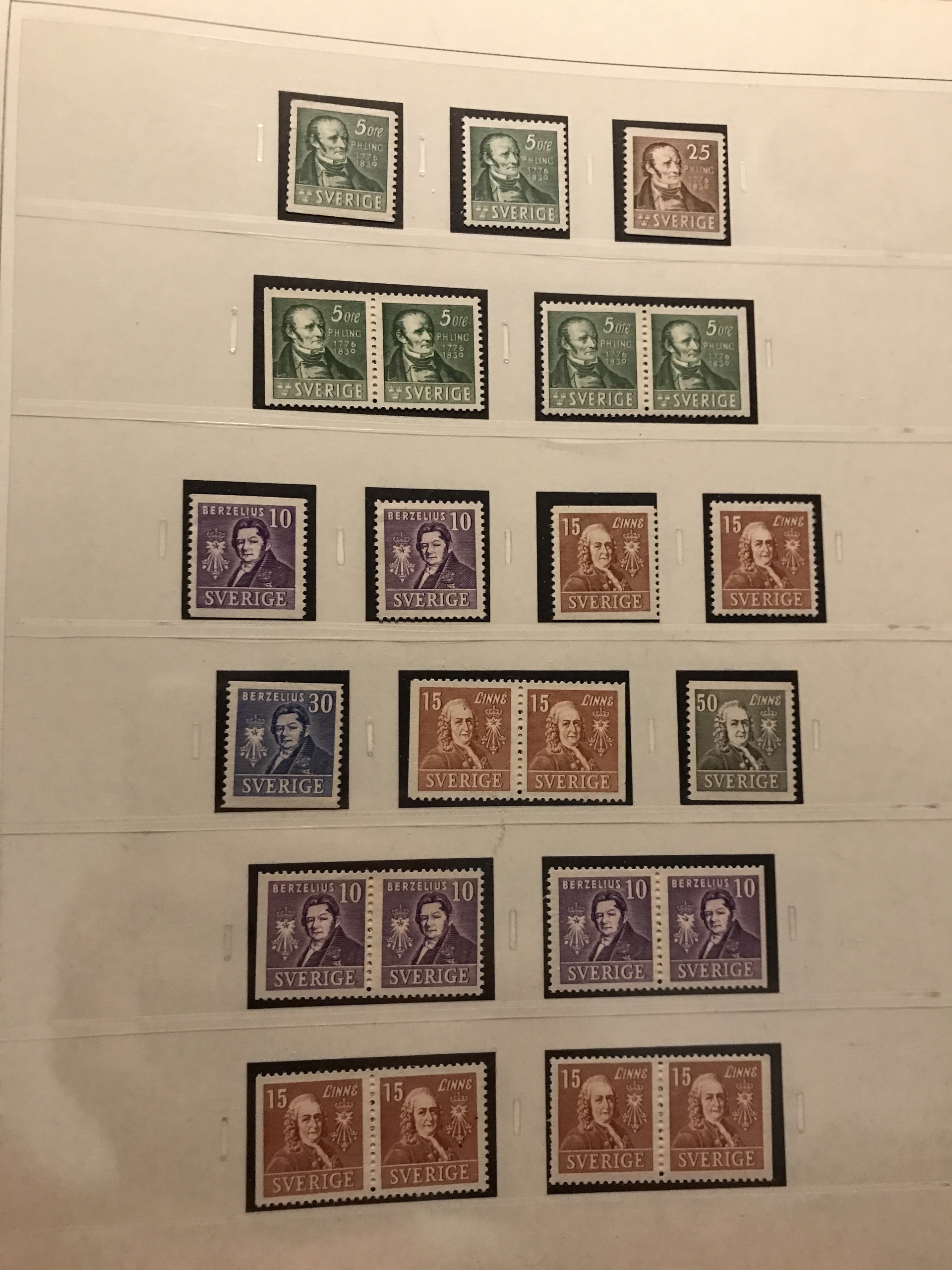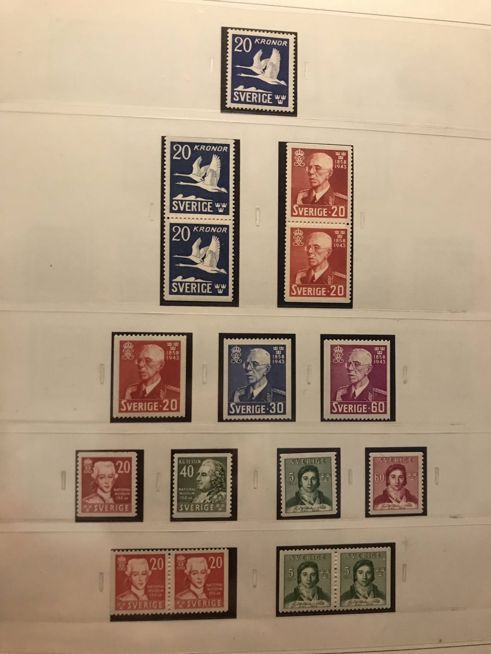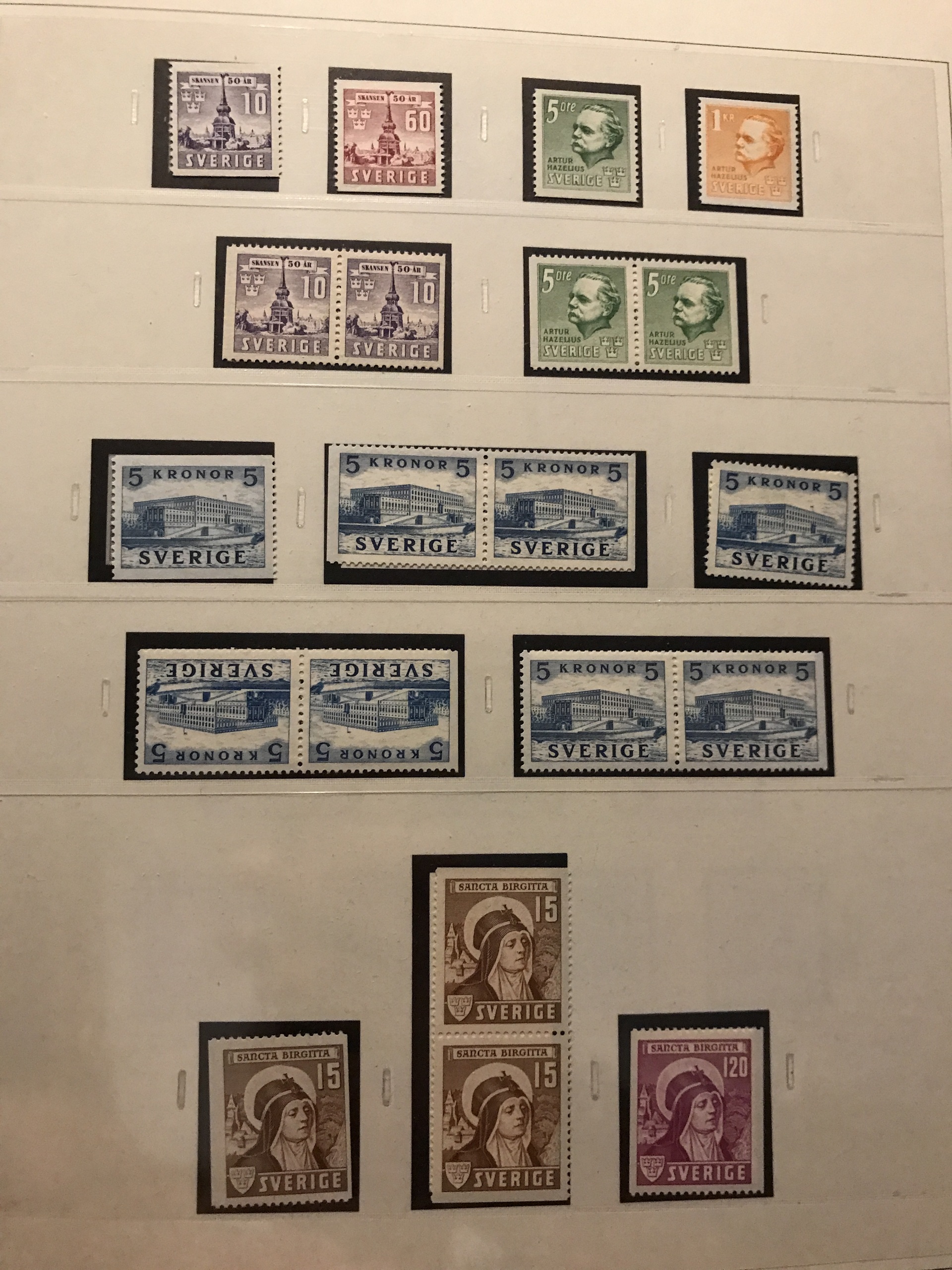 Sweden. ★★/★. Collection 1938–1959 in SAFE dual album. Containing 24 */** BC/CB-pairs mostly with good margins. Apparently cpl. ** from 1942 incl. 337C, etc. Please see a selection of scans at www.philea.se.