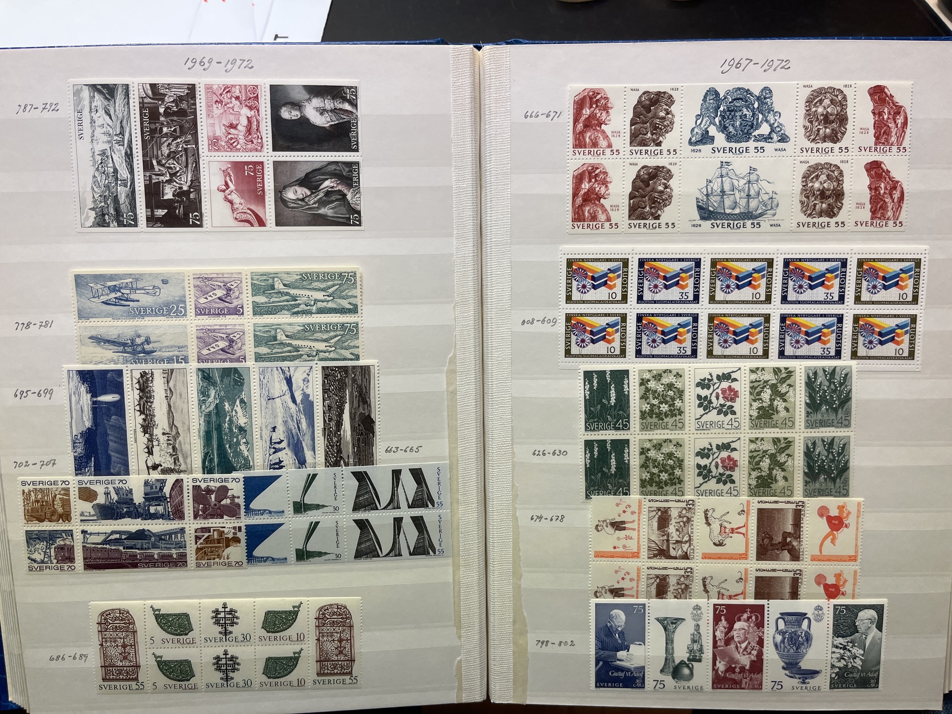 Sweden. Accumulation ★★ in box with twelve albums. Incl. e.g. 40 sets of Stockholmia 55. Approx. 15 kg.