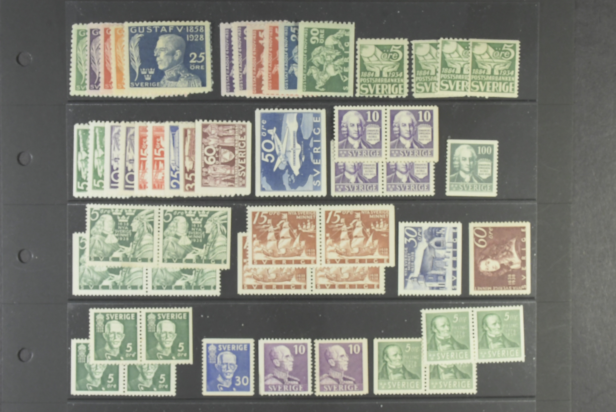 Sweden. ★★ 1928–1940. All different, e.g. F 226–30, 234–39, 240–45, 259BC/CB, 261–62BC/CB, 266BC/CB, 268, 269B+B, 318BC/CB. Mostly good quality. F SEK 7995 (40)