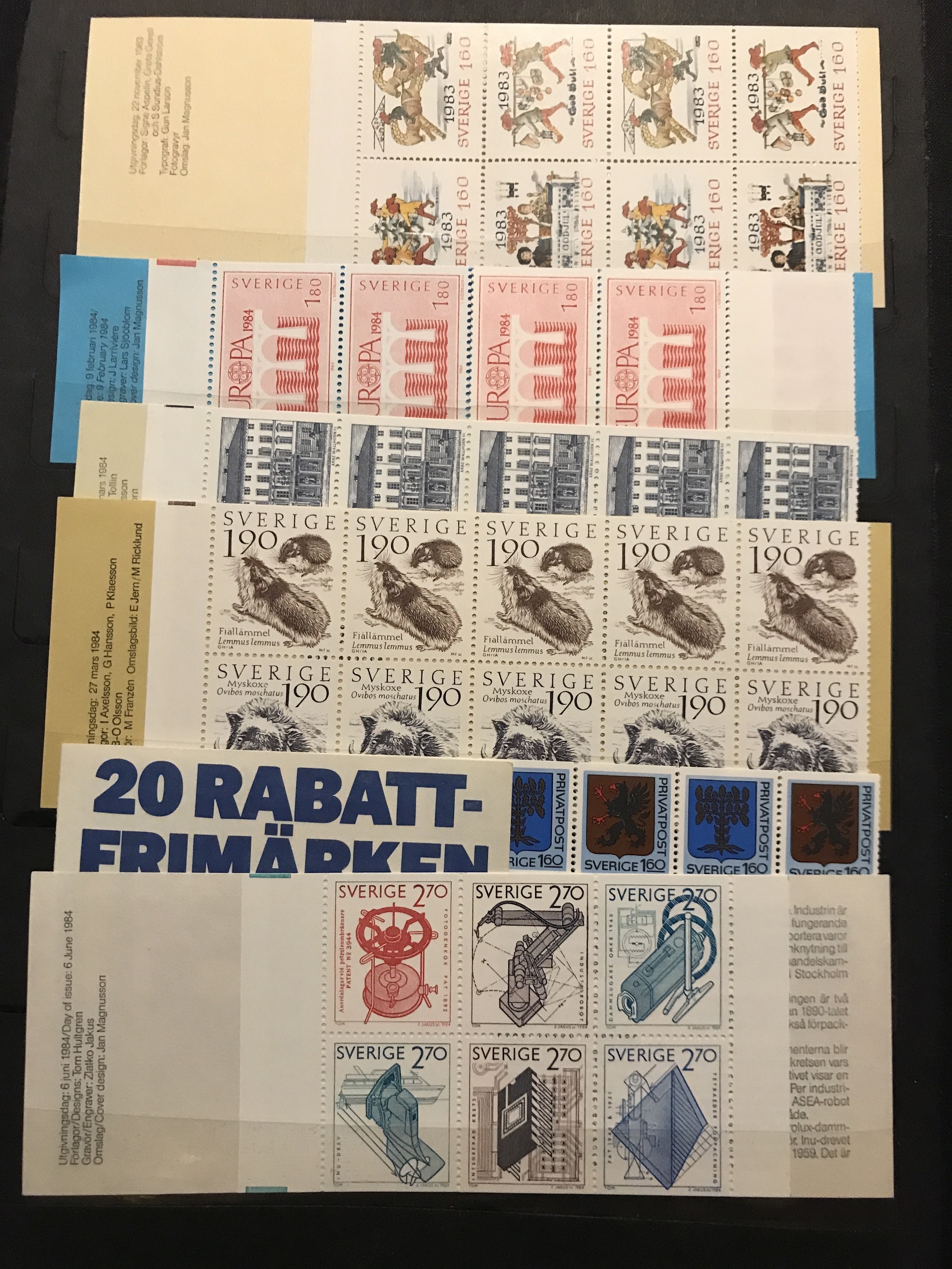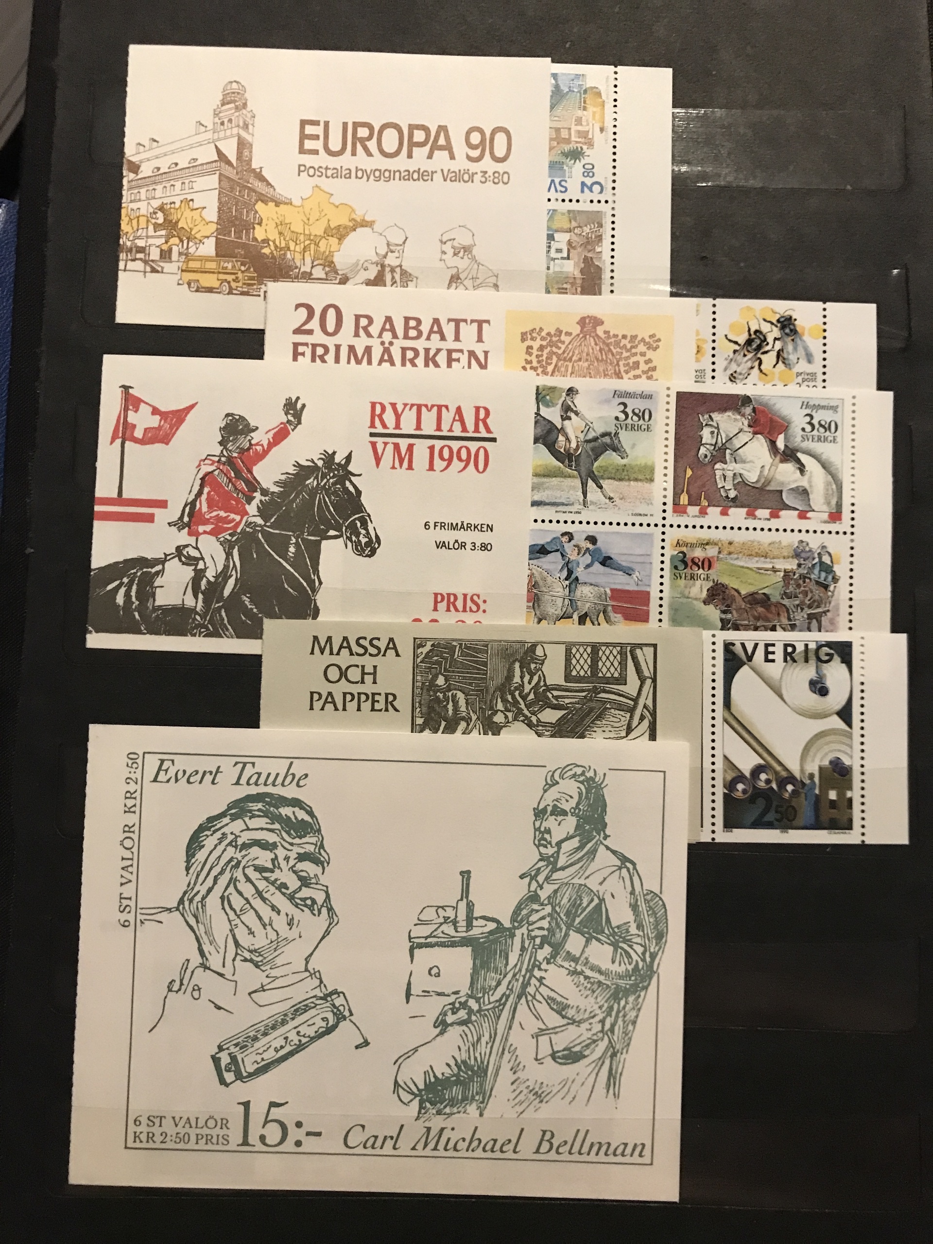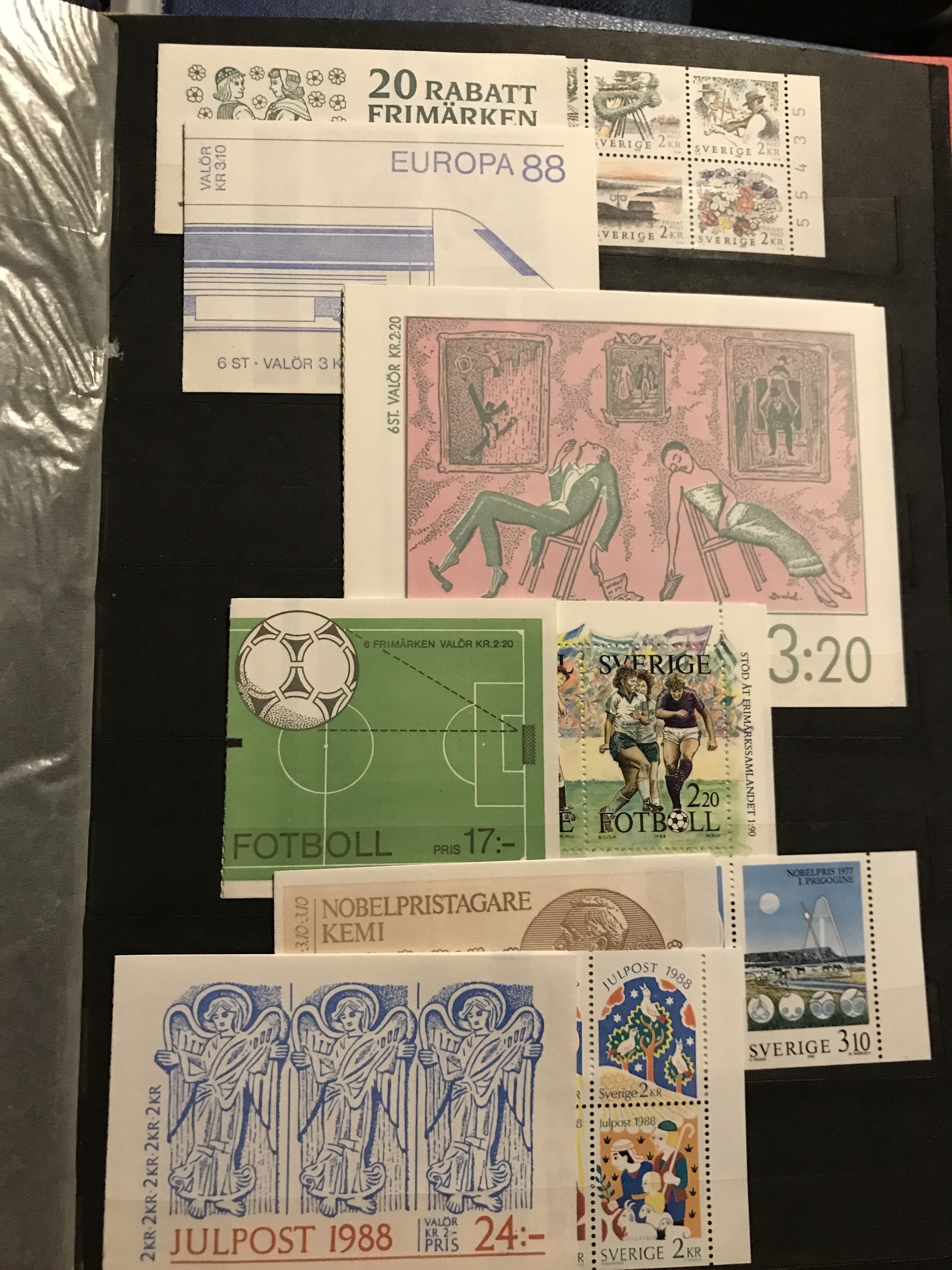 Sweden. Face value. Booklet collection 1942–1991 + some blocks, etc. in two binders. Face value approx. 2300 + eleven discount booklets 1980–1990. Please see a selection of scans at www.philea.se.