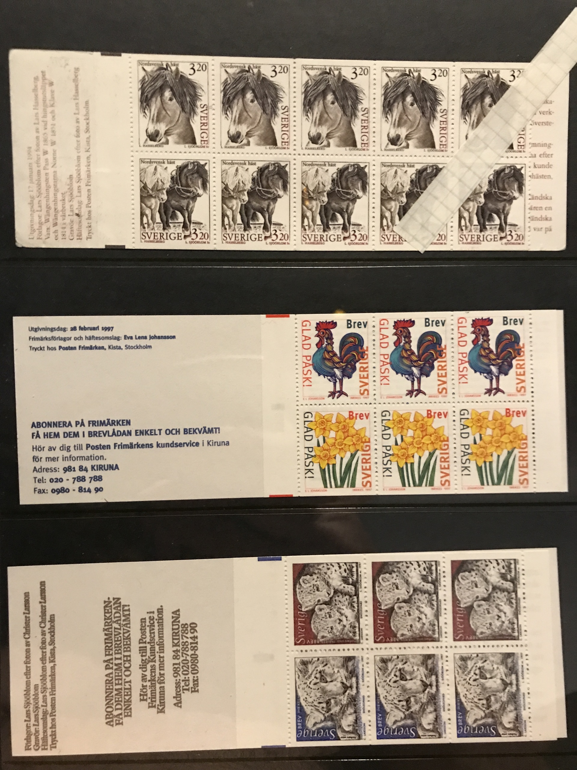 Sweden. Face value. Binder with booklets mostly 1982–1990s + some stamps. Face value approx. 2600 + 12 discount booklets + 12 stamps 'Sverige BREV'.