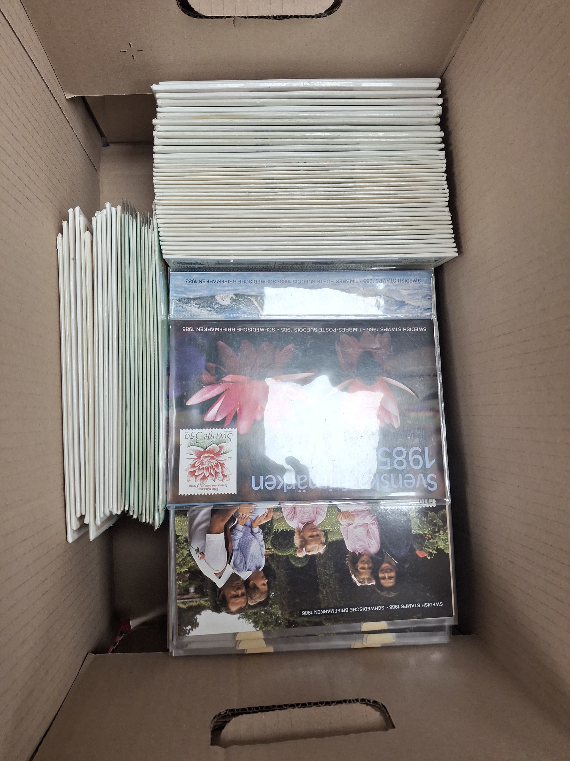 Sweden. Year sets, lot 1970–1988 in removal box. Cat. value 72000 SEK. Face value 13200. Excellent quality. Approx. 12 kg.