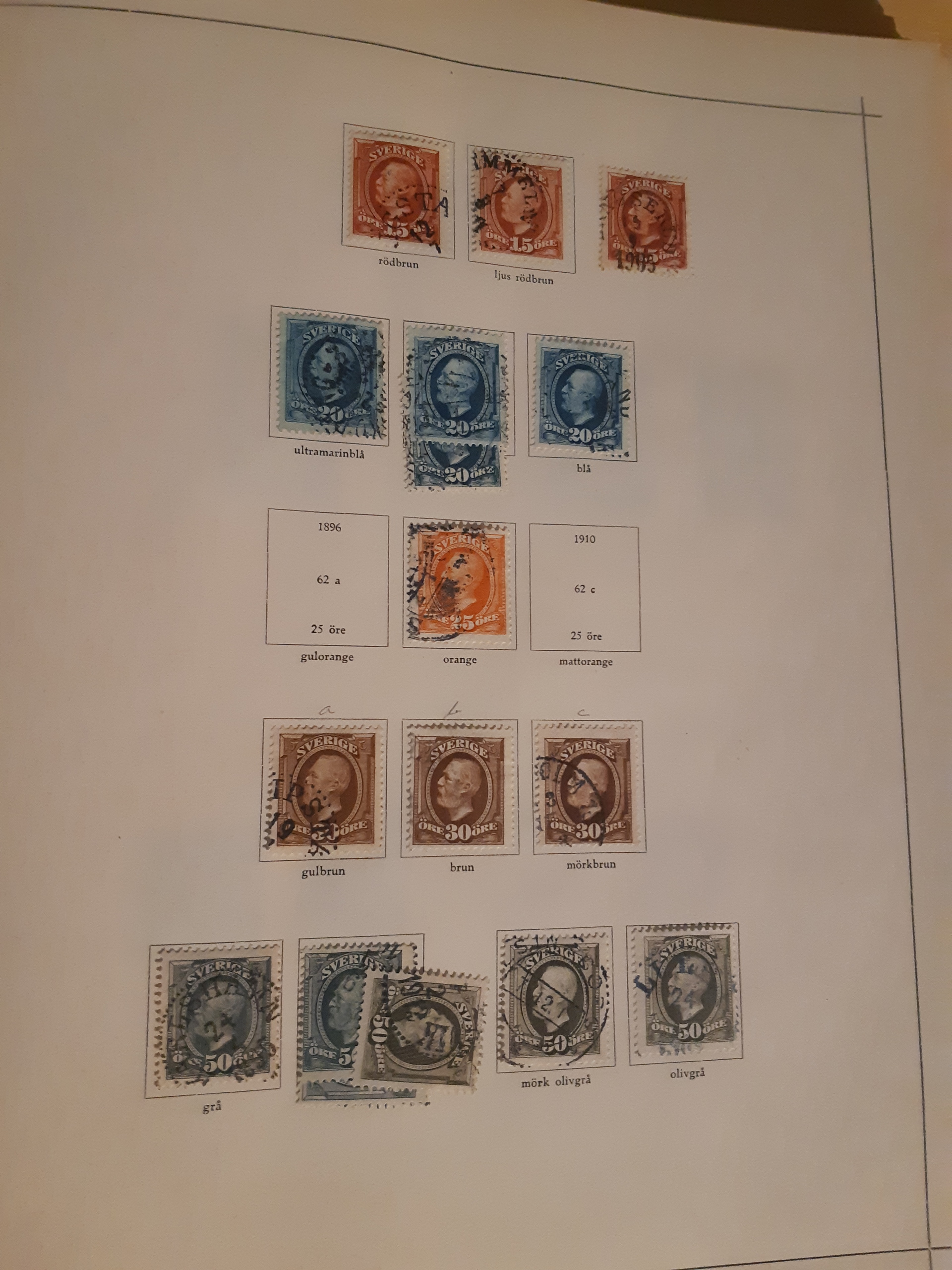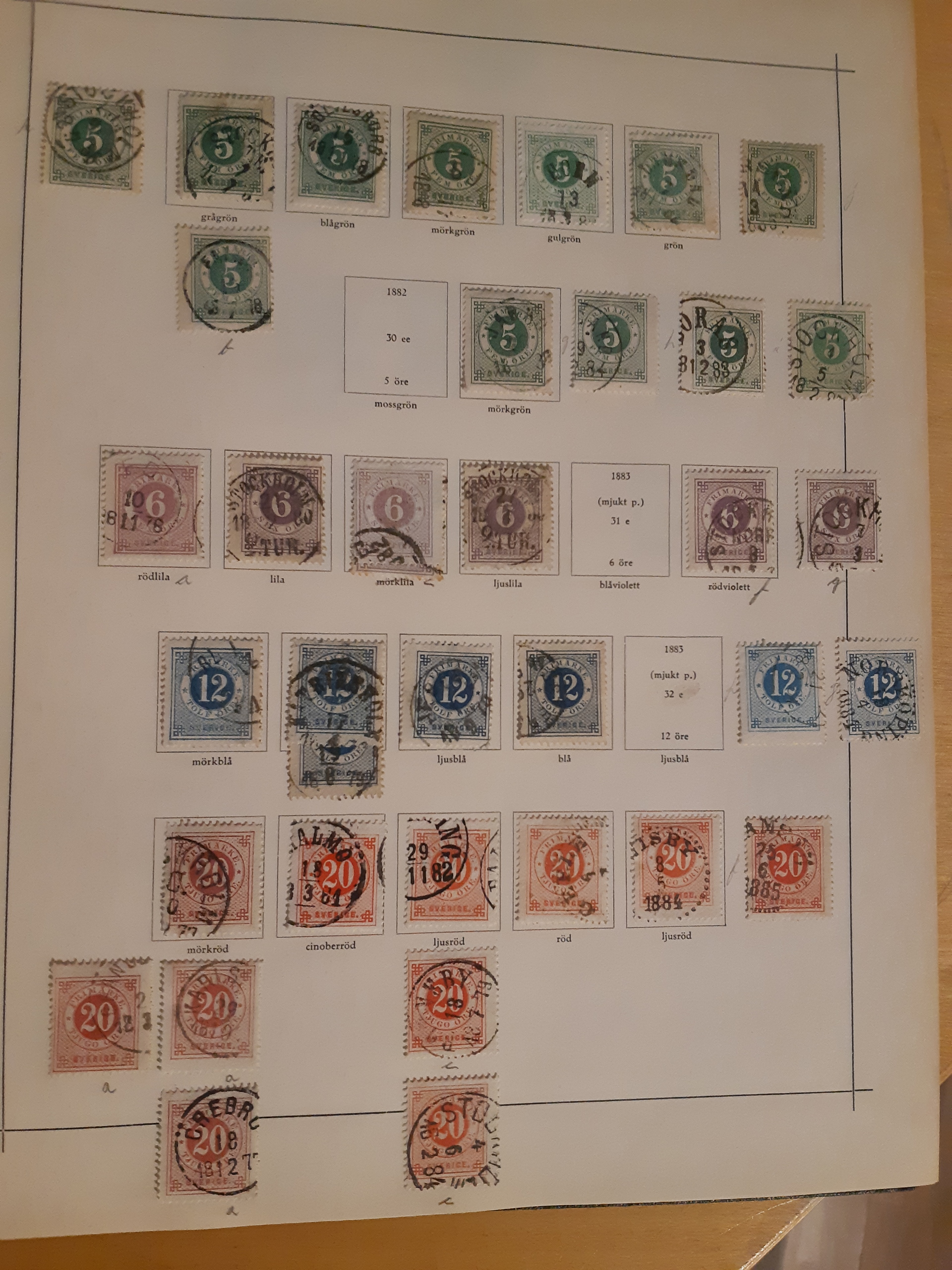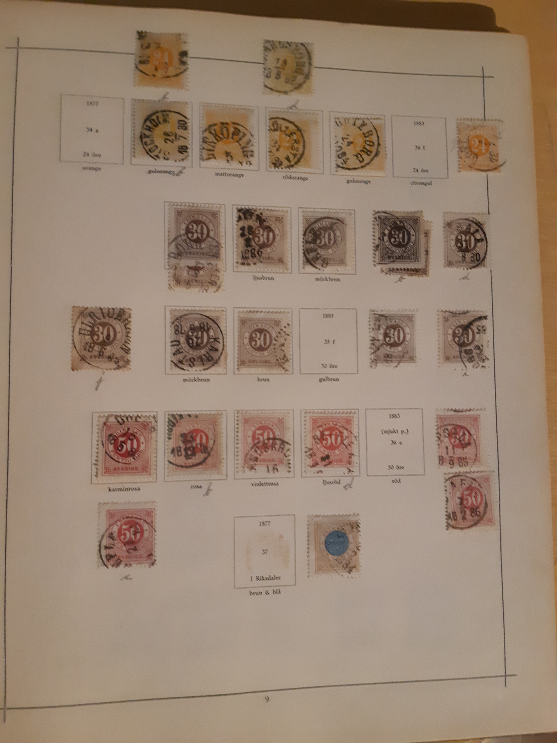 Sweden. Collection used 1855–1922 in Harry Wennberg album. Partly collected in different shades (all not correctly identified), plus some wm varieties and cancellations. Incl. officials and posatge dues. Please see a selection of scans at www.philea.se. Somewhat mixed quality. (500)