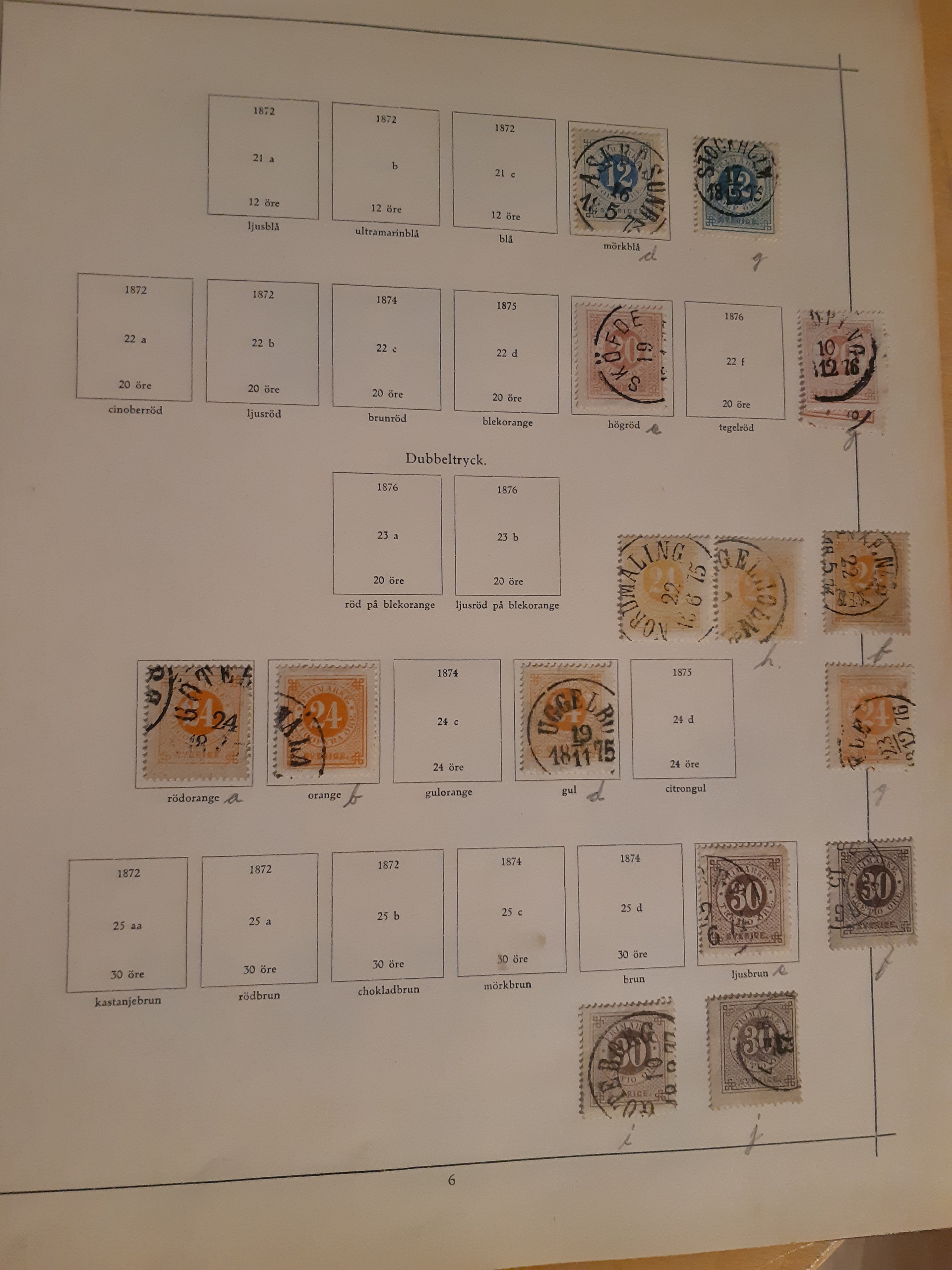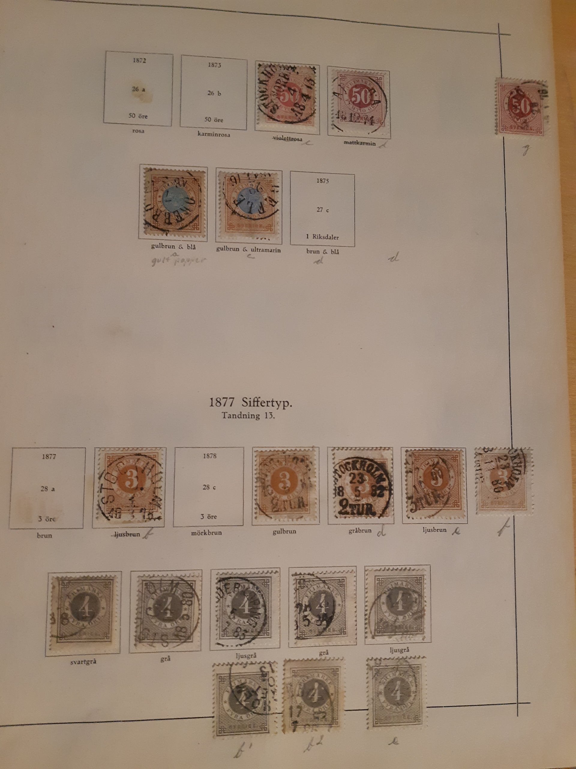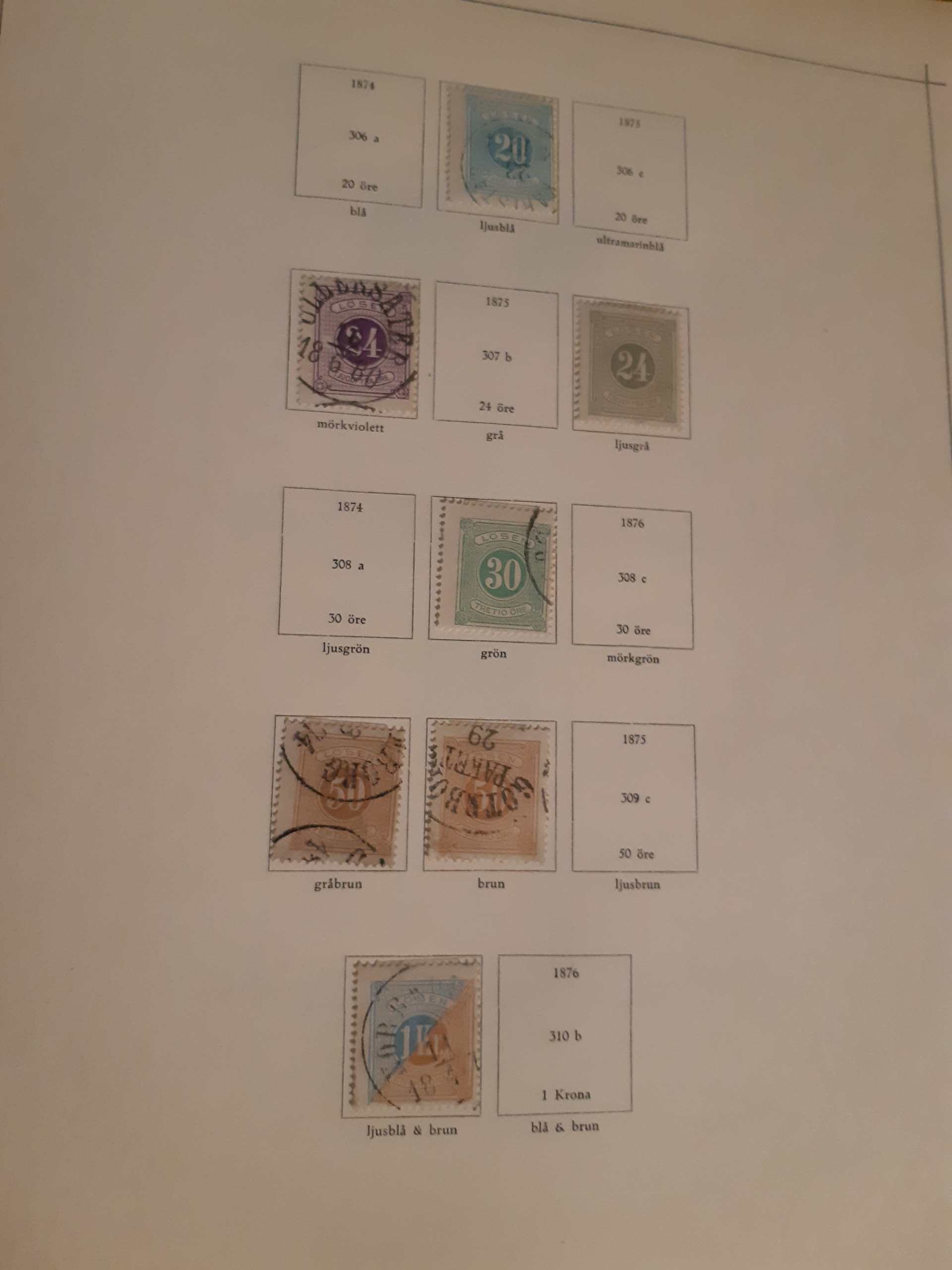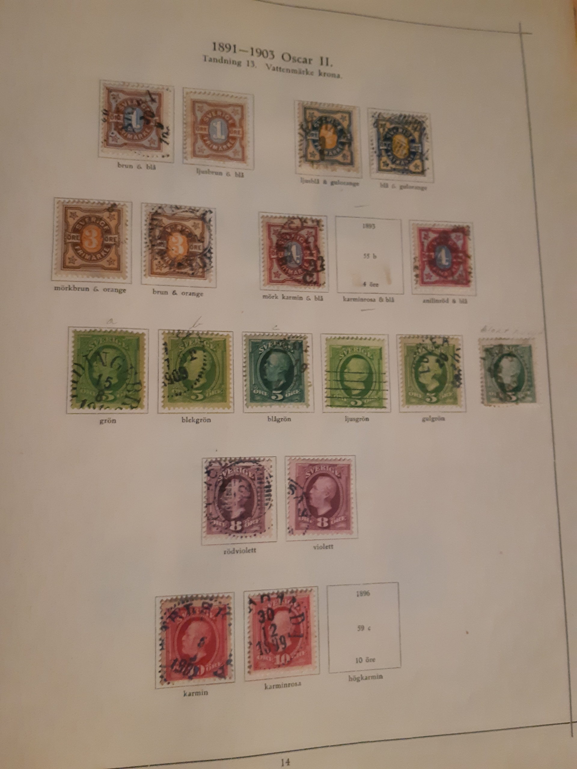 Sweden. Collection used 1855–1922 in Harry Wennberg album. Partly collected in different shades (all not correctly identified), plus some wm varieties and cancellations. Incl. officials and posatge dues. Please see a selection of scans at www.philea.se. Somewhat mixed quality. (500)
