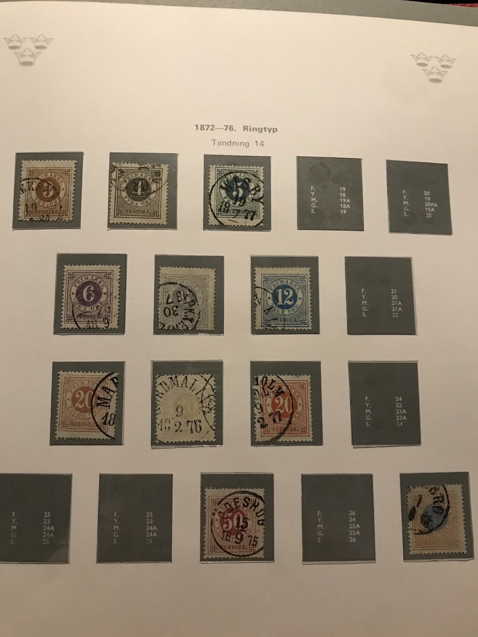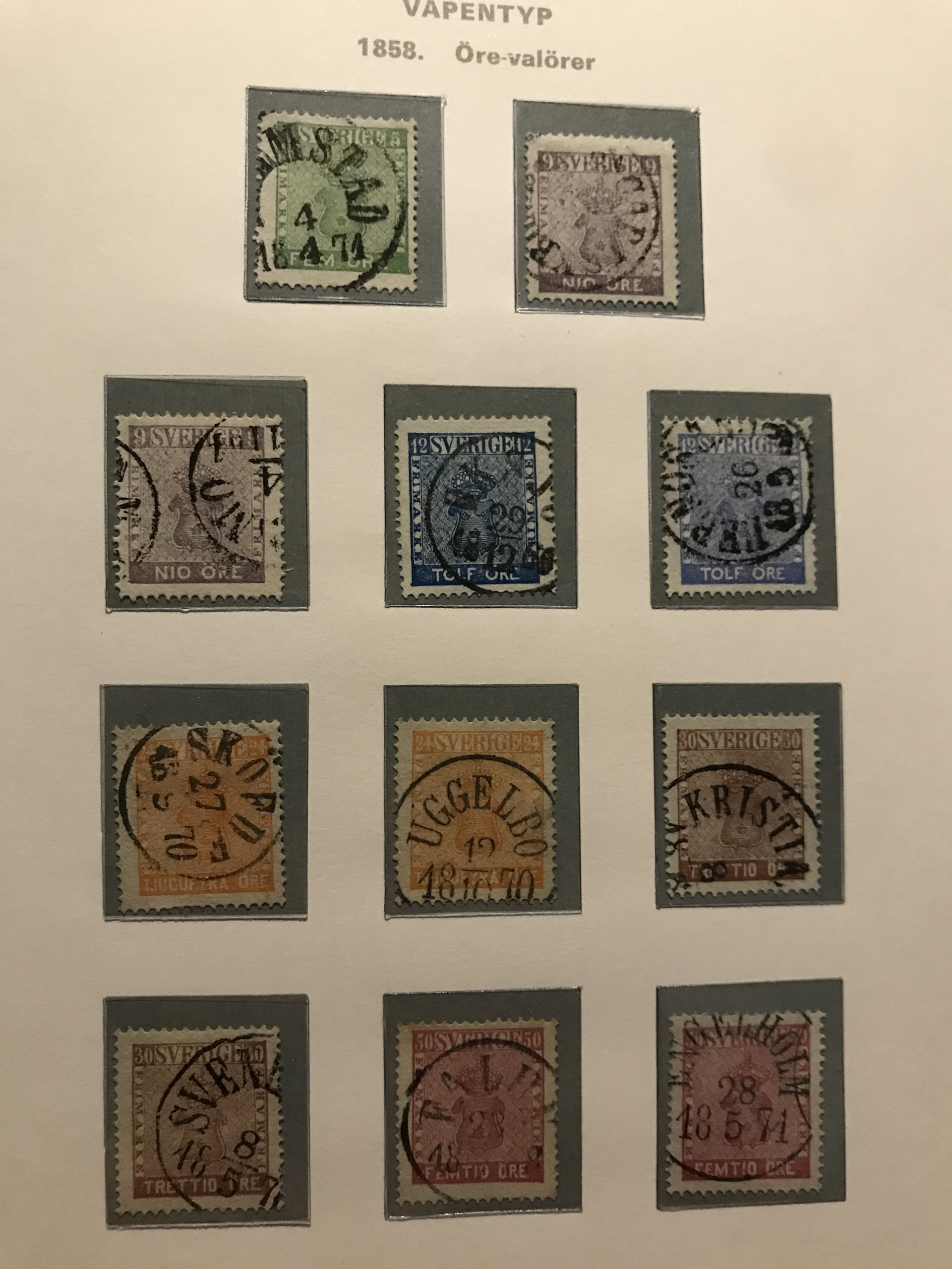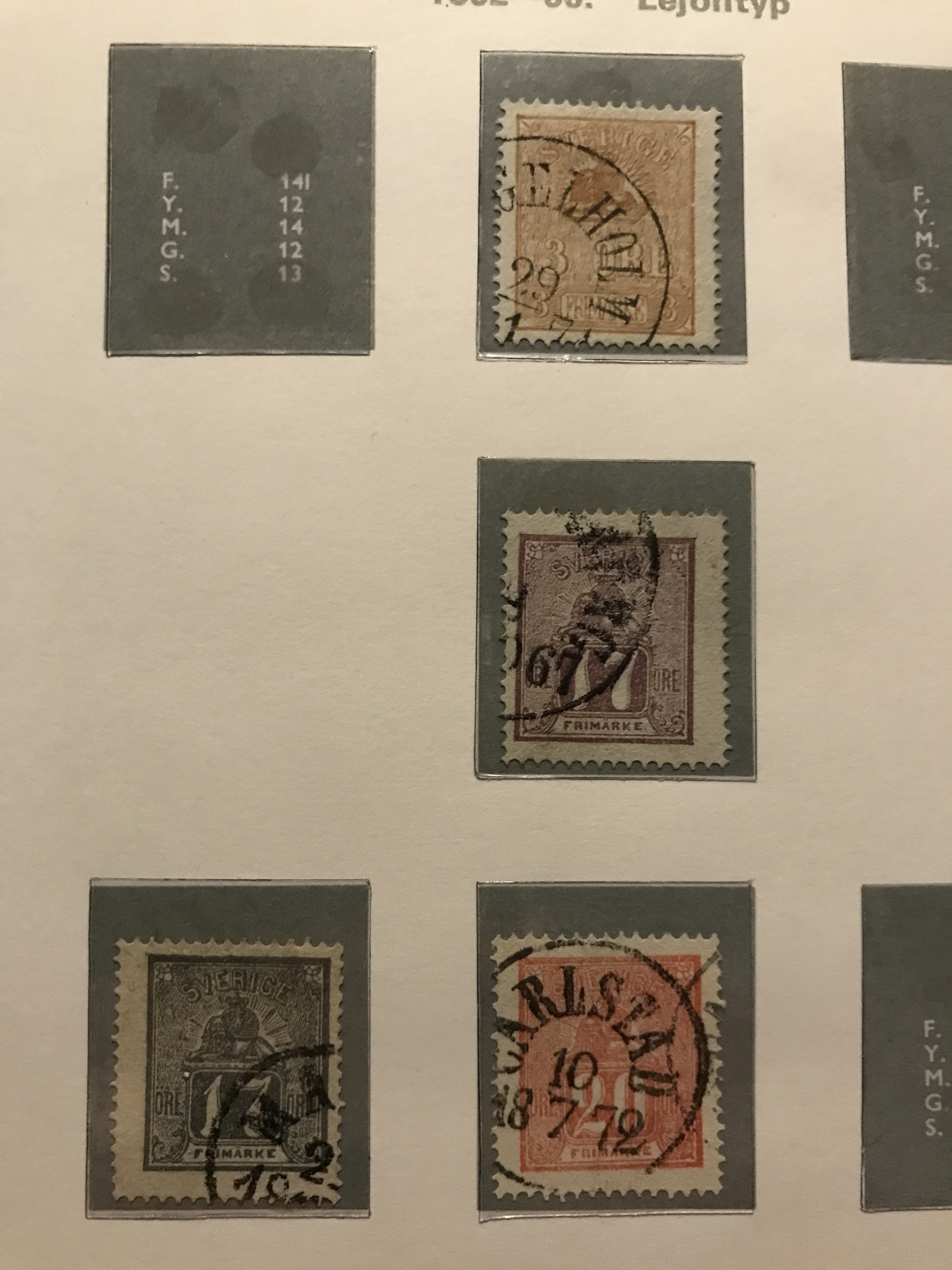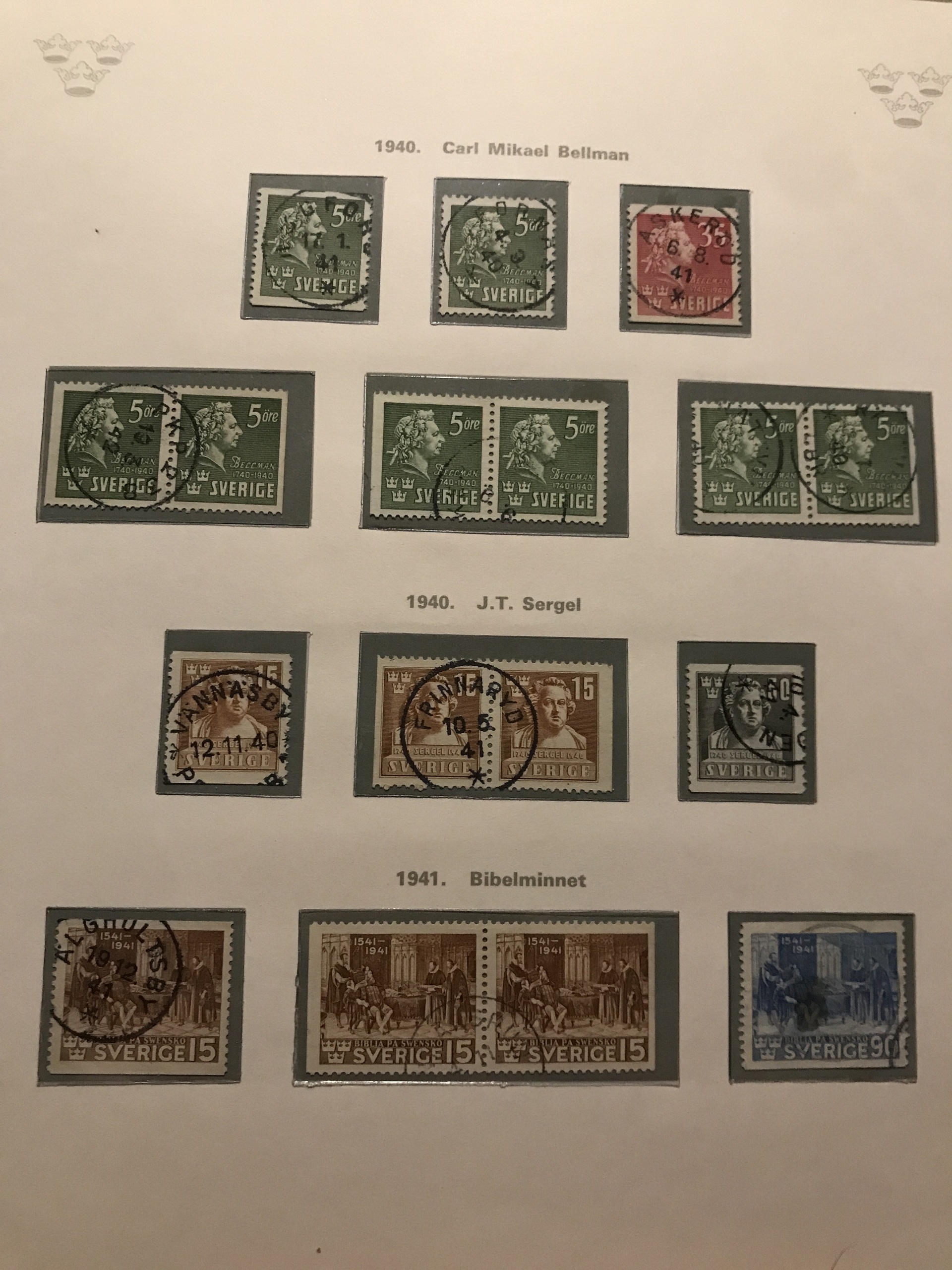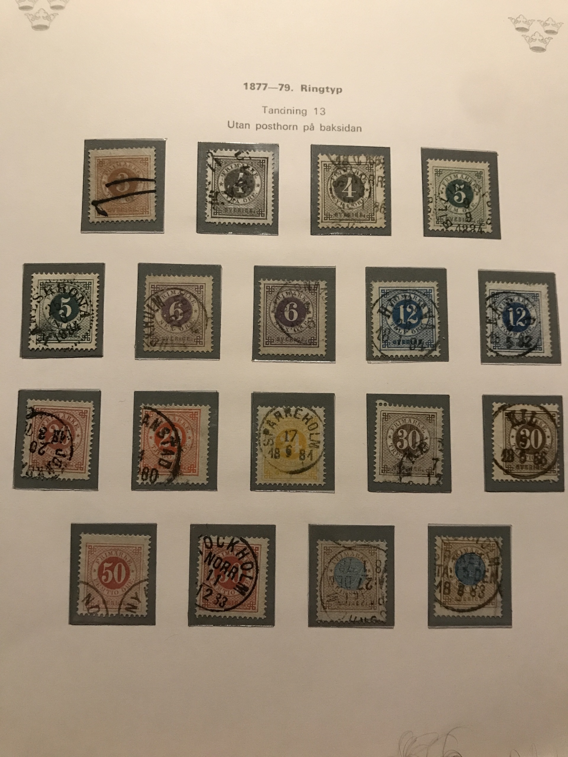 Sweden. Used. Collection 1855–1977 in three verbis albums incl. two 4-skill, 6-skill (some short perf.), black local stamp, over complete Coat-of Arms, two 17 öre incl. one grey, F37 (short perf), cpl. Landstorm, Congress 5 öre–1 kr, UPU 5 öre–2 kr, many BC/CB-pairs (some small marg), nice cancellations, etc. Please see a selection of scans at www.philea.se. Mostly fine quality.