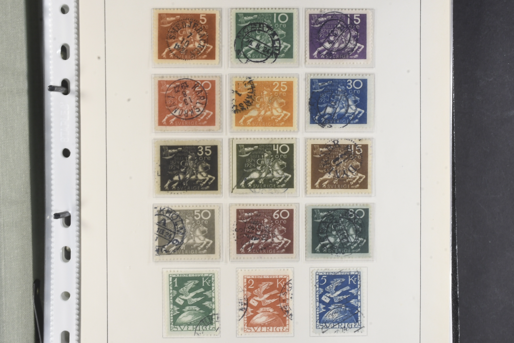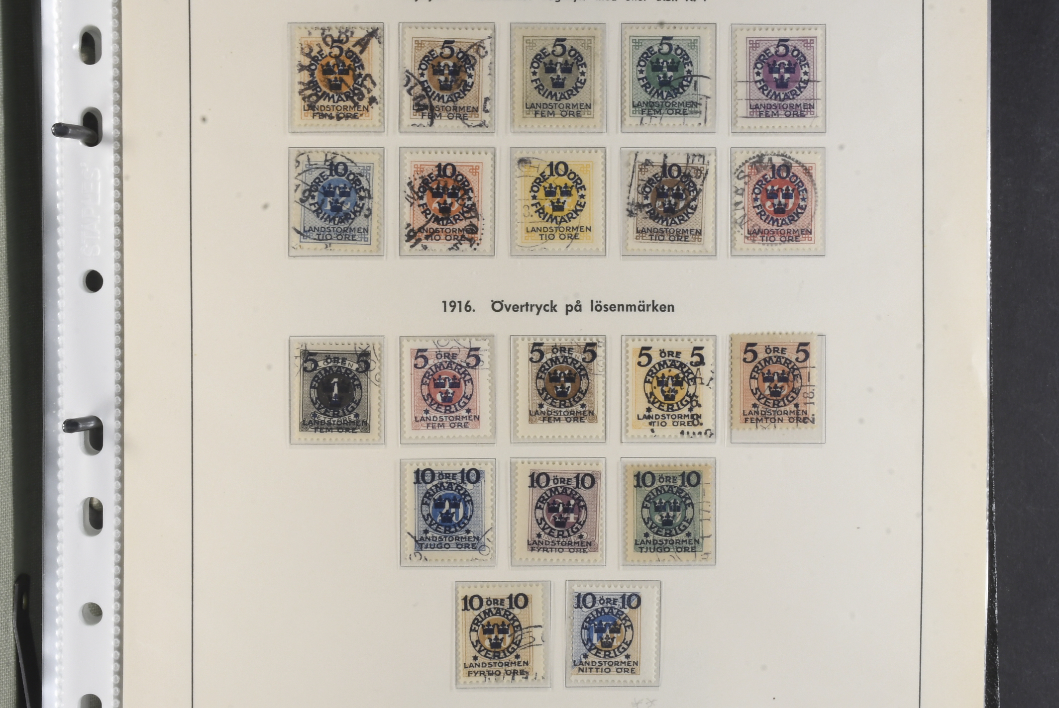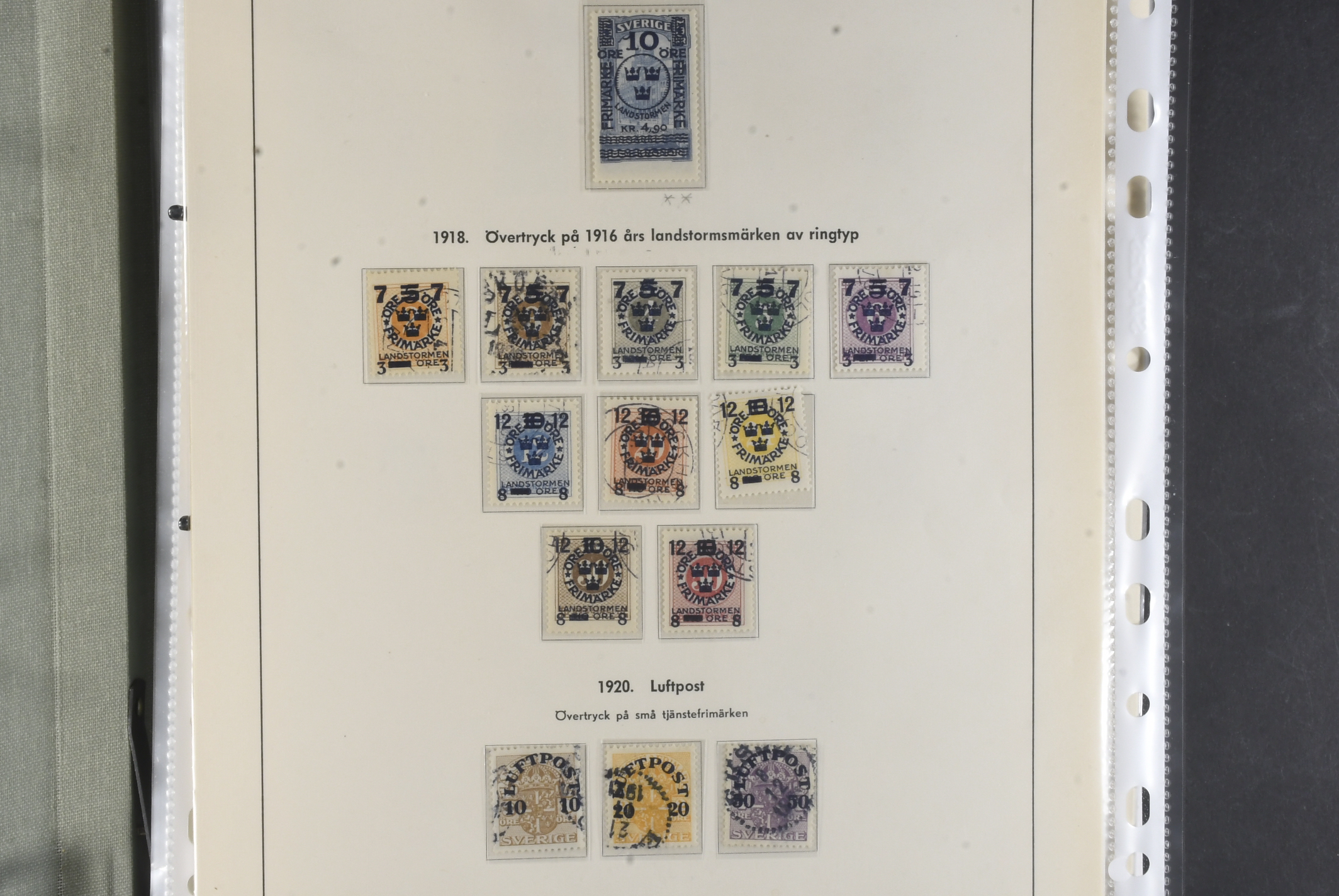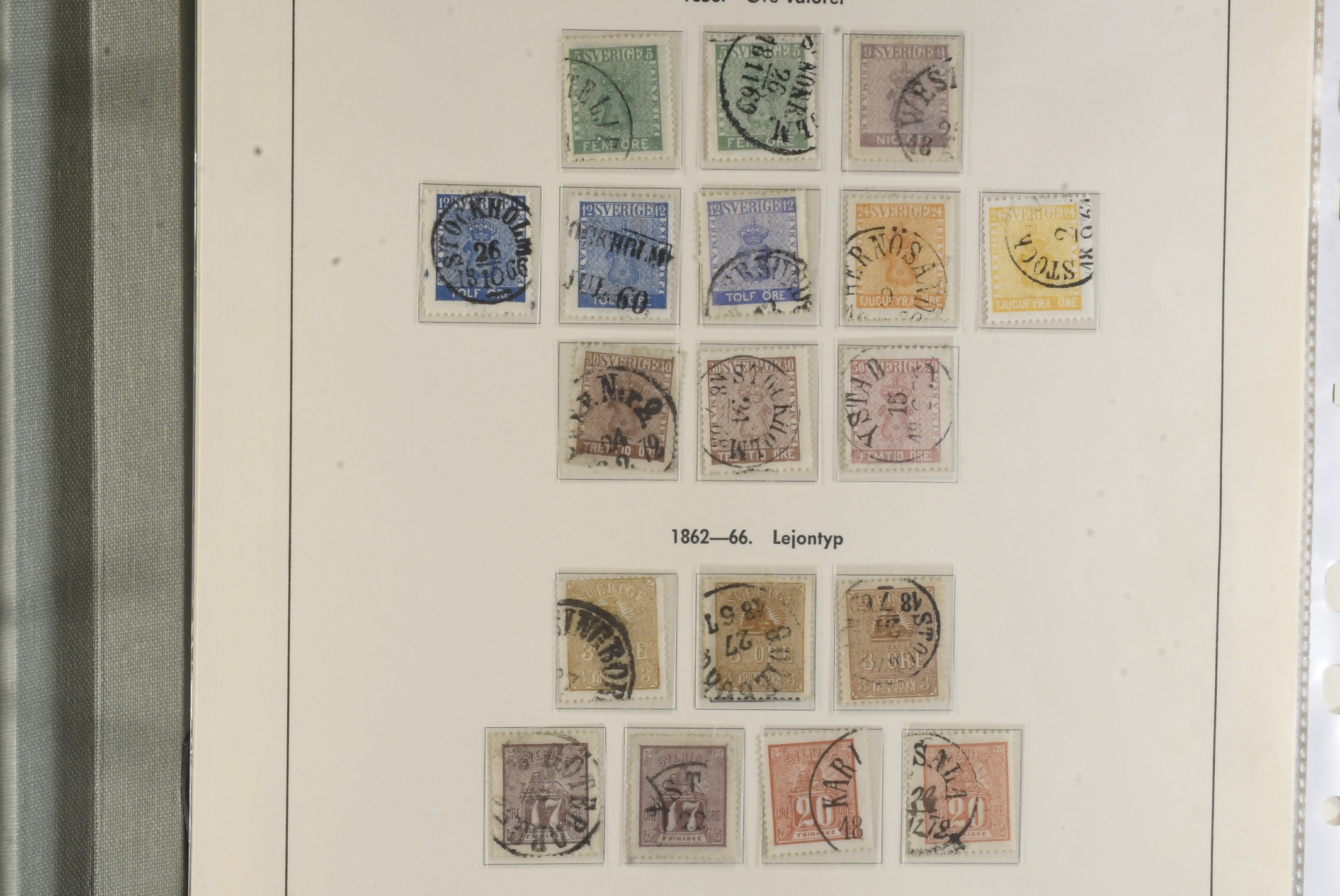 Sweden. Collection used 1855–1960 in album. Starts with one copy of F2. From 1862 almost complete, incl many BC-/CB-pairs.The coil stamp period well represented. Many fine–excellent cancellations observed. Please explore. Please see a selection of scans at www.philea.se. Fine quality. (>500)