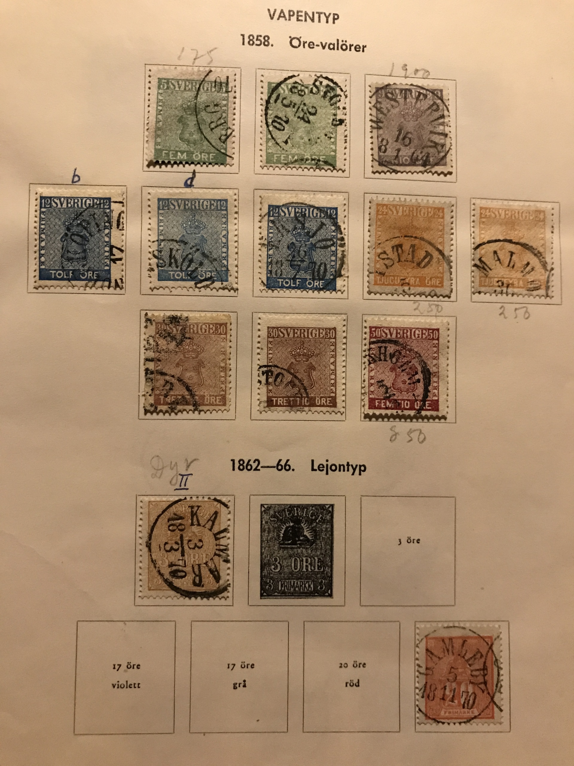 Sweden. Used. Collection 1858–1969 in Facit album incl. e.g. cpl Coat-of Arms, postage due stamps and Circle types except F37, Congress and UPU cpl. 5 öre–1 kr, 17 BC/CB-pairs with good margins, etc. Please see a selection of scans at www.philea.se. Somewhat mixed quality.