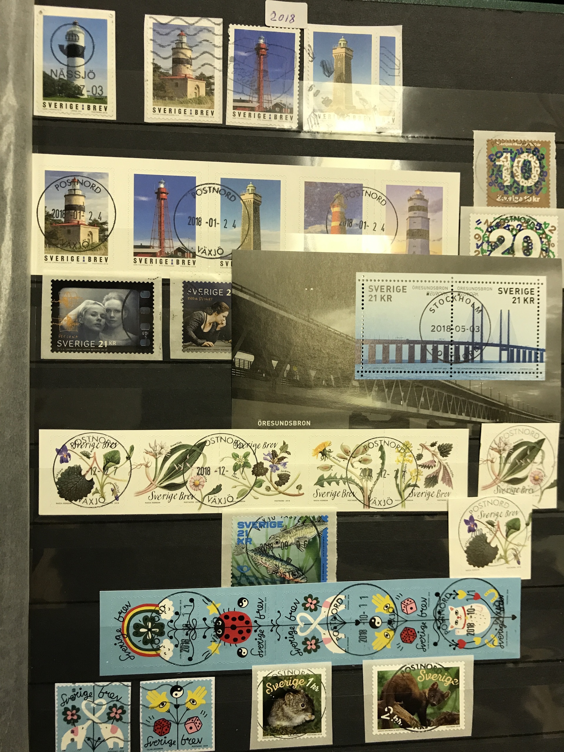 Sweden. Used. Dupl. collection ca. 1920–2021 in eleven stockbooks incl. e.g. booklet blocks, booklets and nice cancellations, etc. Approx. 12 kg.