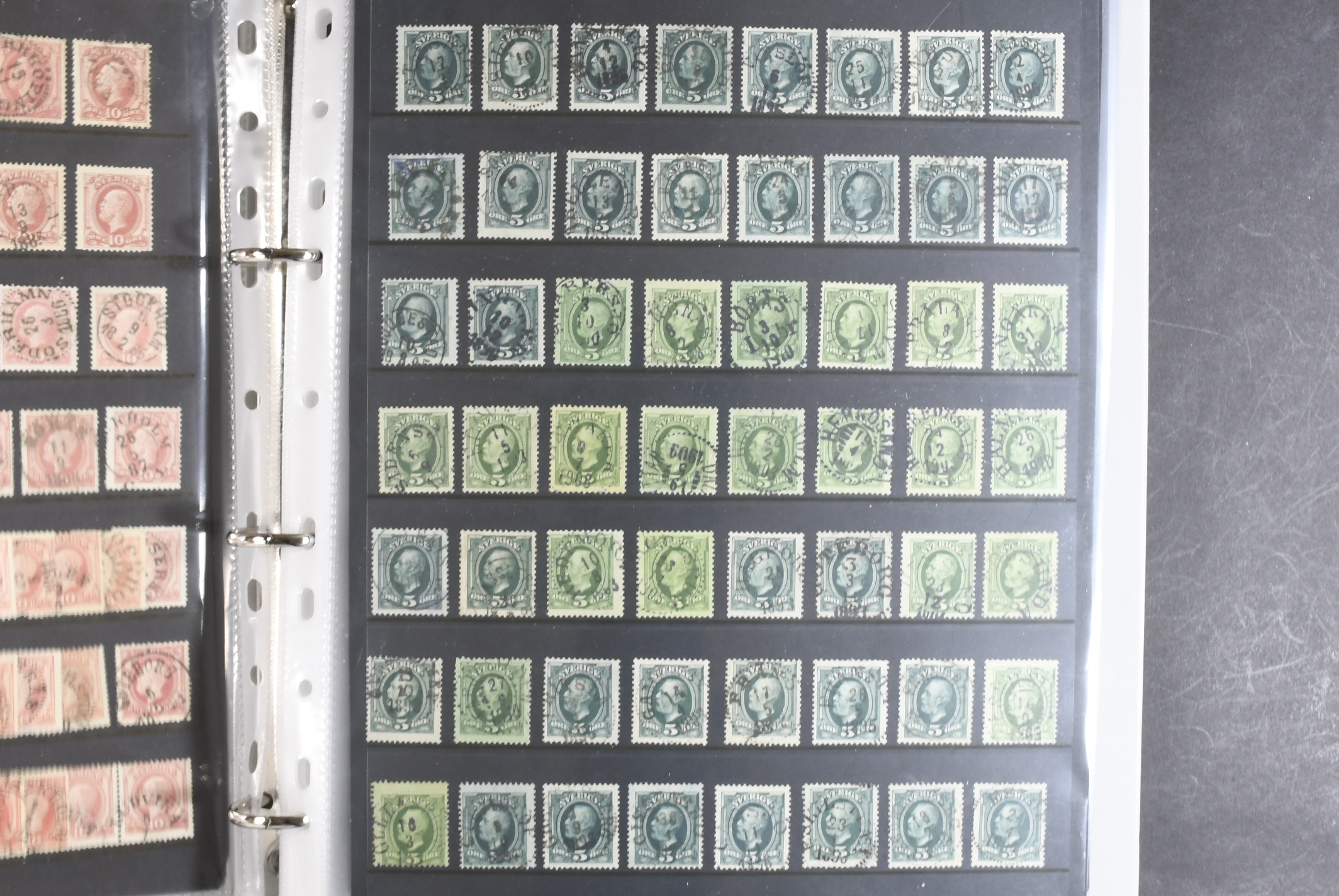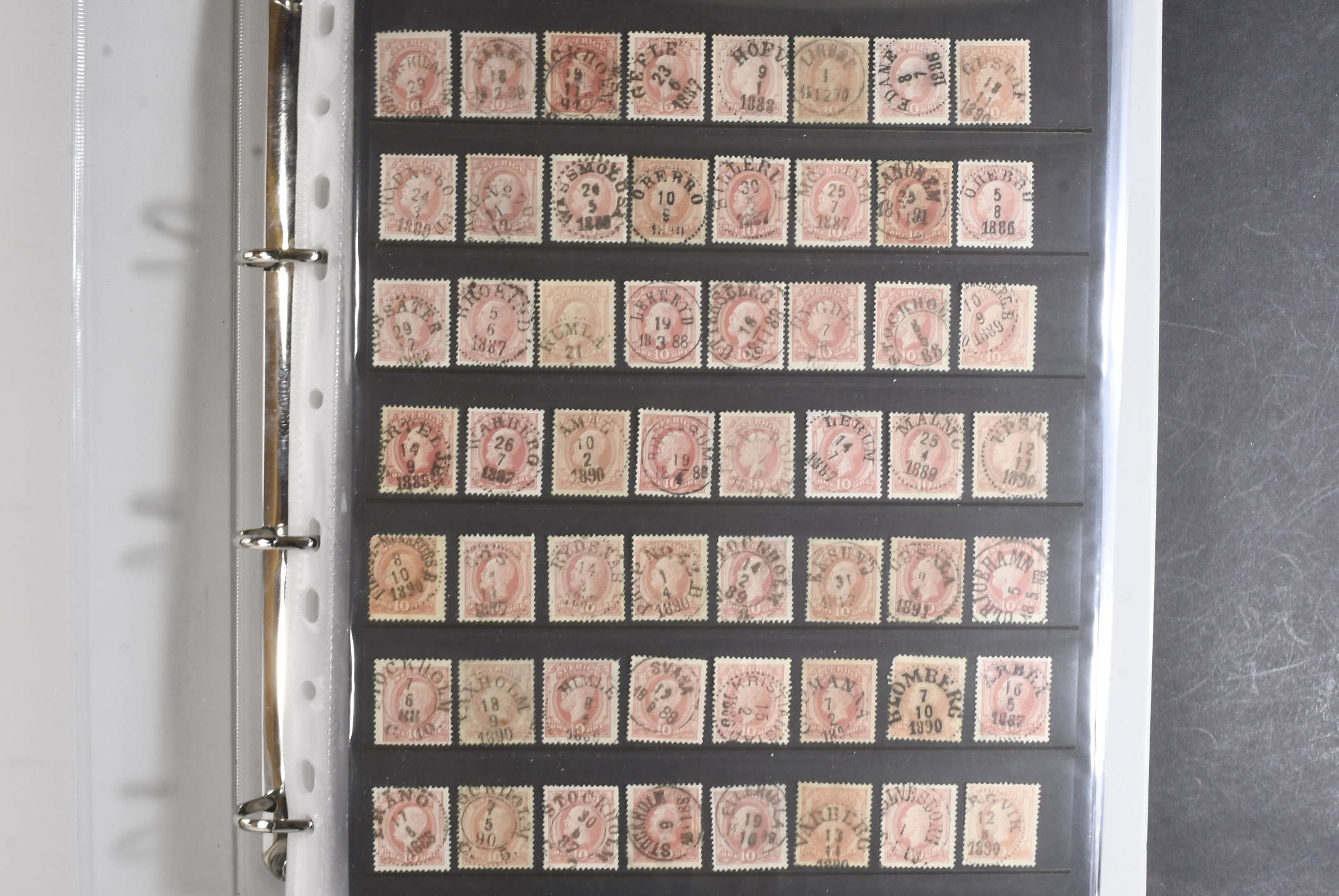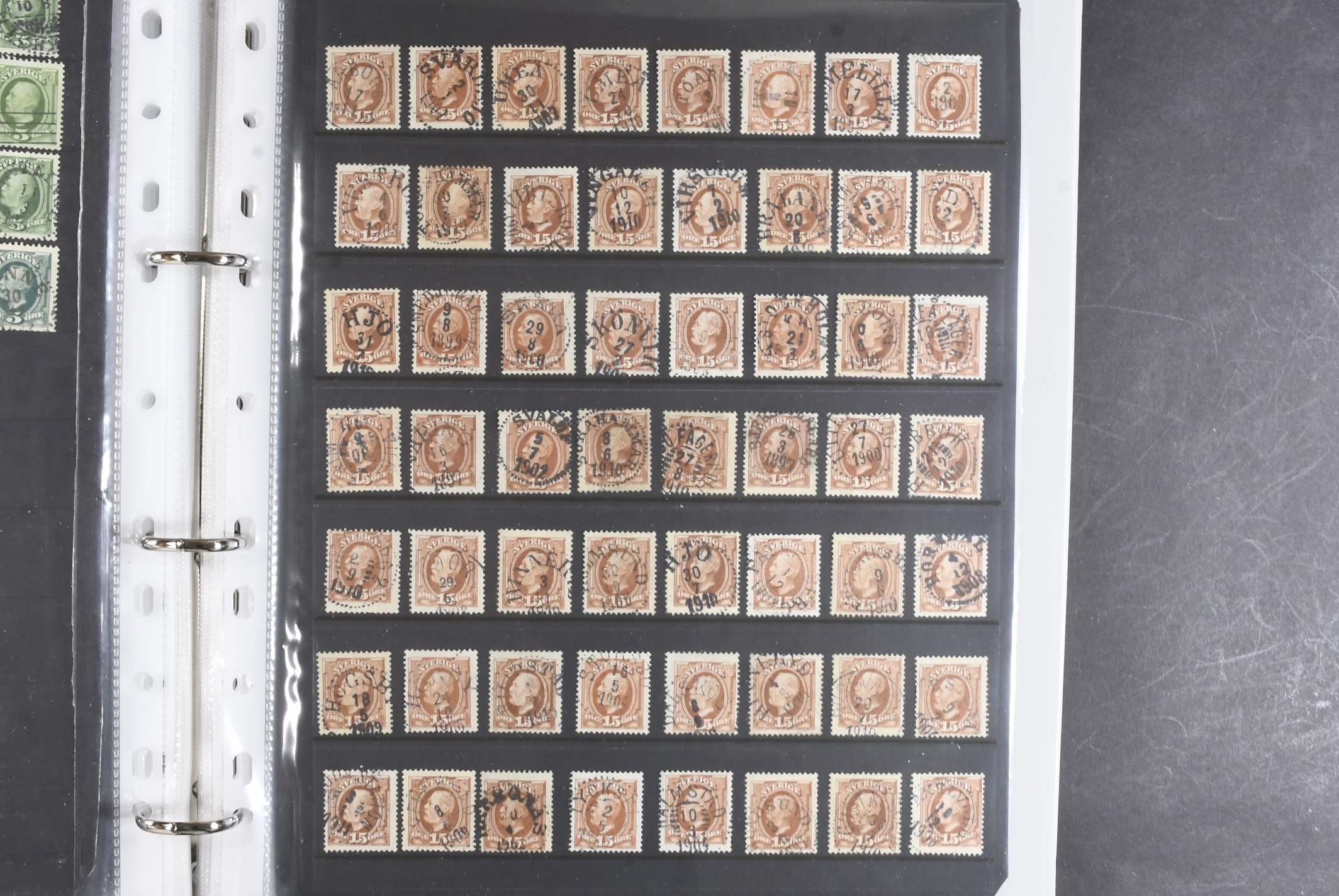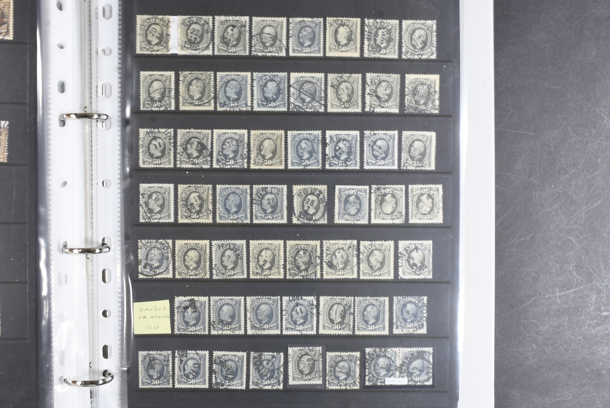 Sweden. Collection/accumulation used 1872–1891 in stockbook. Circle type (all three versions) and Bi-coloured Numeral Type. Study material concerning shades, printings, printing errors, etc. A number of fine – excellent cancellations observed. Please see a selection of scans at www.philea.se. Mostly good quality. (>1000)