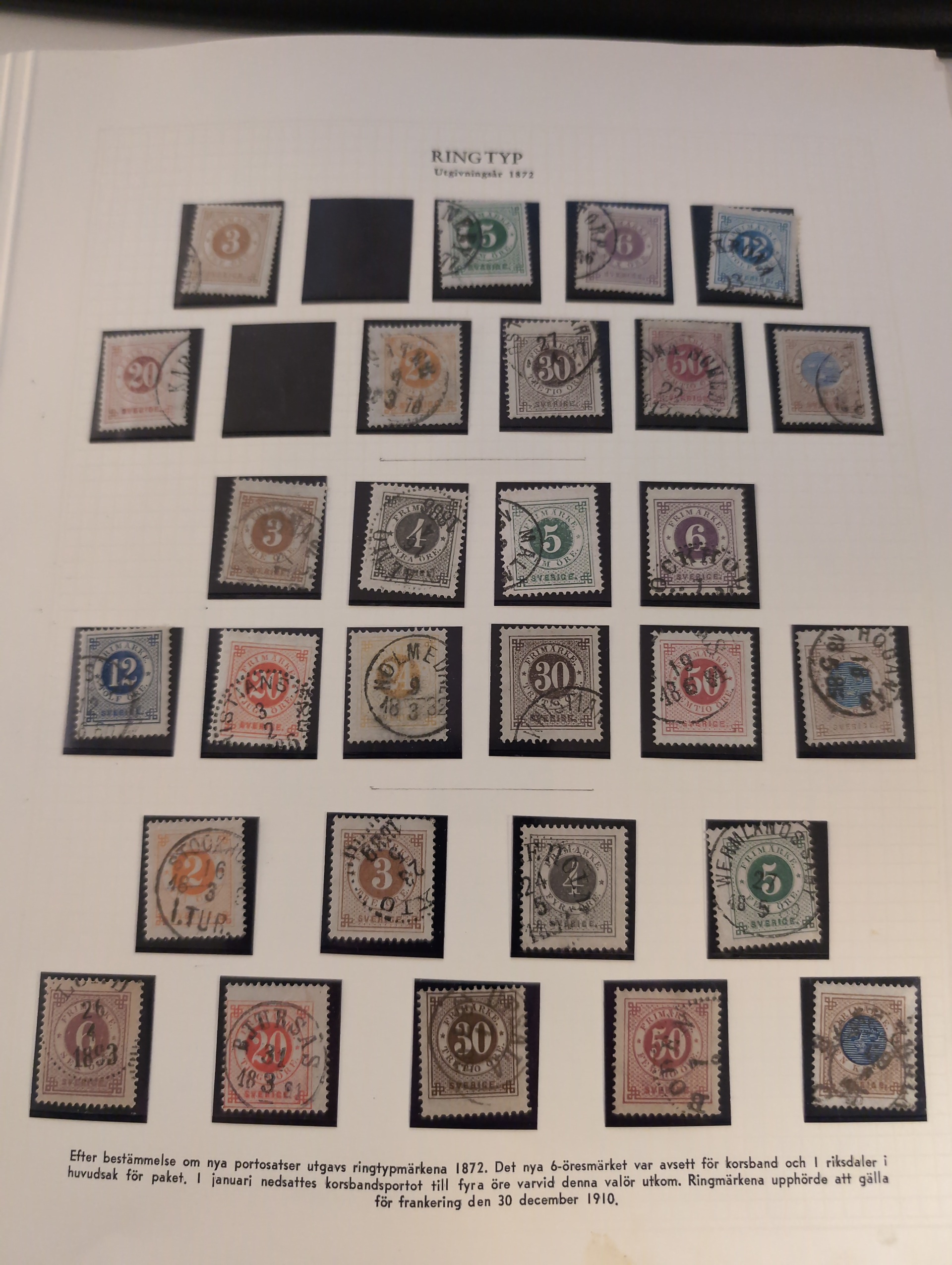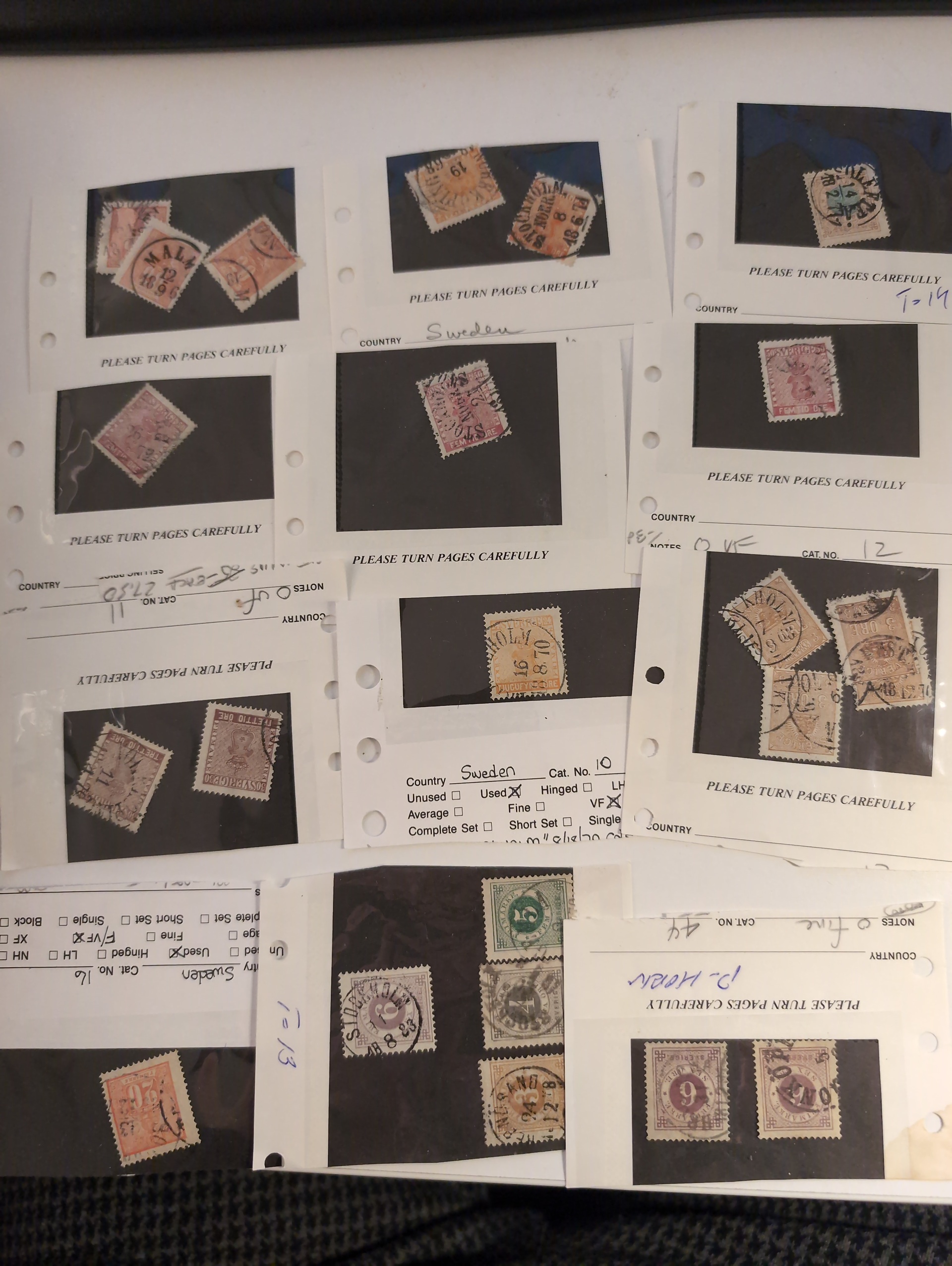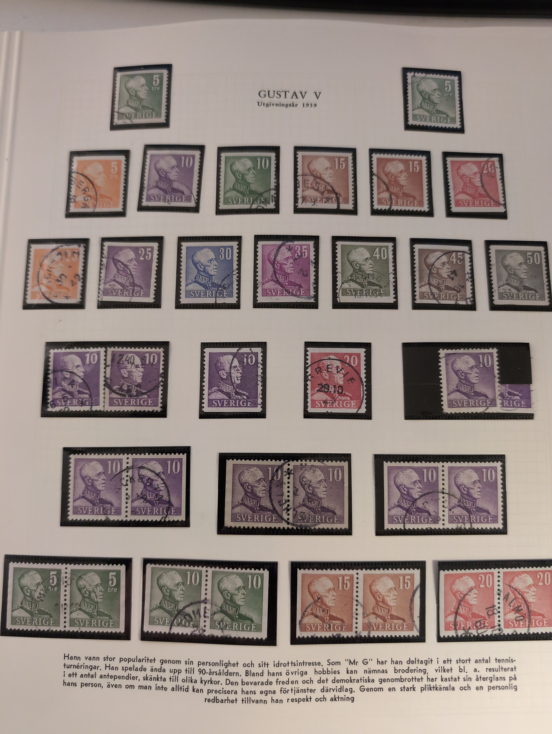 Sweden. Collection used 1855–1963 in album. Well filled collection without more expensive stamps. Starts with two 4 sk, good Coat-of-arms and circle type. UPU to 1 kr and Congress to 2 kr, and a few BC/CB pairs. Also a folder with early duplicates. Mostly good quality. (700+)