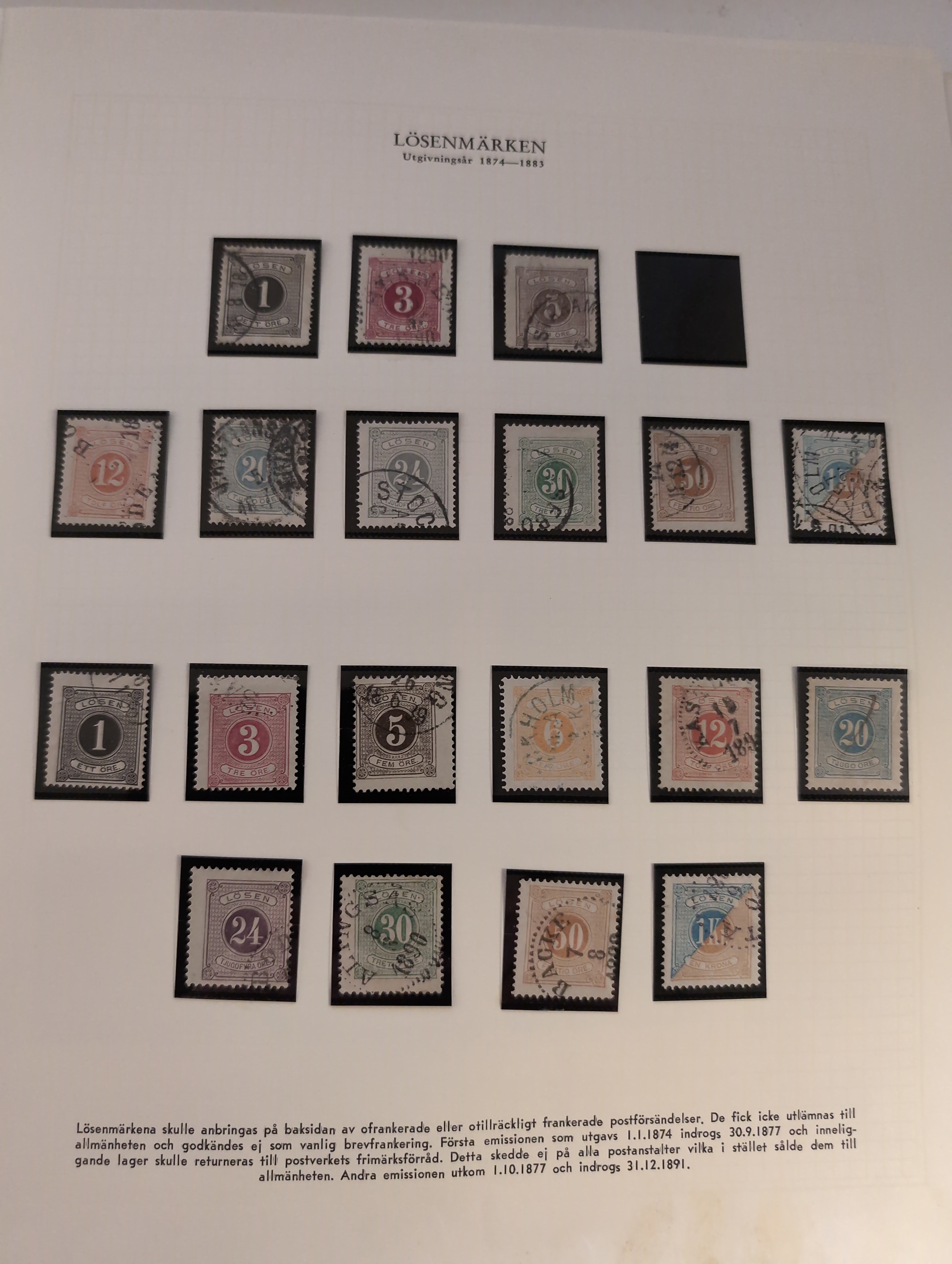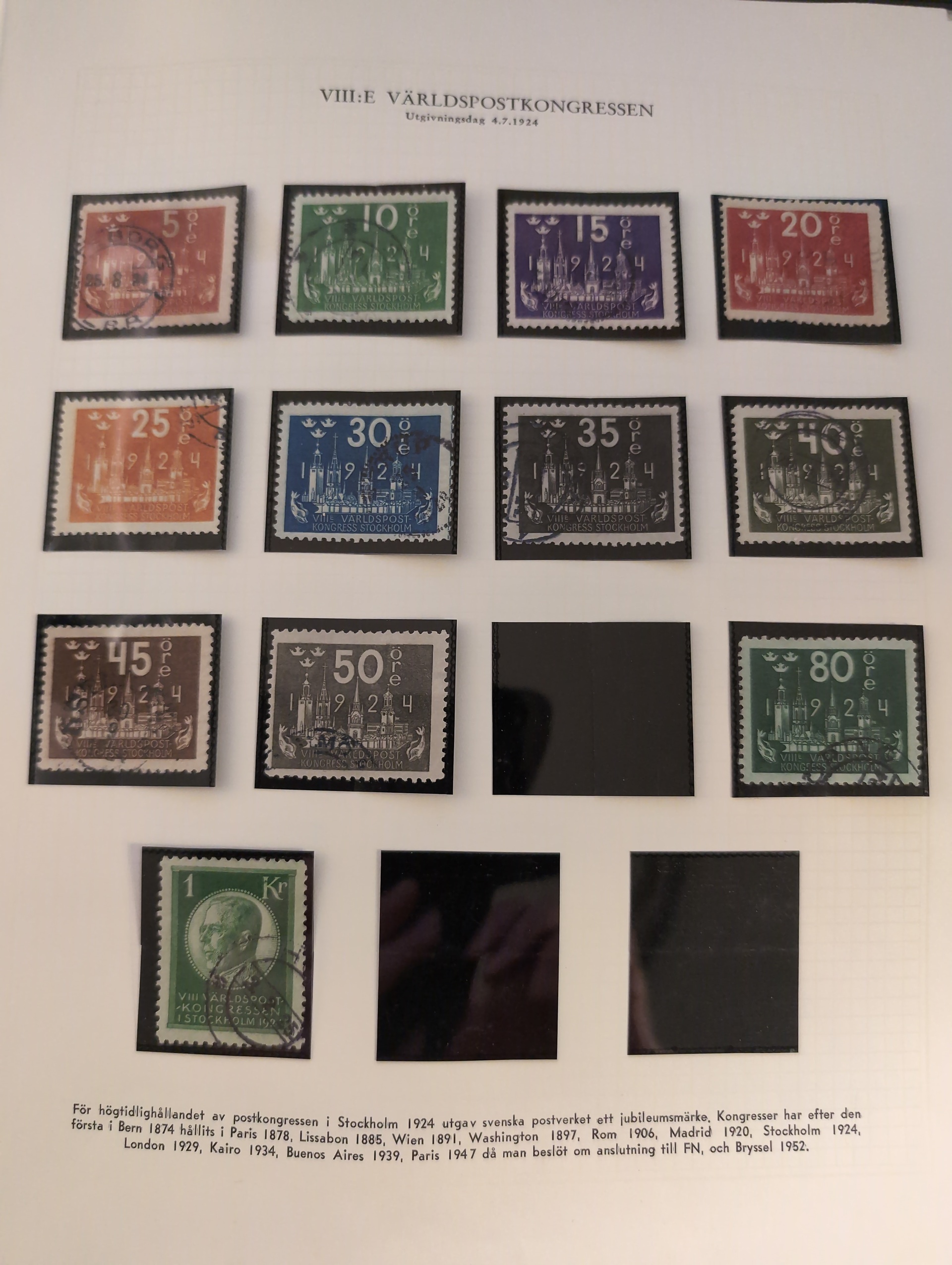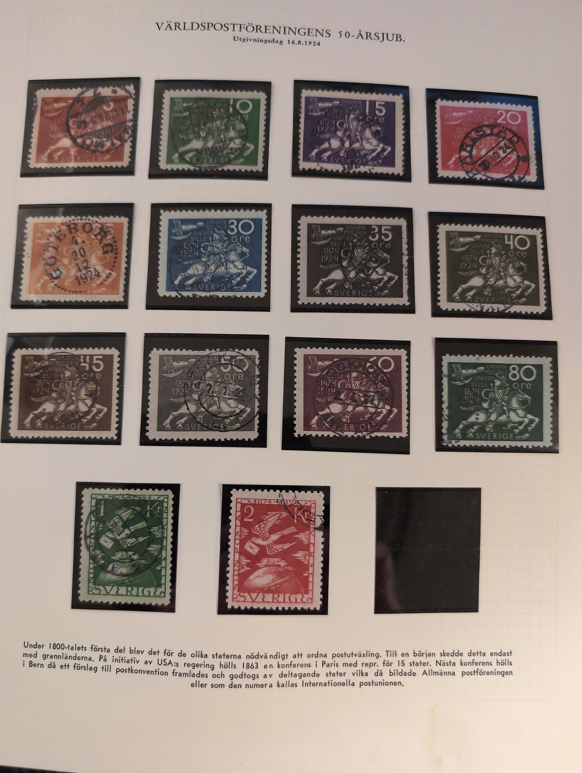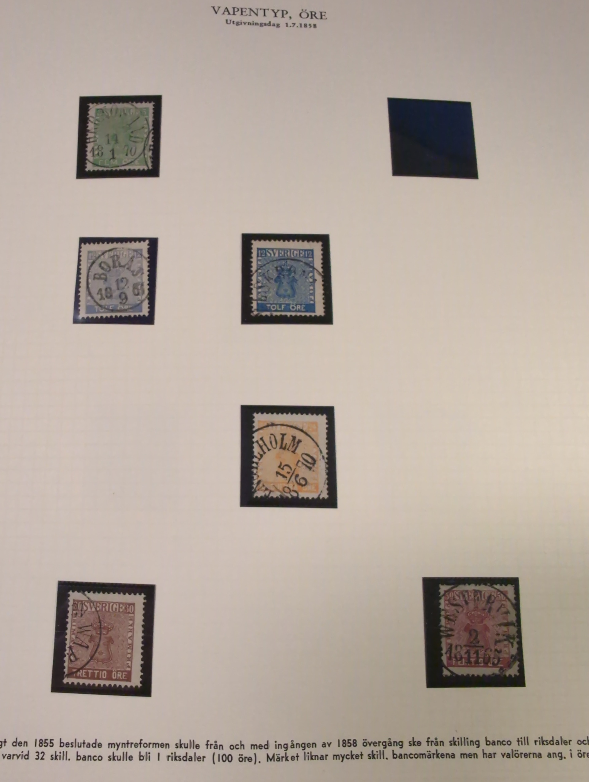 Sweden. Collection used 1855–1963 in album. Well filled collection without more expensive stamps. Starts with two 4 sk, good Coat-of-arms and circle type. UPU to 1 kr and Congress to 2 kr, and a few BC/CB pairs. Also a folder with early duplicates. Mostly good quality. (700+)