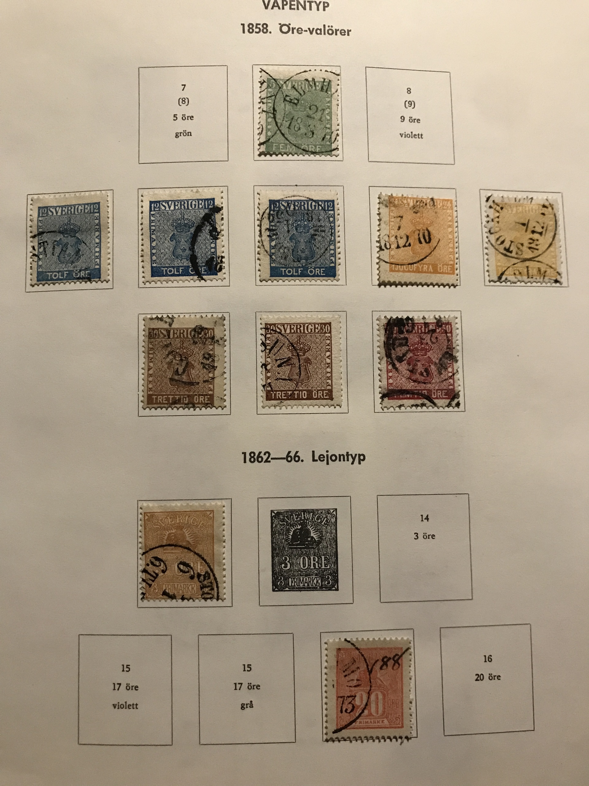 Sweden. Used. Collection 1858–1987 in Facit album incl. e.g. Congress 5–80 öre, some UPU, BC/CB-pairs and nice cancellations, etc. Please see a selection of scans at www.philea.se. Mostly fine quality.