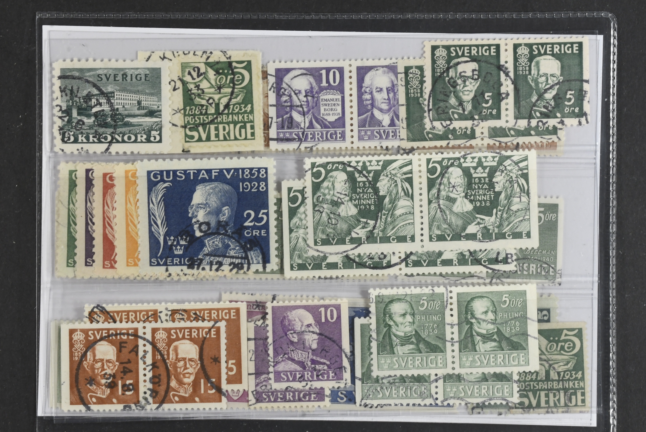 Sweden. Used 1928–1941. All different, e.g. F 226–30, 233c, 238, 259BC, 261BC/CB, 266–67BC/CB, 269B+B, 318BC/CB, 321BB/BC/CB, 324BB/BC/CB. Mostly good quality. F SEK 8530 (29)