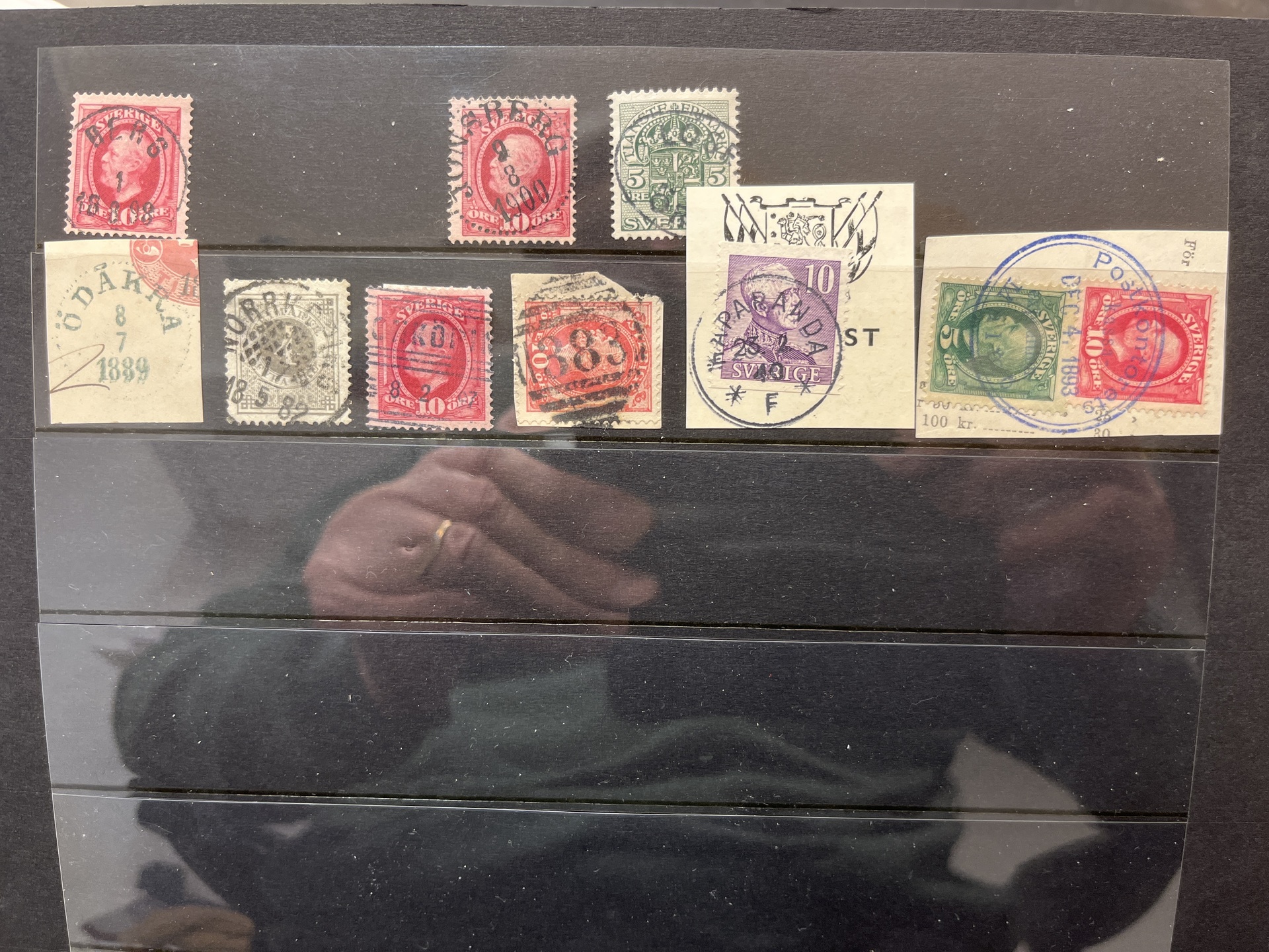 Sweden. Lot used on five visir leaves. with e.g. inverted wm and cancels.