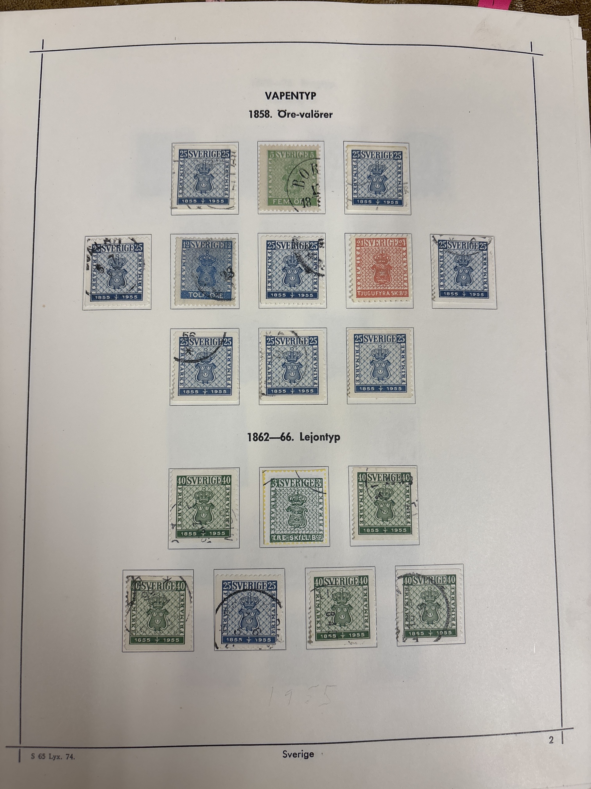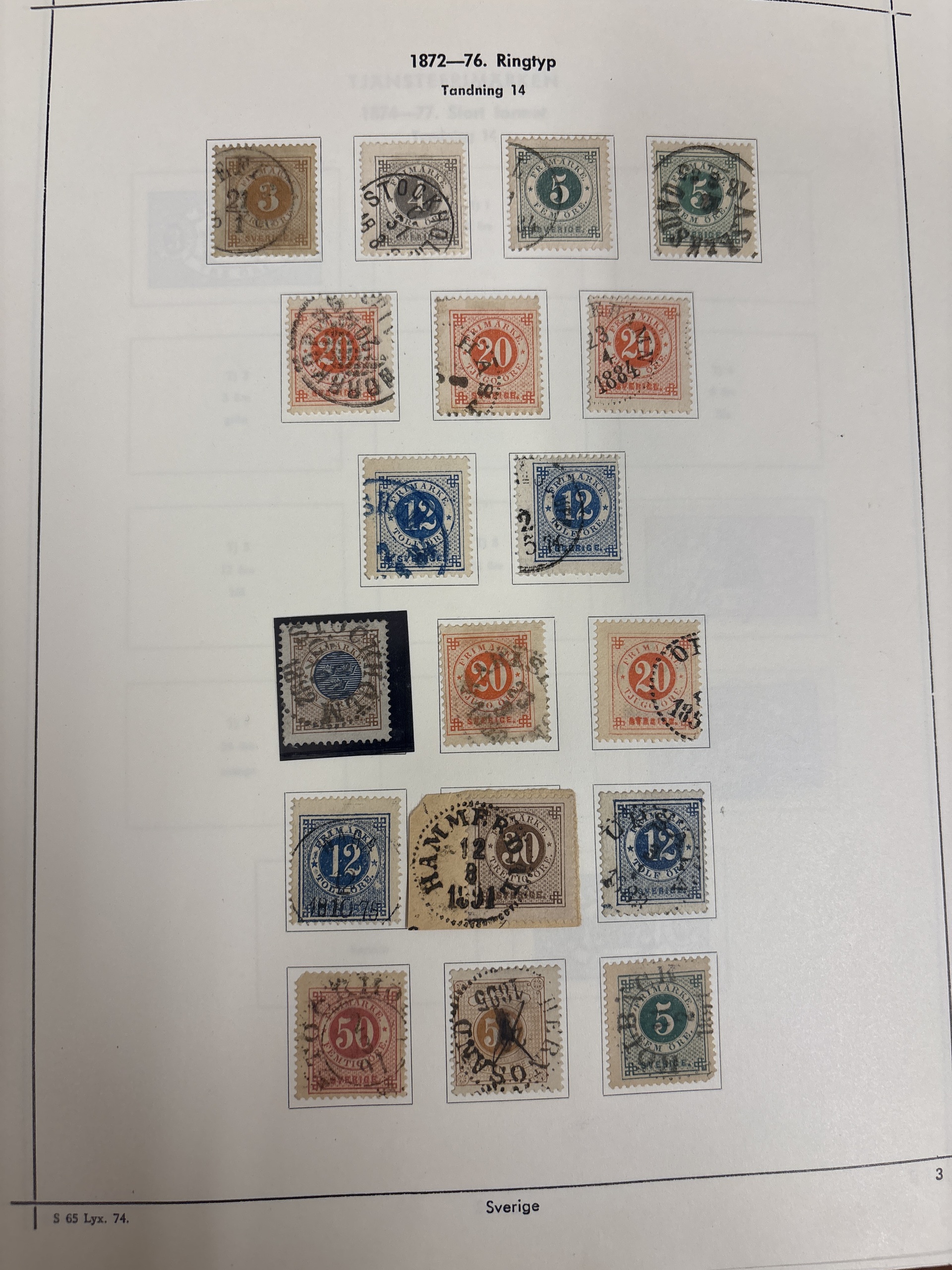 Sweden. Collection used 1855–1977 in album with stamp mounts Fine quality.