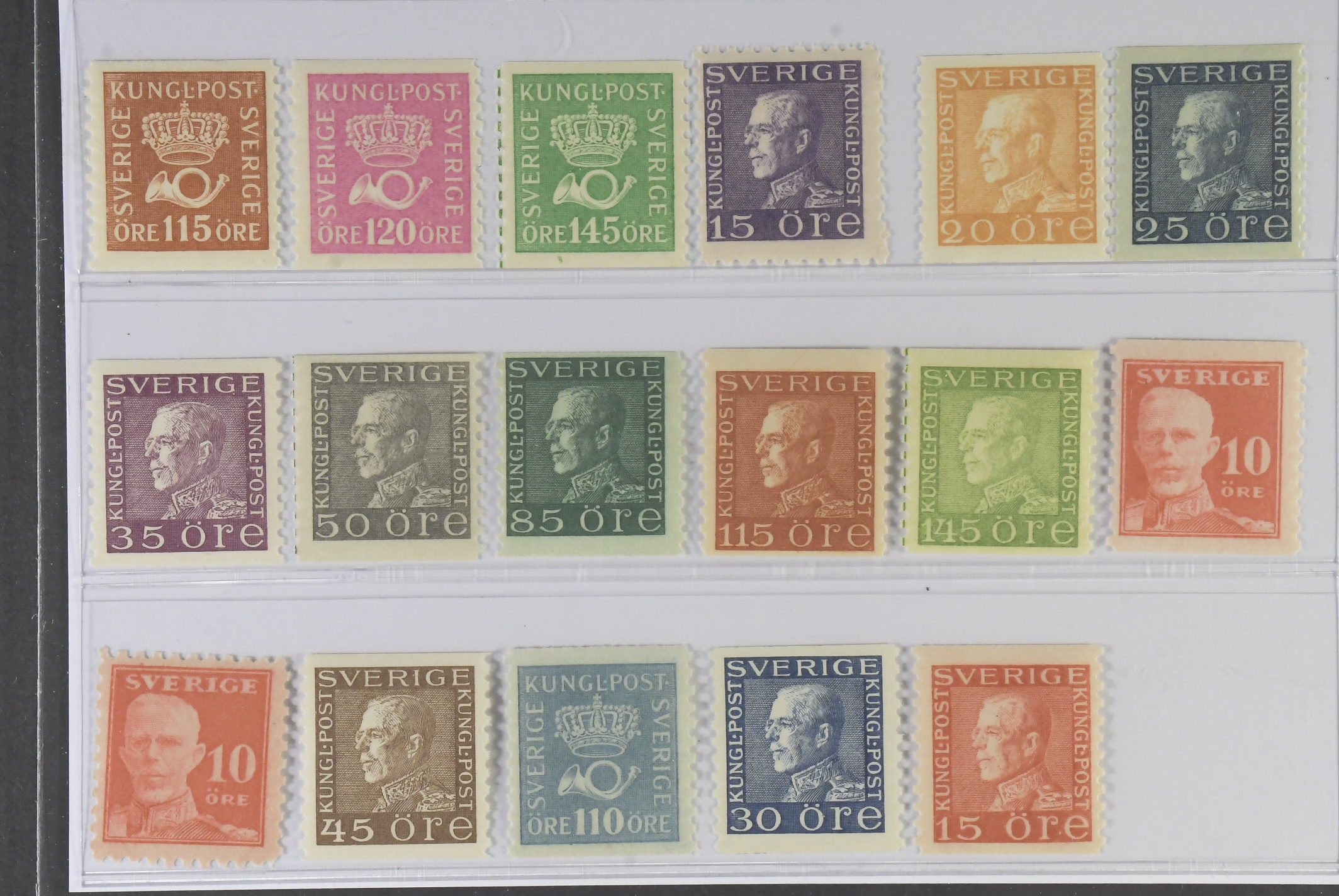 Sweden. Used 1920–1936. Coil stamps. All different, e.g. F 149A+C, 170A3, 172A3, 174A3, 175C, 181a, 183a, 187A3, 192a, 193–95. Mostly good quality. F SEK 6680 (17)