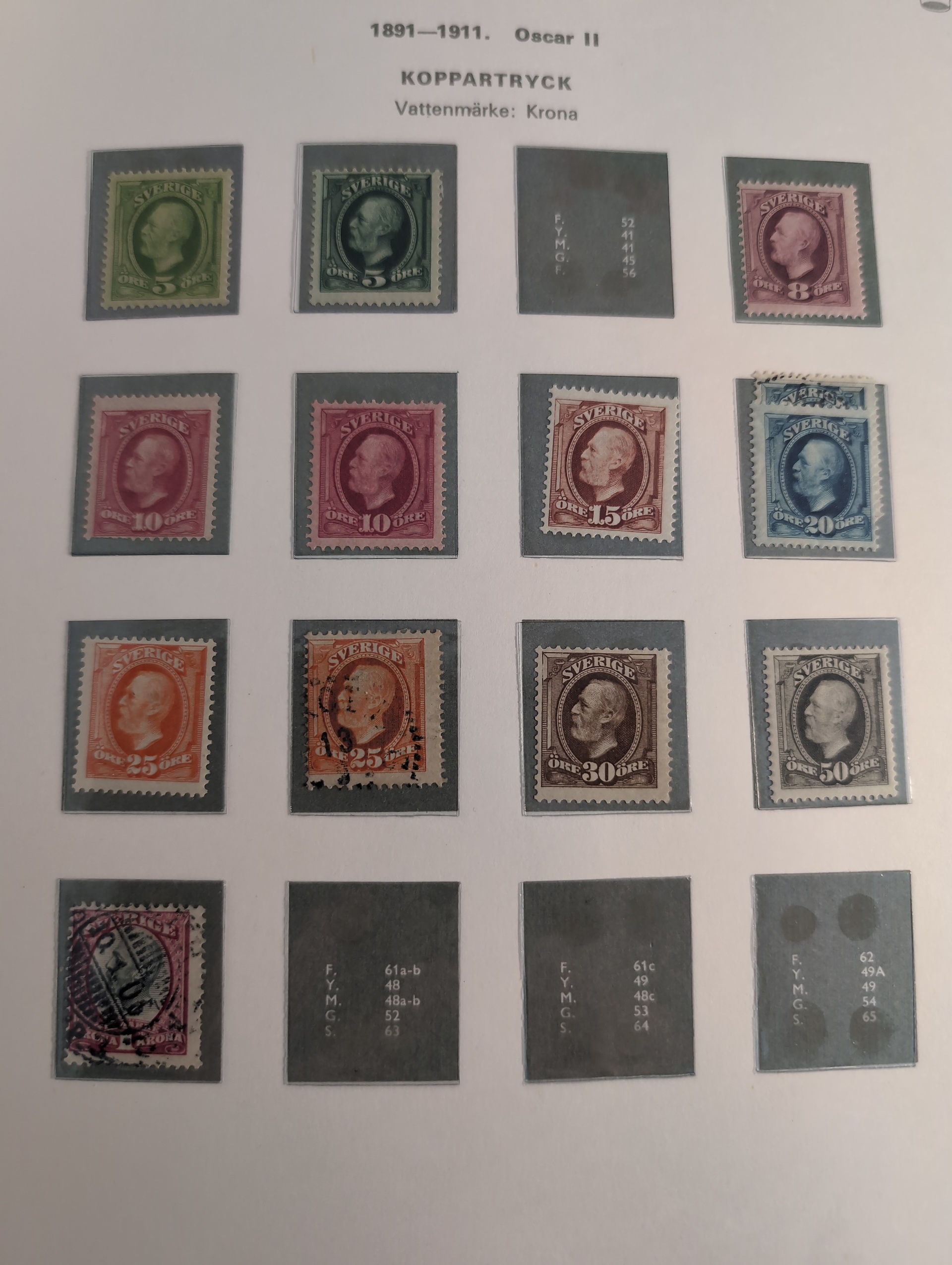 Sweden. Collection ★★/★/⊙ 1855–1971 in two Verbis album with stamp mounts. Well filled collection starts with 4 sk, from Circle type with poshorn mixed mint and from Oscar some mint are NH. From 1930s much NH. Please see a selection of scans at www.philea.se. Good quality. (c900)