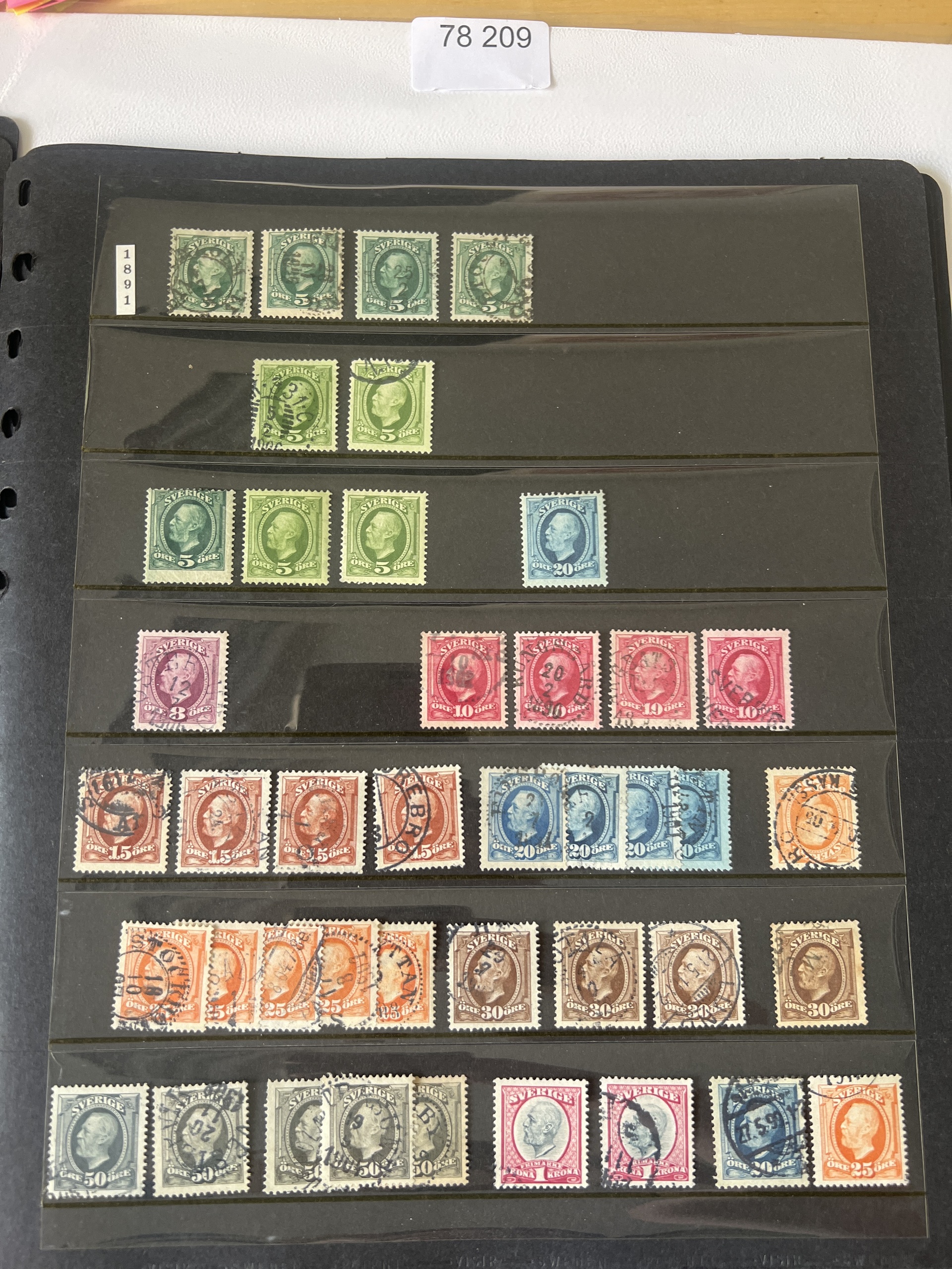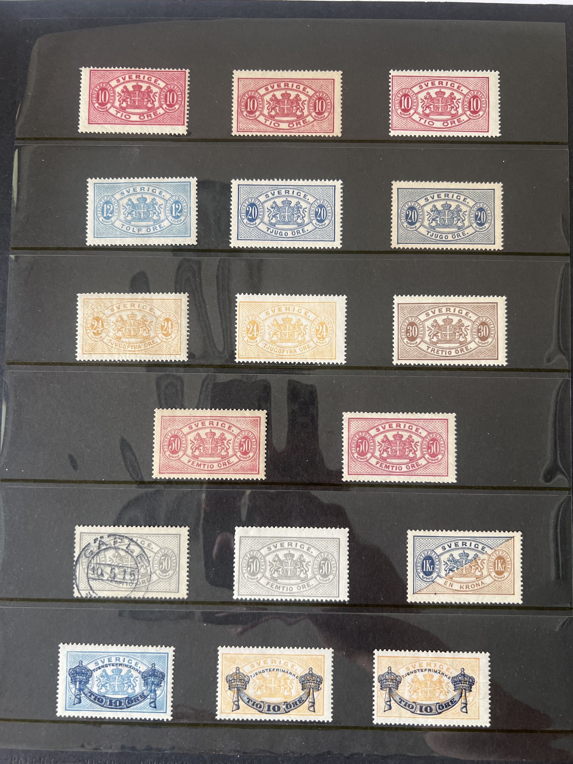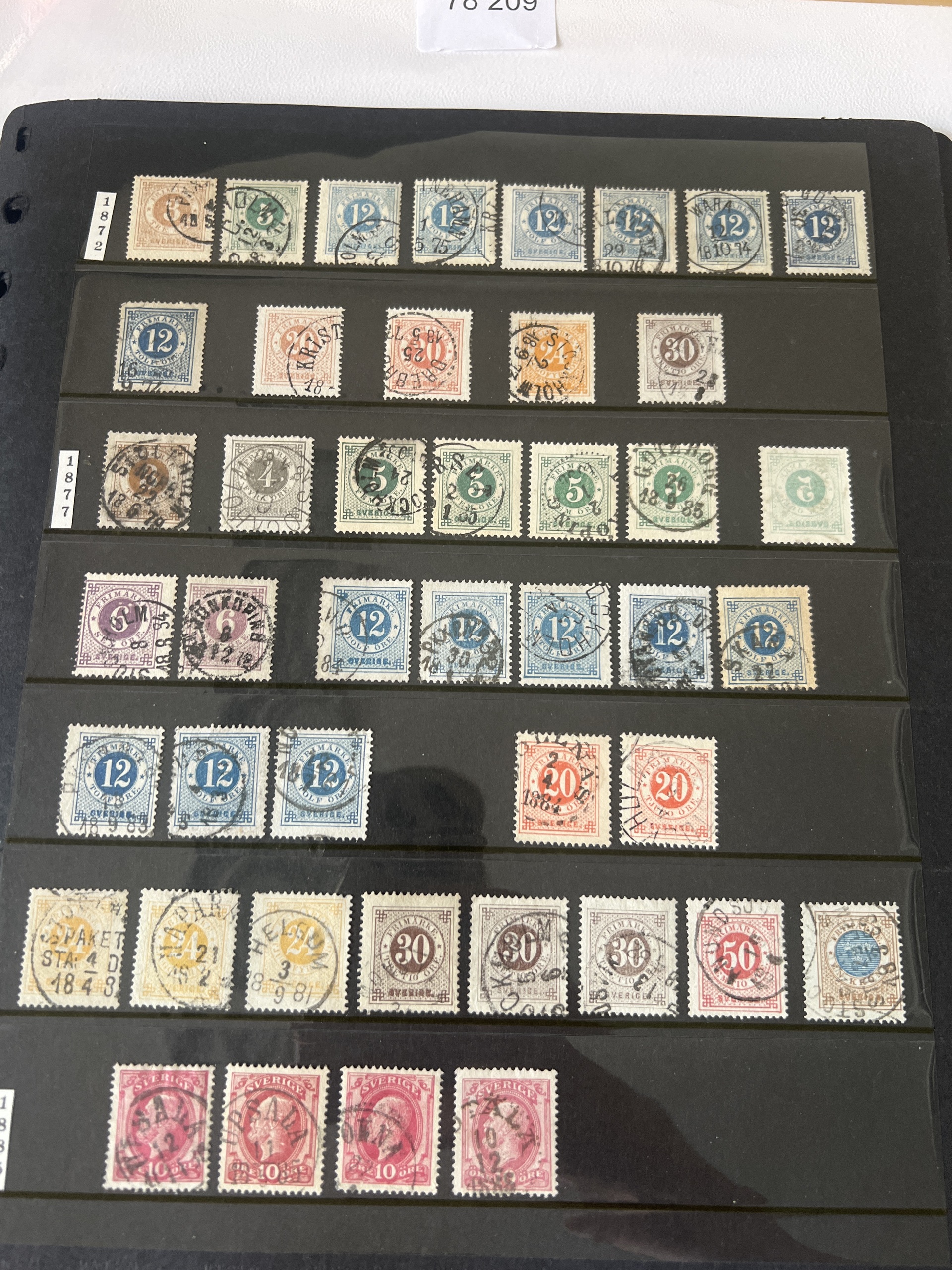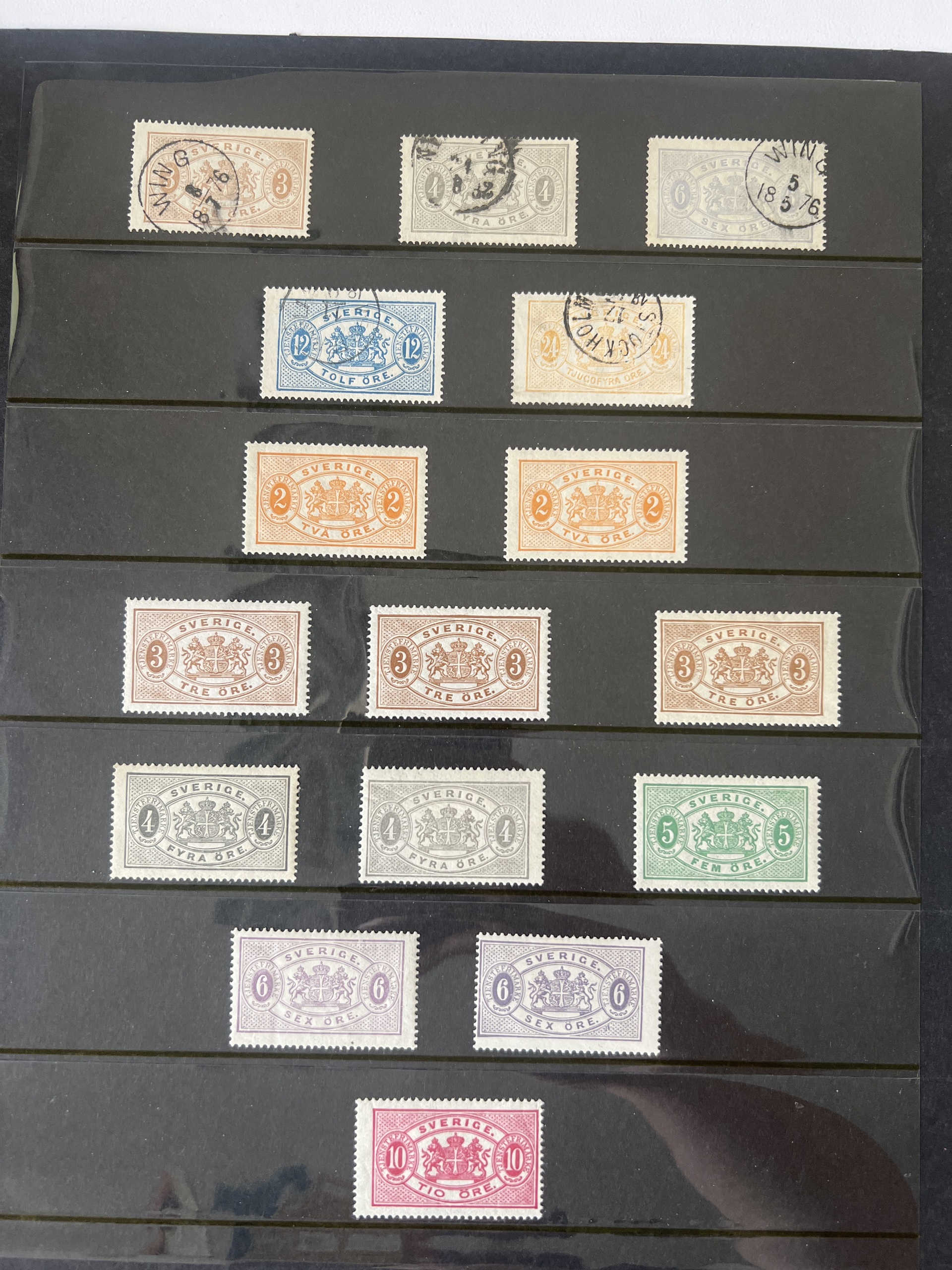 Sweden. Lot ★/⊙ 1855–1924 on visir leaves. The useful years, with usuefull stamps all through the entire period. The entire lot is presented at www.philea.se. Mostly good quality. (200+)