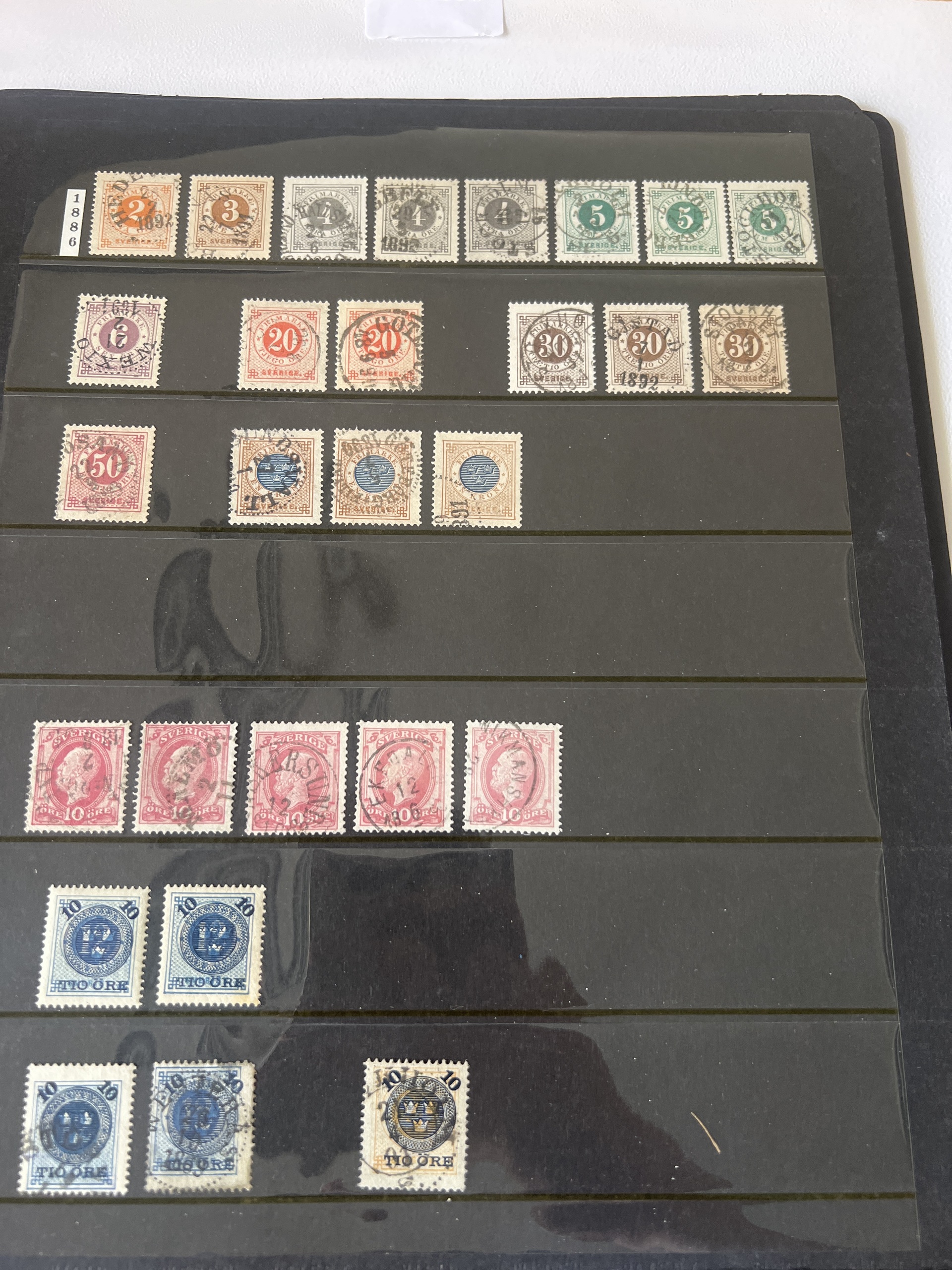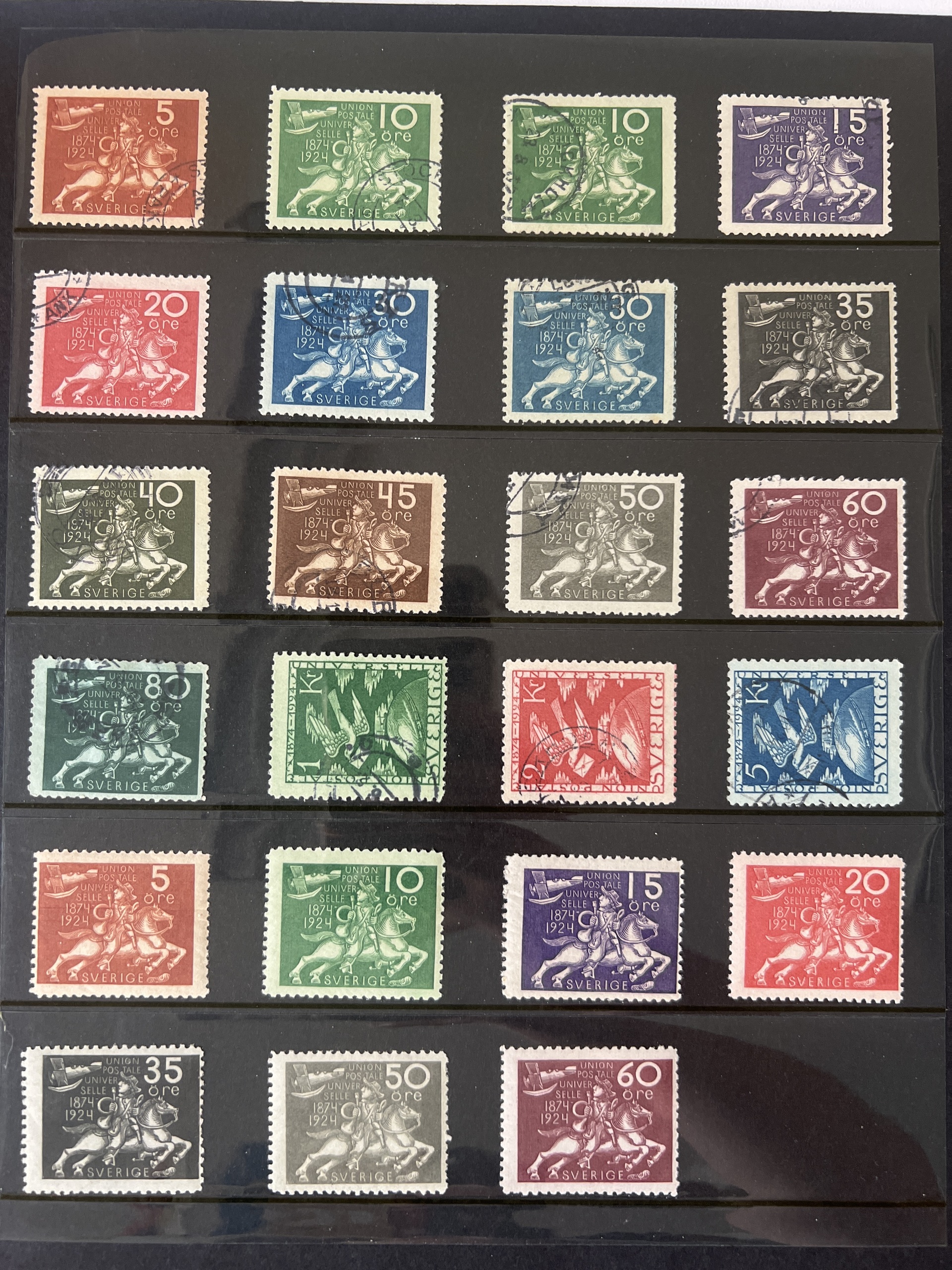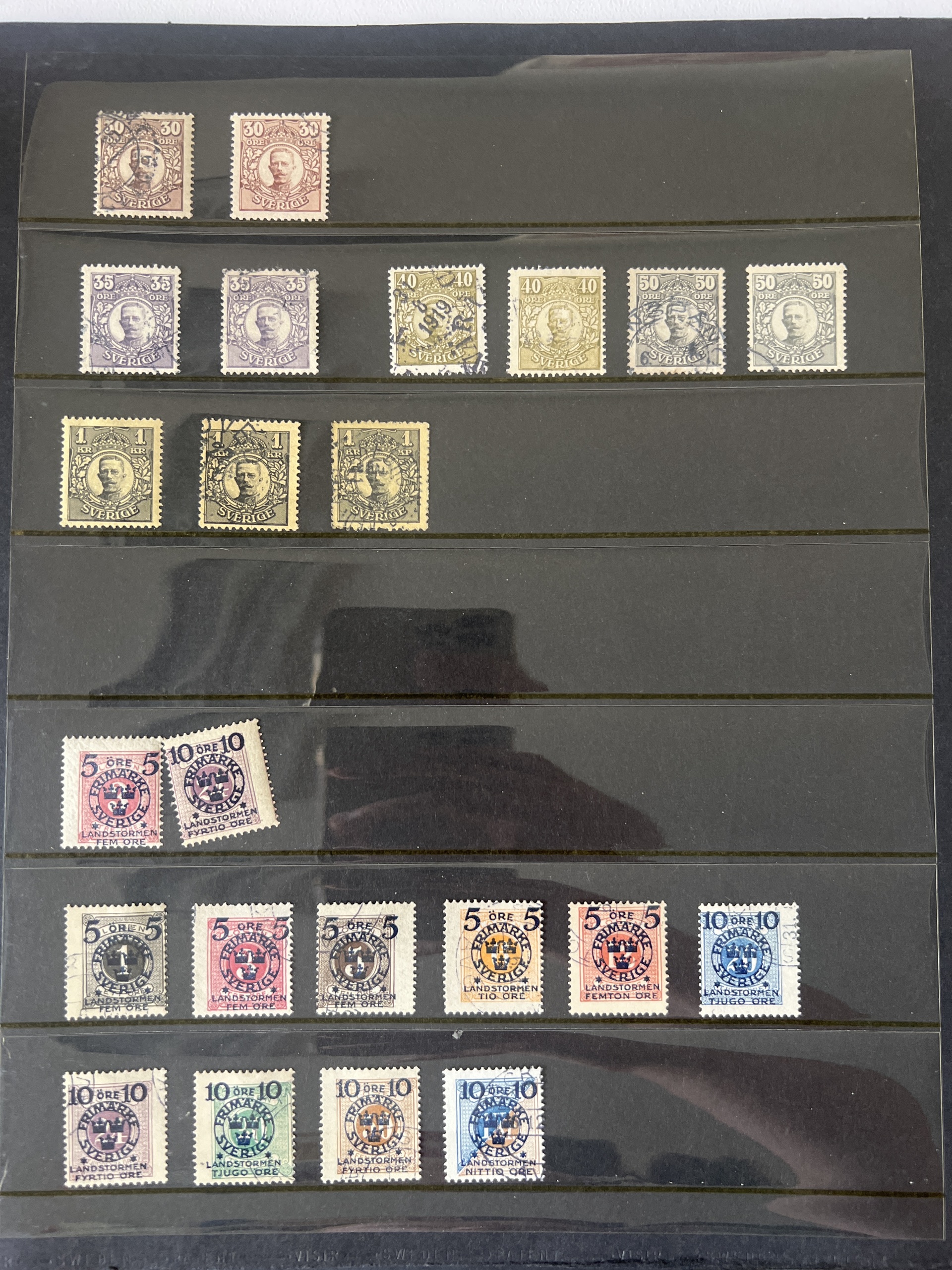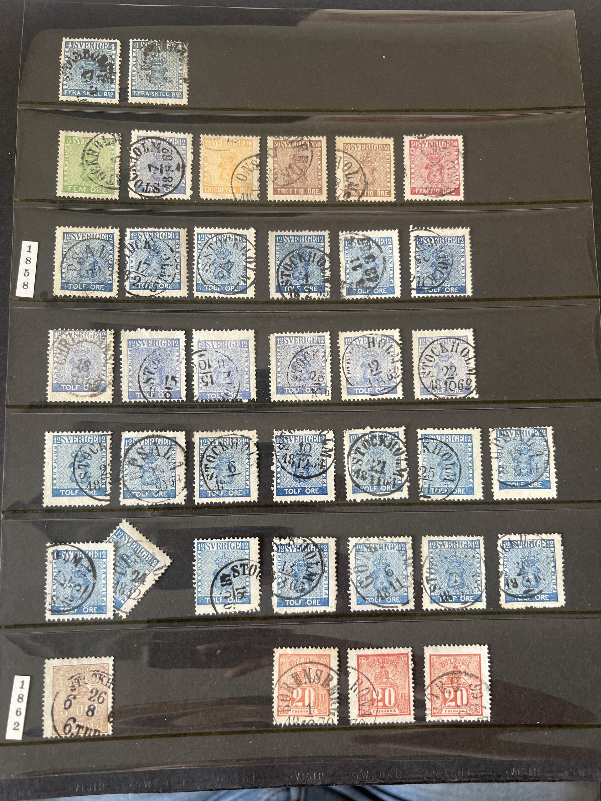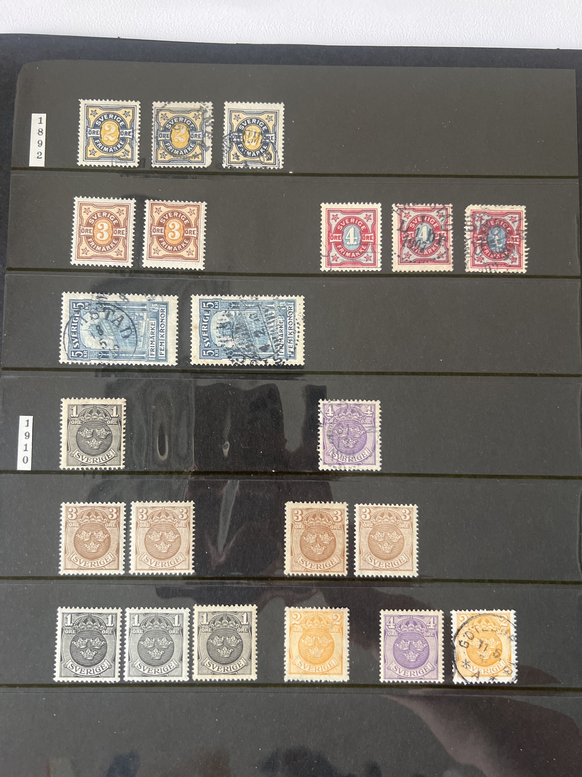 Sweden. Lot ★/⊙ 1855–1924 on visir leaves. The useful years, with usuefull stamps all through the entire period. The entire lot is presented at www.philea.se. Mostly good quality. (200+)