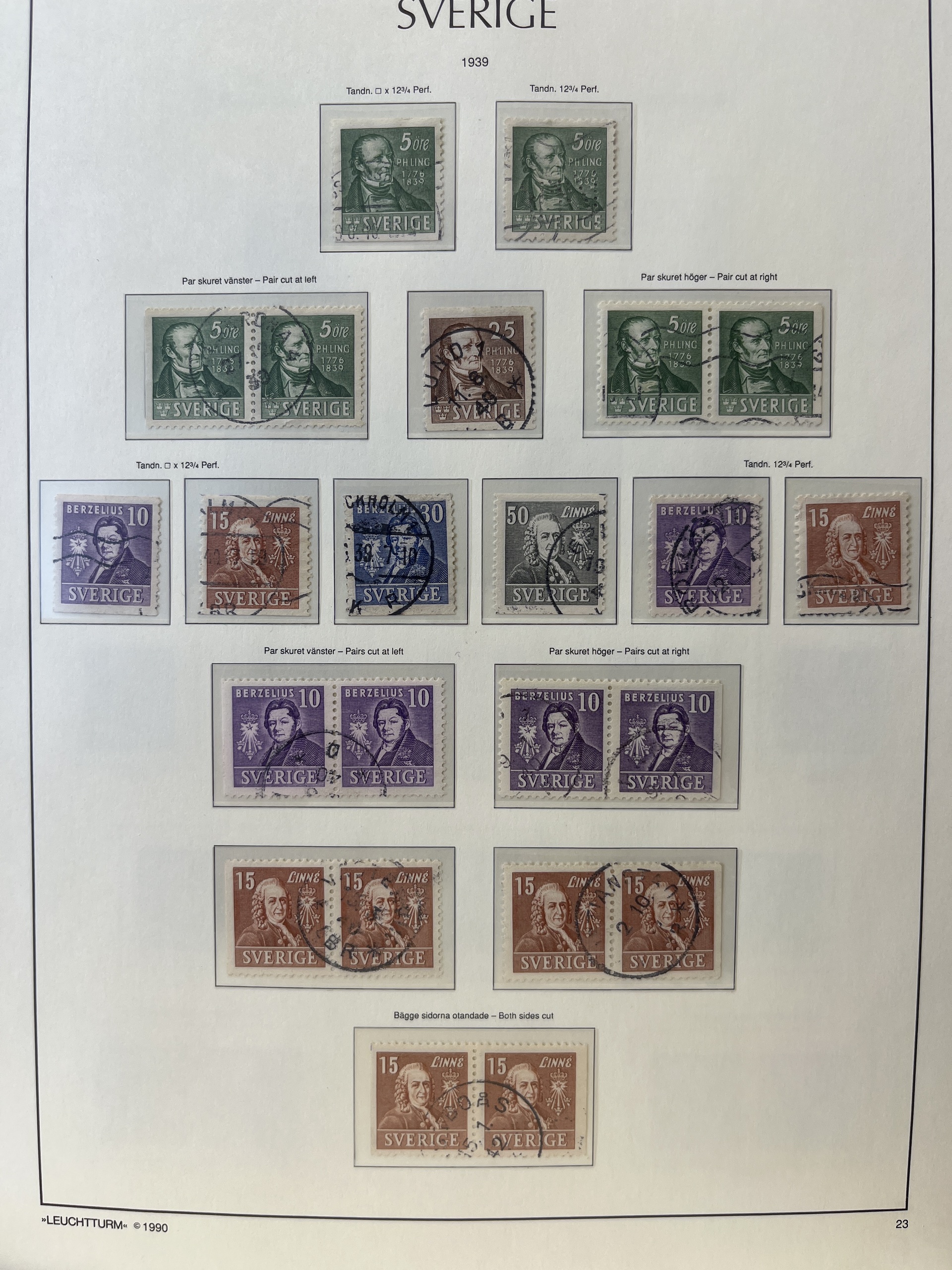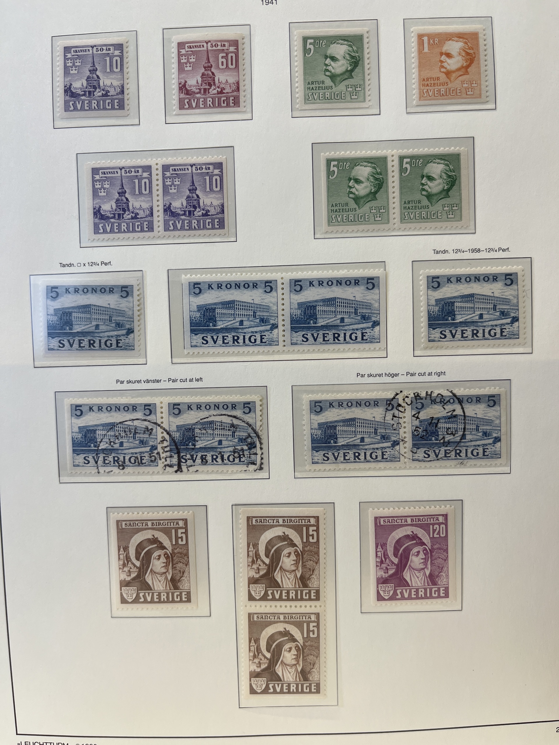 Sweden. Collection ★★/★/⊙ 1828–1941 in Leuchtturm leaves. with e.g. BC/CB-pairs. Mostly fine quality.