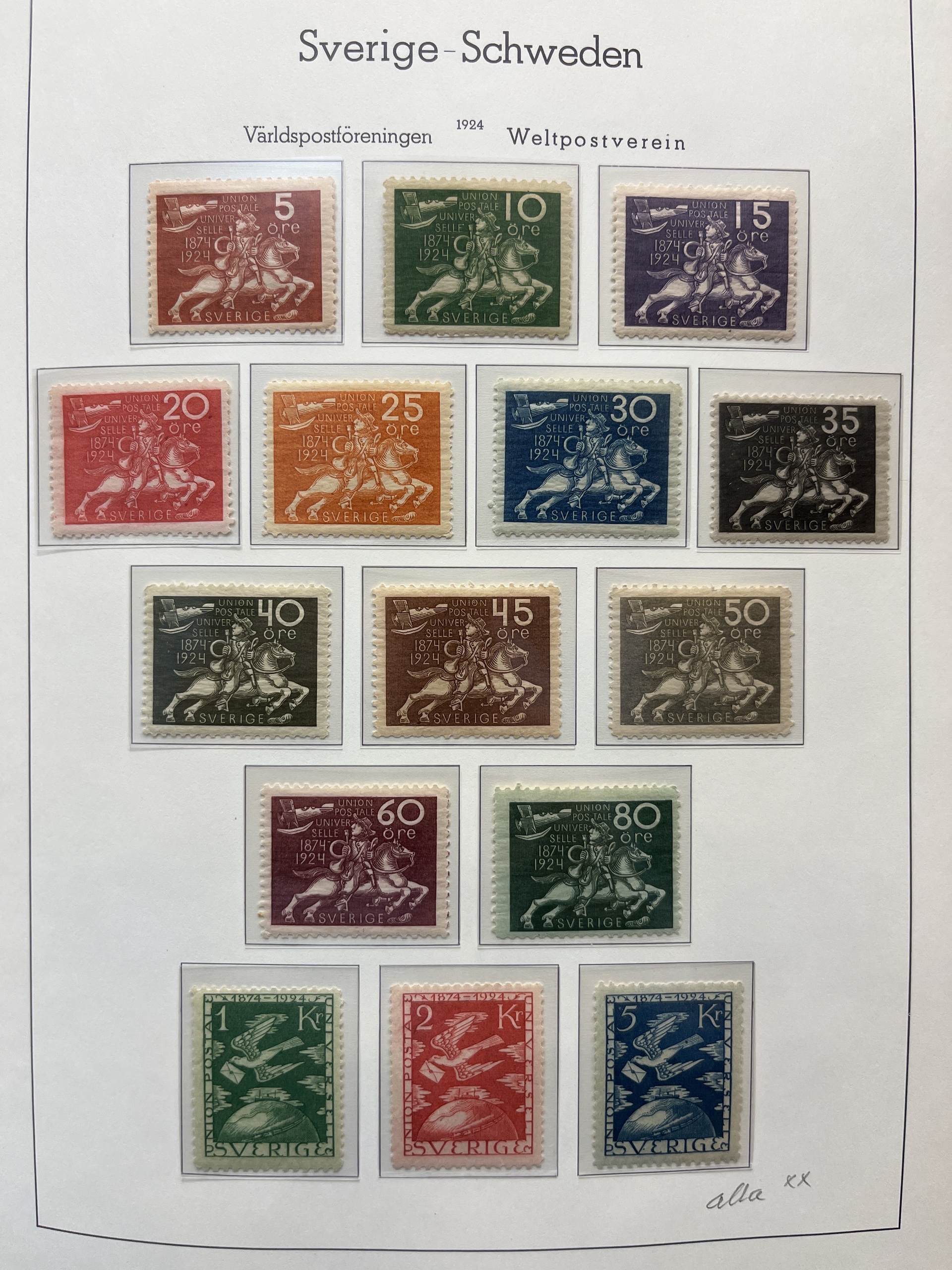 Sweden. Collection ★★/★/⊙ 1855–1978 in two Leuchtturm albums with stamp mounts. With e.g. 1924 year sets compl. and almost **.