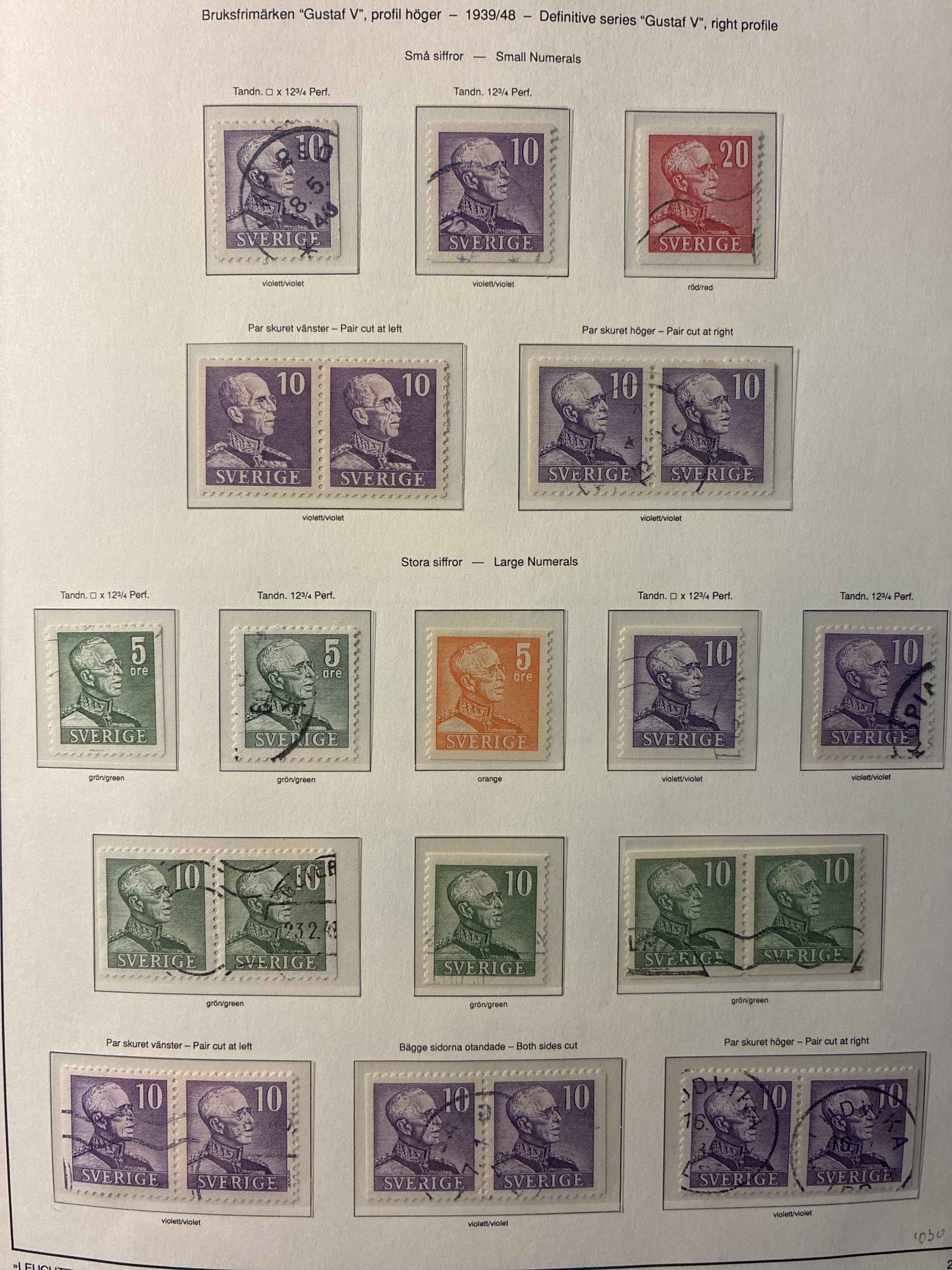 Sweden. Collection ★★/⊙ 1938–1973 in Leuchtturm album. BC, CB pairs. Nice Slottet II BC canceld. Gustaf VI many pair combinations. Please see a selection of scans at www.philea.se. Mostly good quality. (c.2000)
