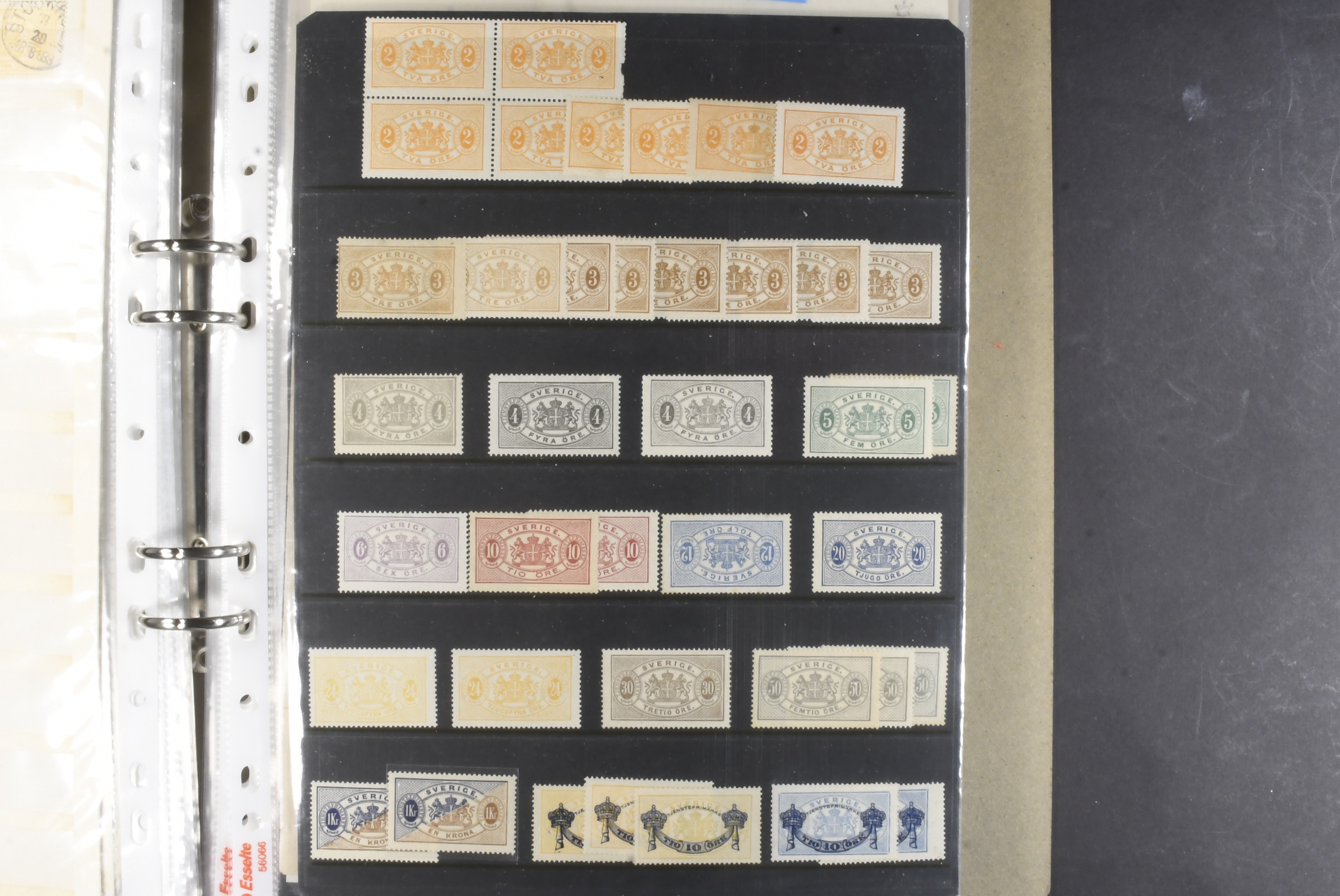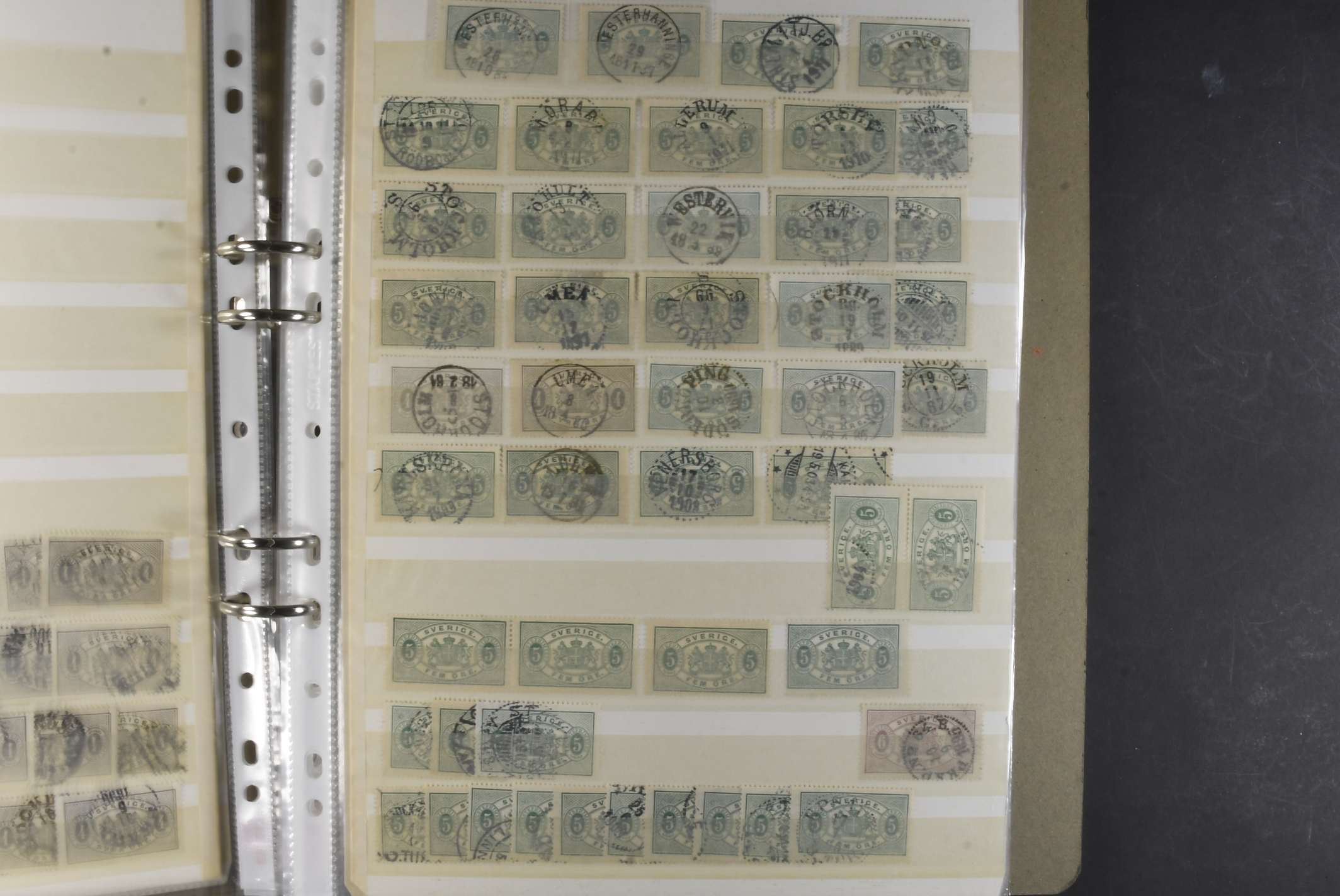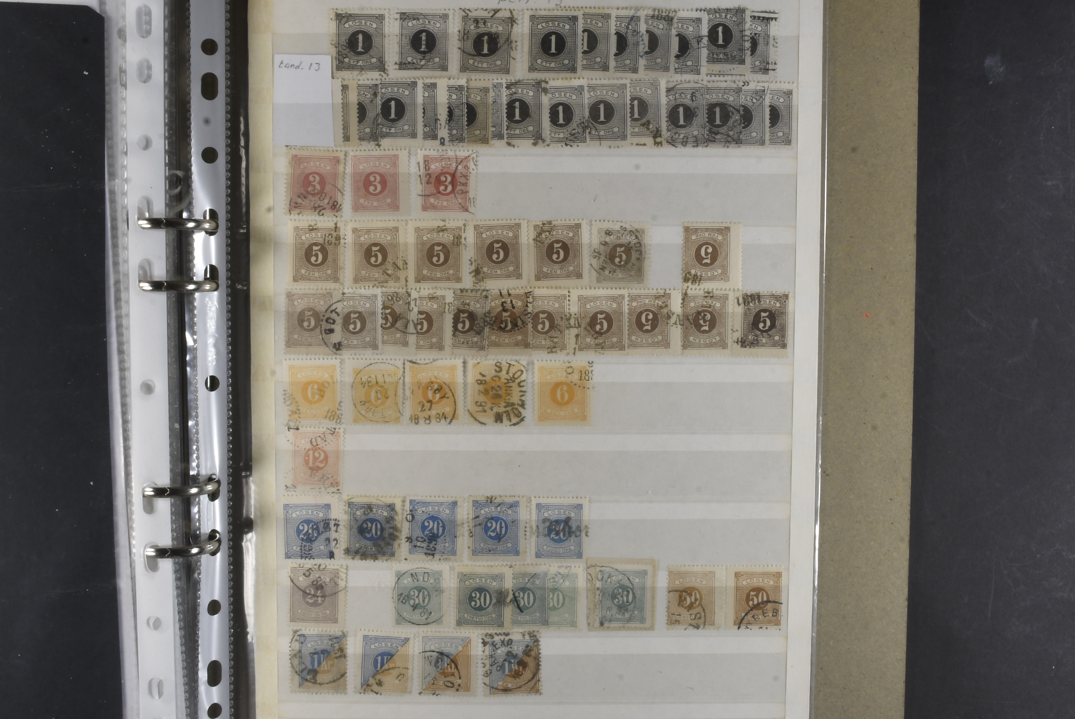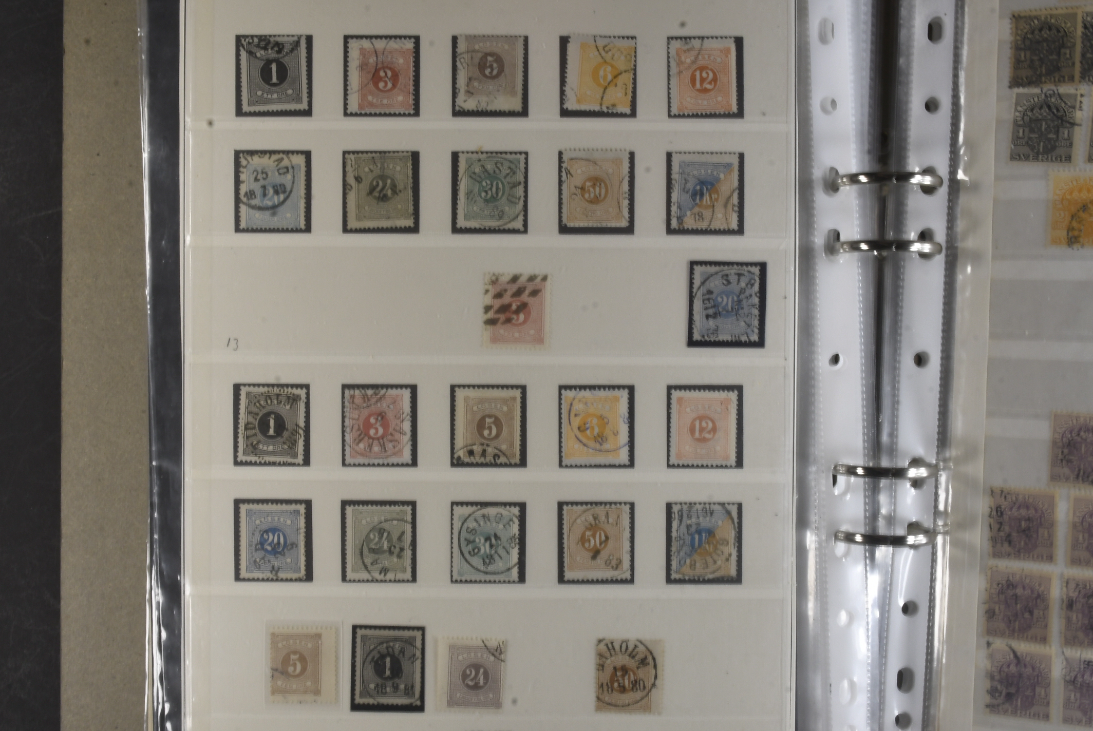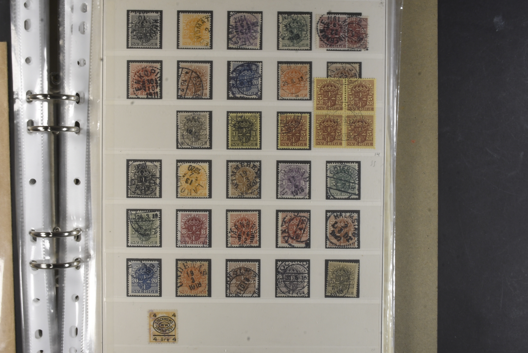 Sweden. Collection/accumulation ★★/⊙ 1874–1919 in album. Large officials, small officials and postage dues. Both used and MNH material. A number of fine–excellent cancellations observed. Please see a selection of scans at www.philea.se. Mostly fine quality. (>300)