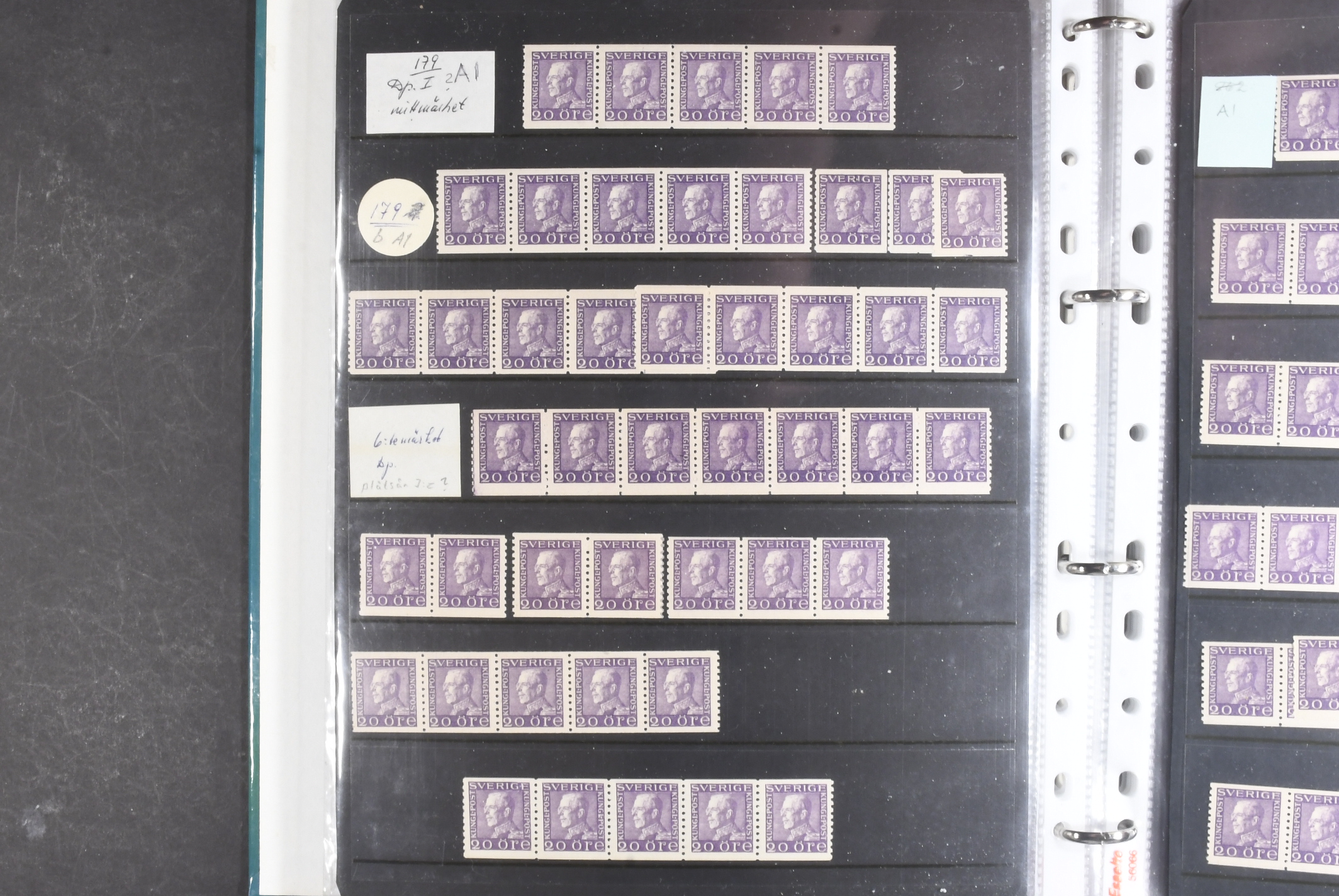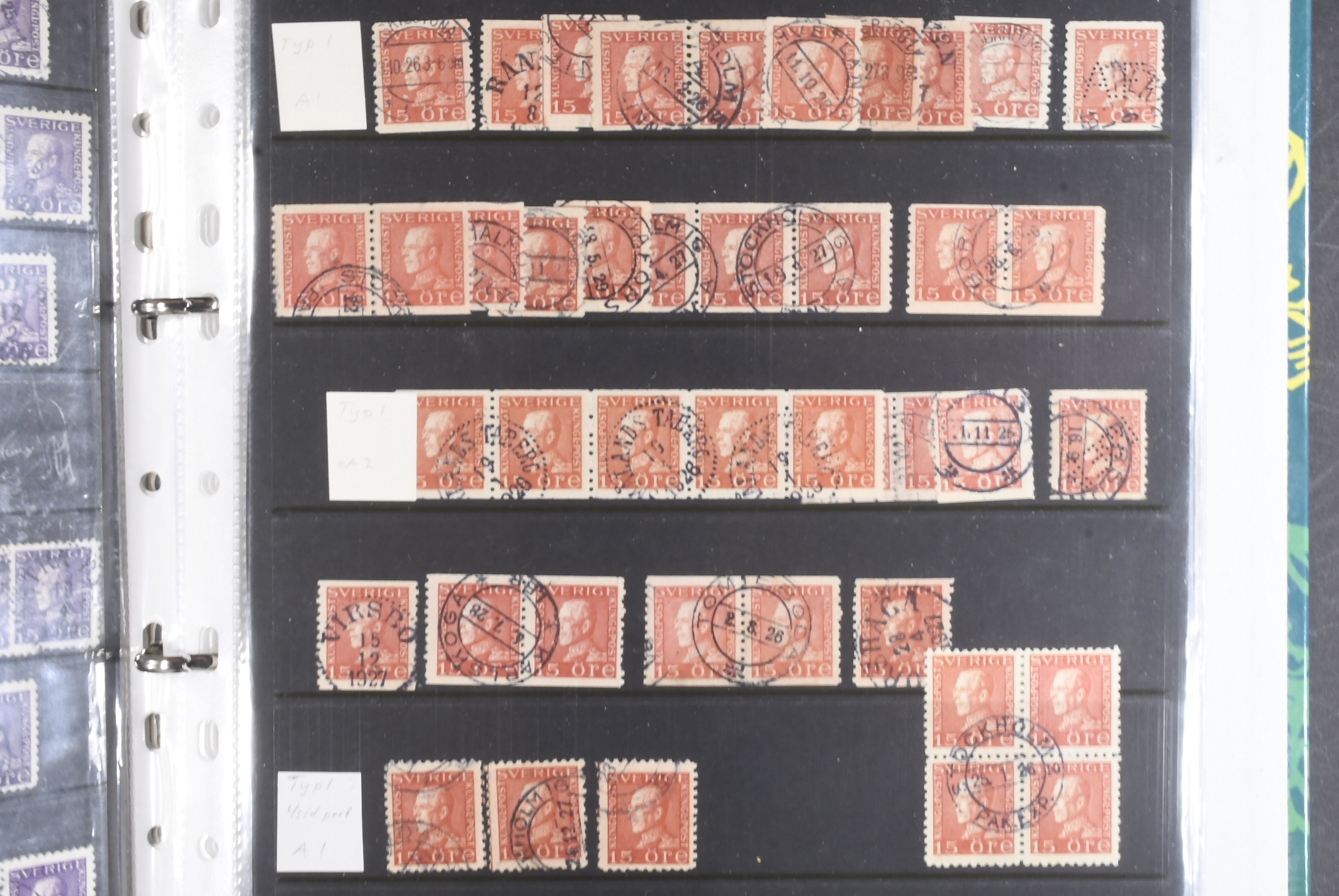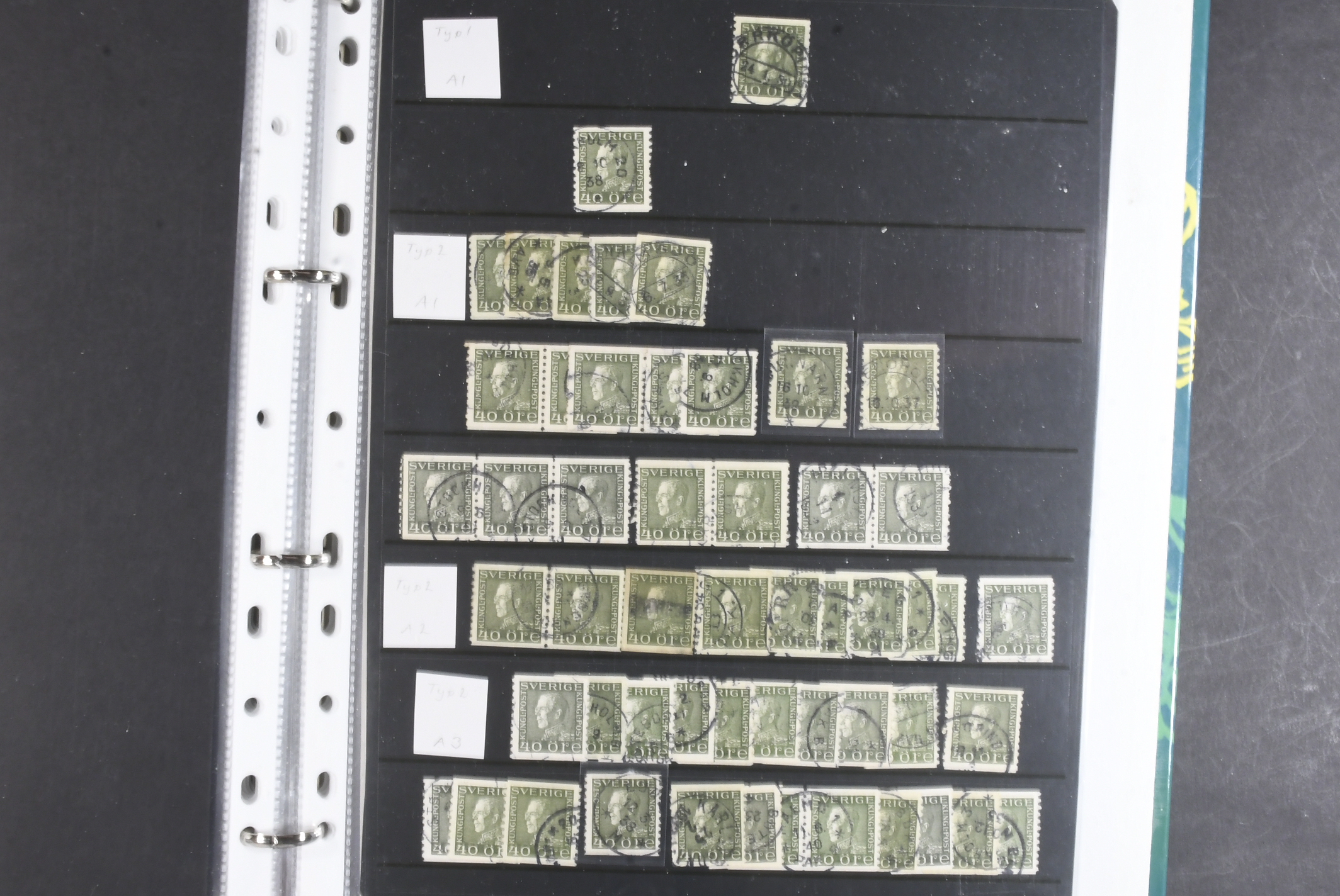Sweden. Accumulation ★★/⊙ 1920–1936 in album. King Gustaf V profile left. Study material. Paper varieties, printing varieties, shades, plate flaws, etc. Also a number of fine cancellations observed. Please see a selection of scans at www.philea.se. Mostly good quality. (>1000)