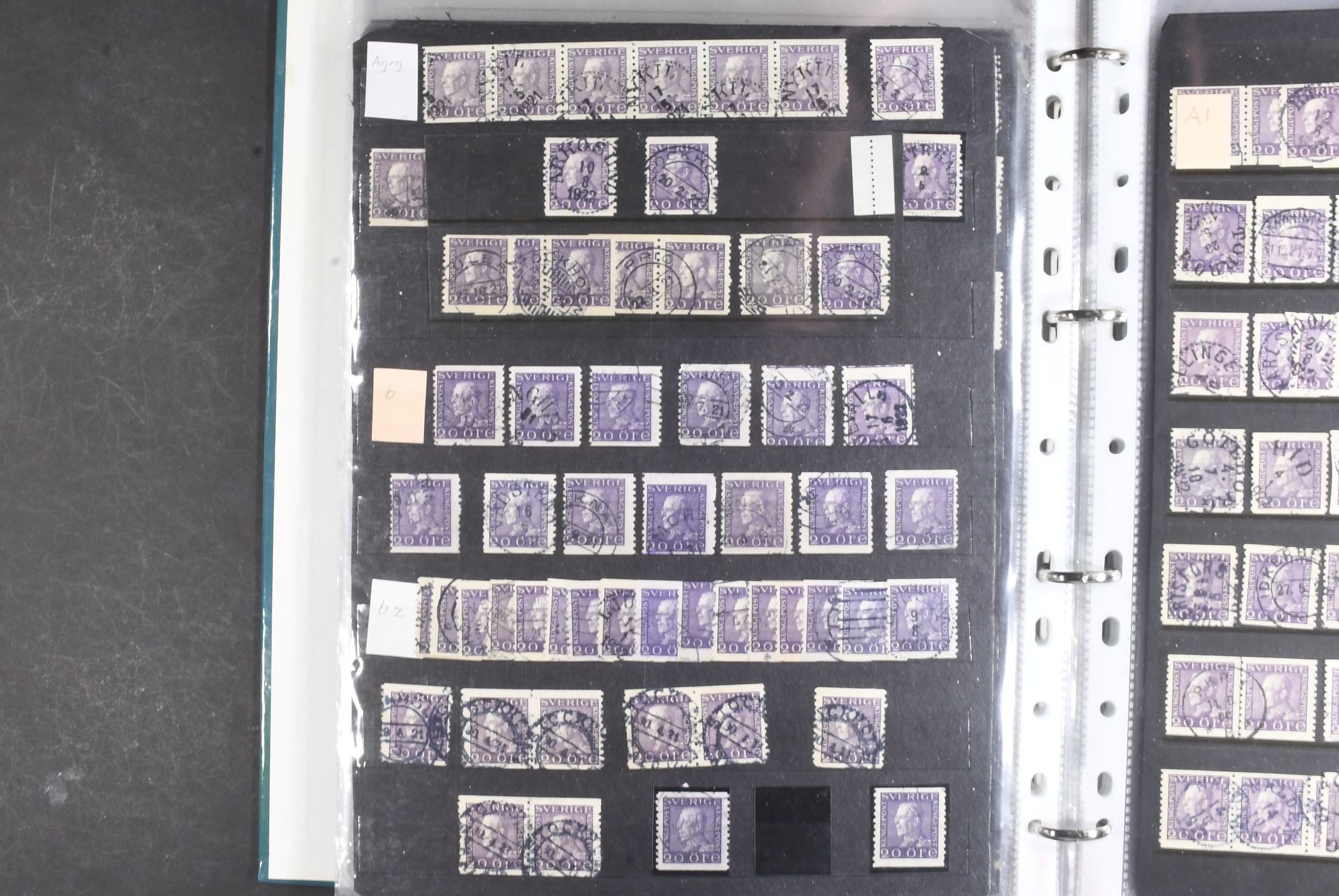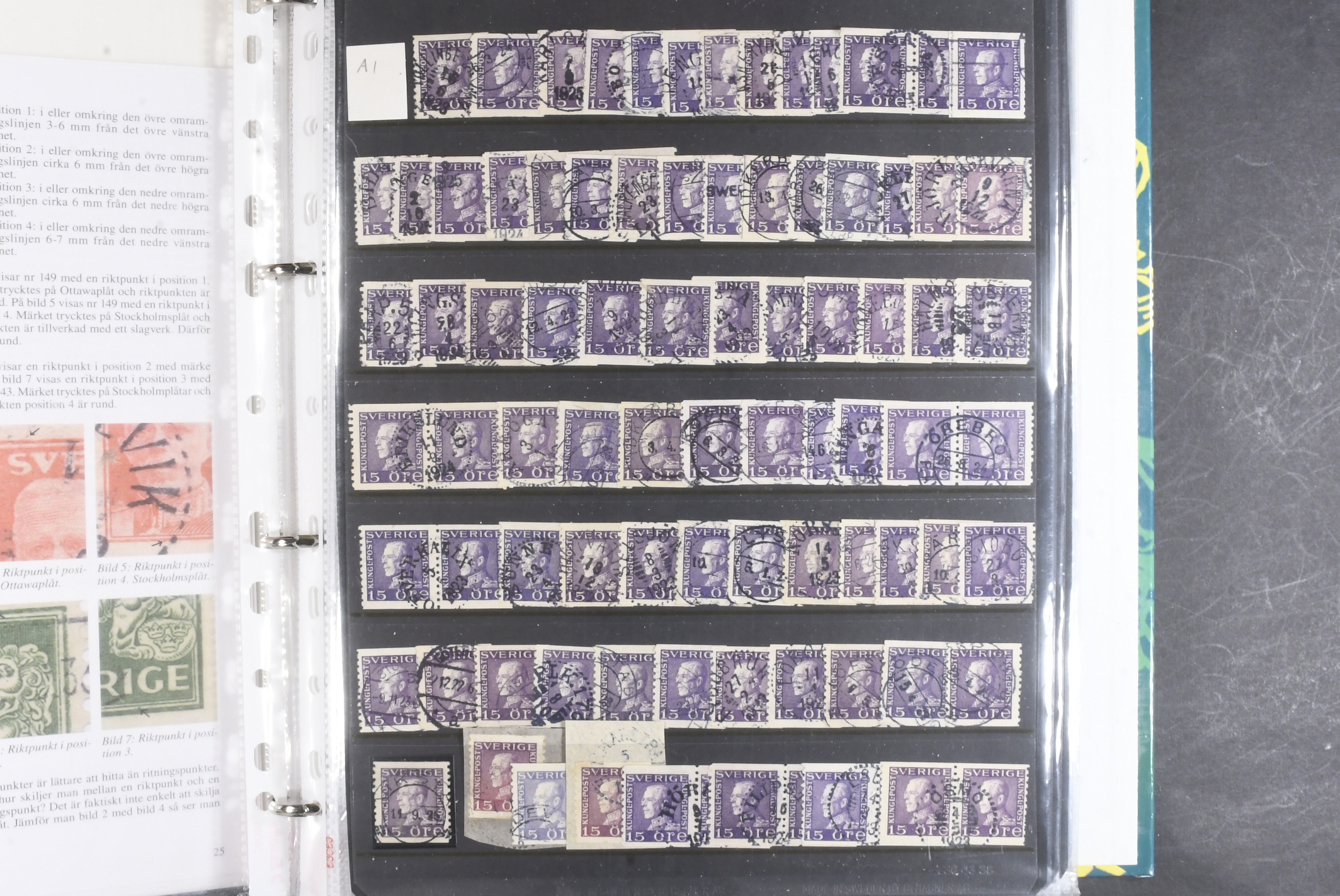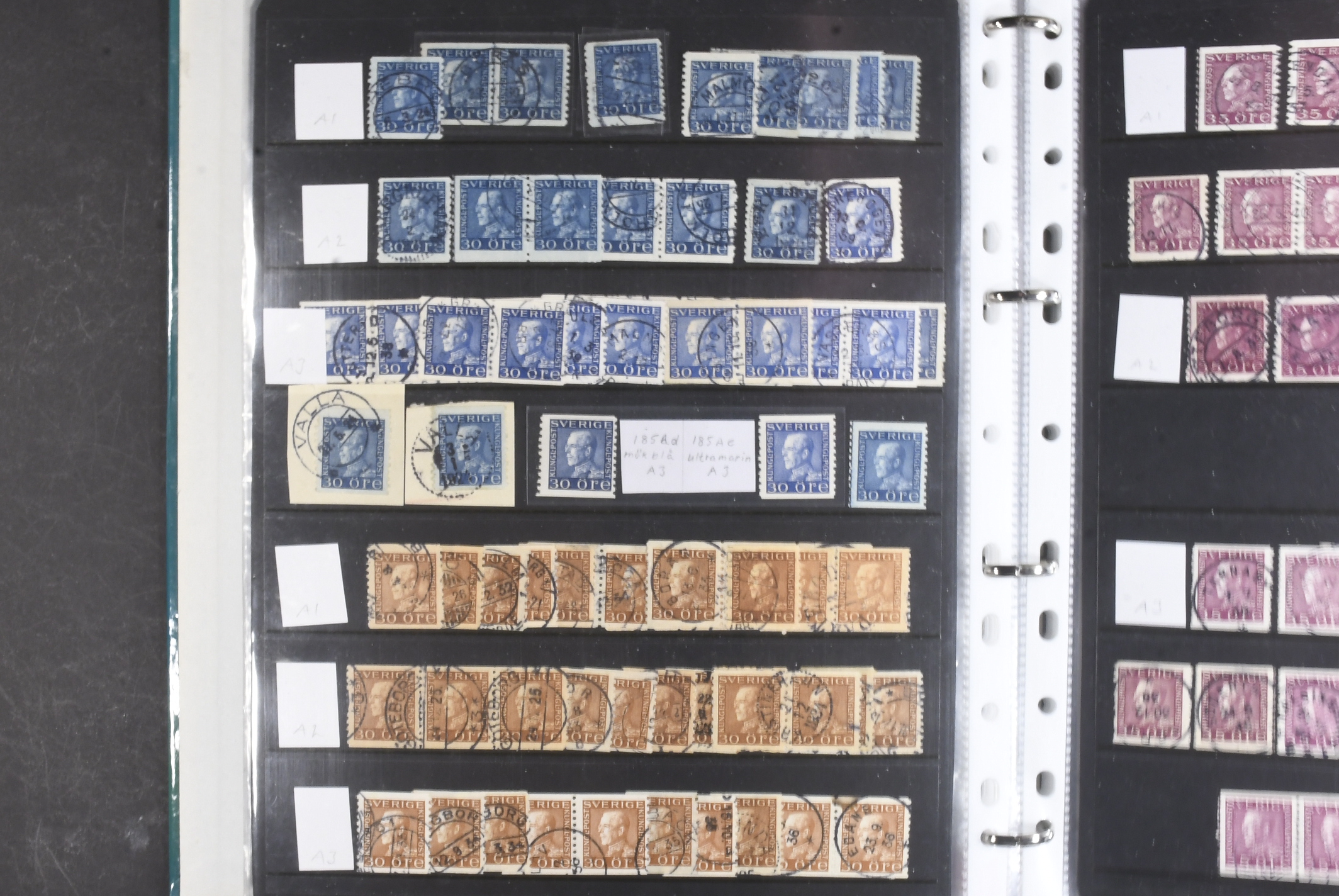 Sweden. Accumulation ★★/⊙ 1920–1936 in album. King Gustaf V profile left. Study material. Paper varieties, printing varieties, shades, plate flaws, etc. Also a number of fine cancellations observed. Please see a selection of scans at www.philea.se. Mostly good quality. (>1000)