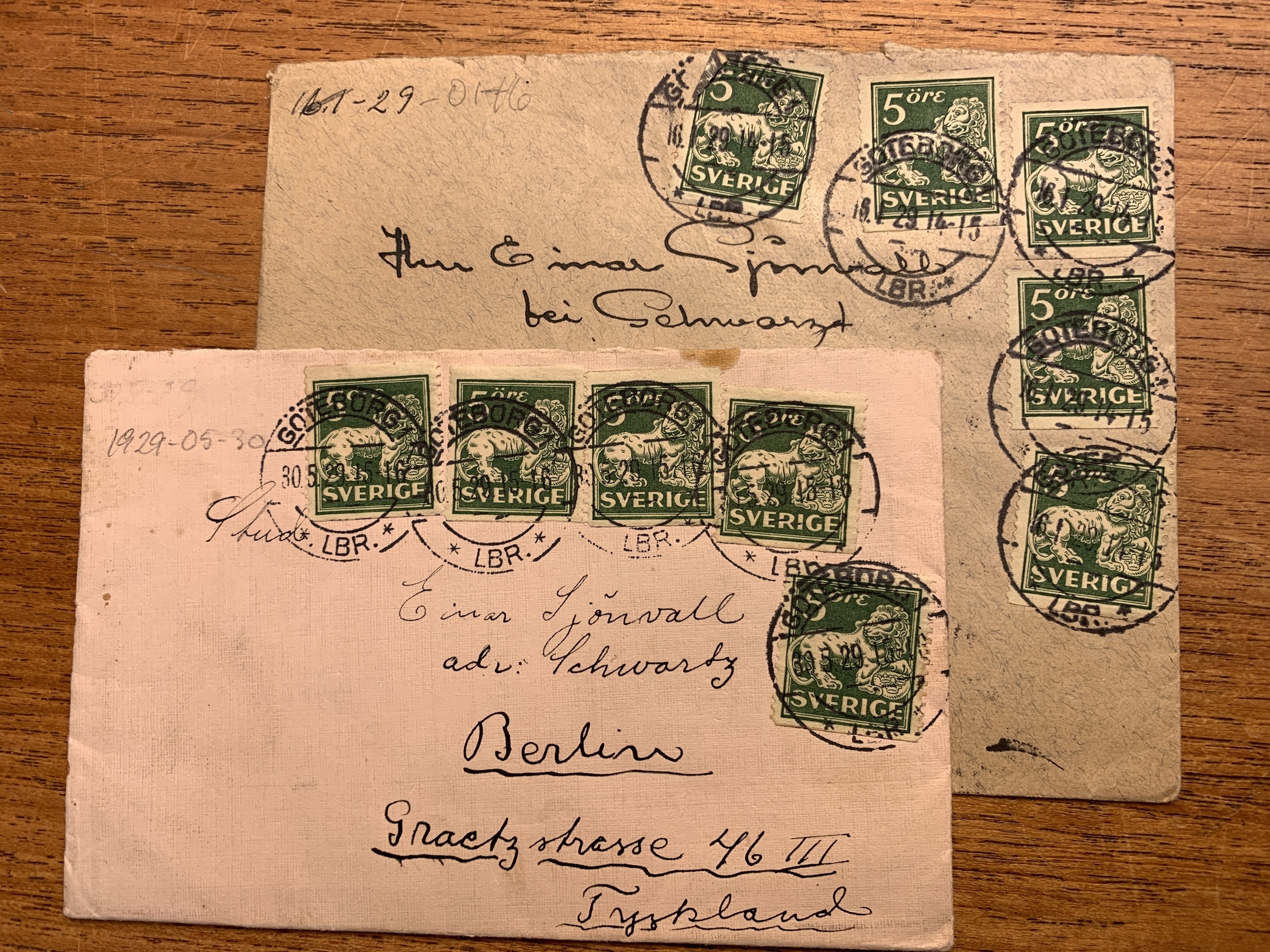 Sweden. Miscellaneous. Lot. Box with e.g. insured covers from ca.1930, unused picture post cards from the exhibition in Stockholm 1930, 4 skill blue in two parts before cancellation on cover to Gagnef, cancelled 7.X.1856 + three other covers. All with content + three albums sparsely filled with stamps. Please see a selection of scans at www.philea.se.