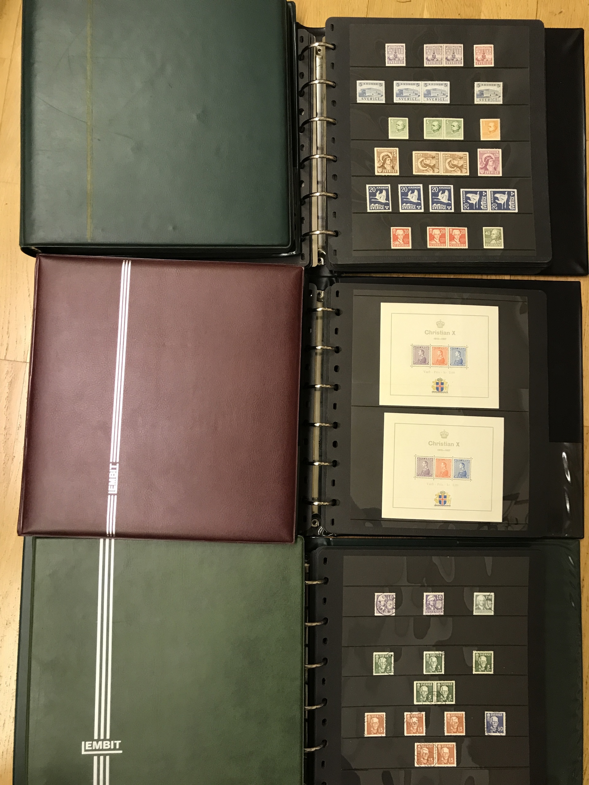 Sweden. ★★/★/⊙. Box with e.g. ** Sweden 1940–1985 in two visir binders + used incl. 4-skill and some BC/CB-pairs, binder with ** Faroes and some Iceland. Approx. 11 kg.