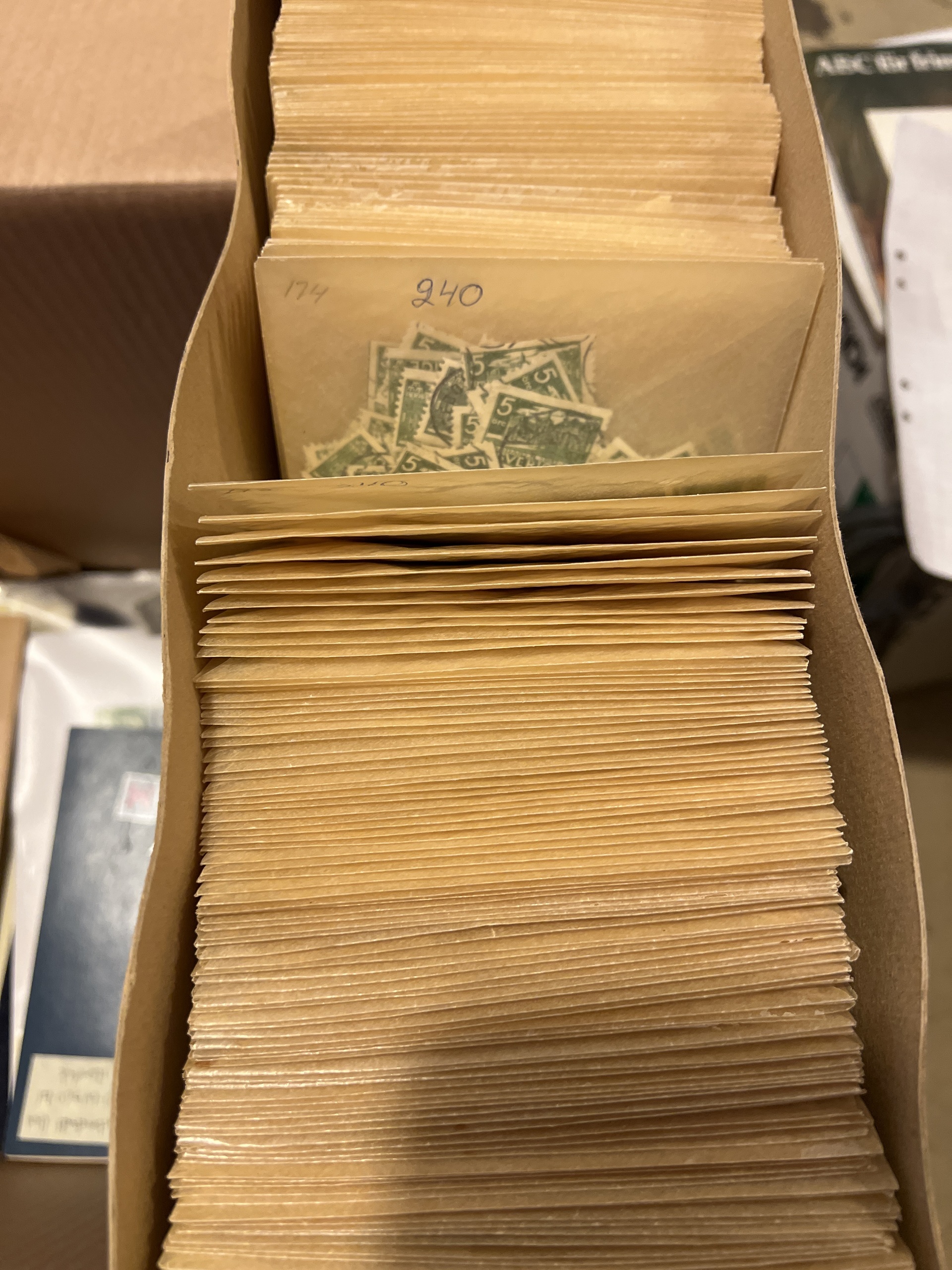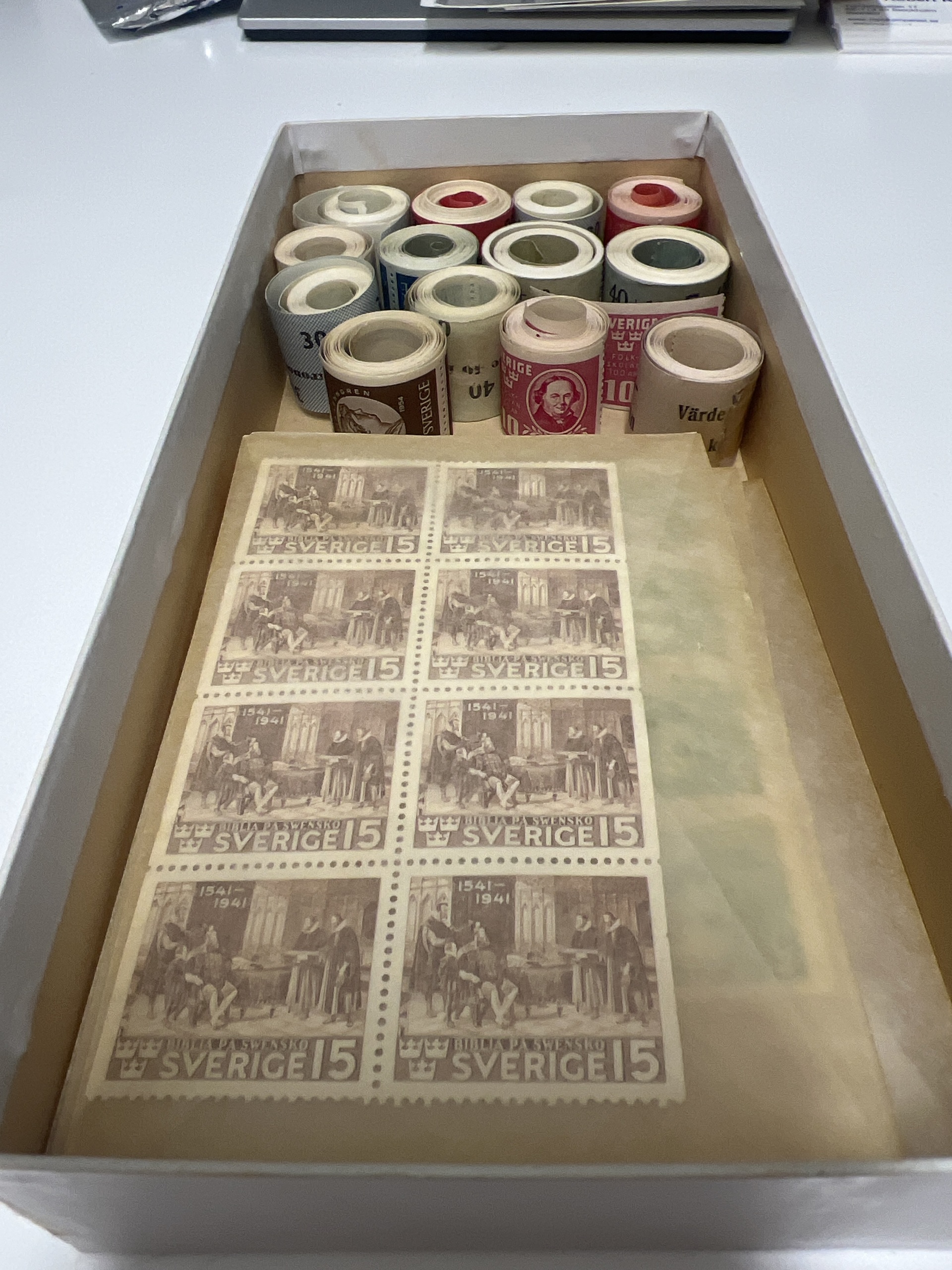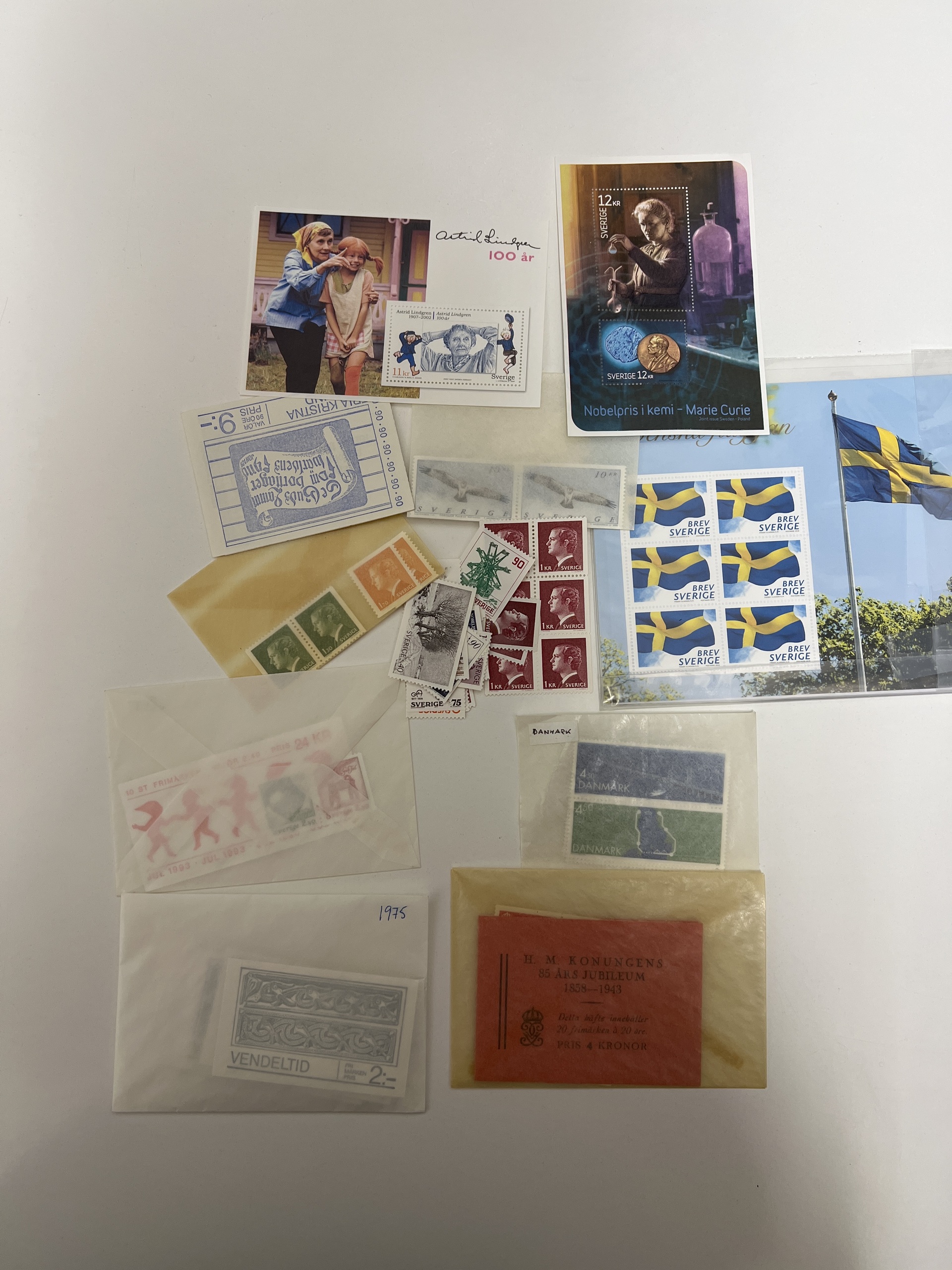 Sweden. Sweden **/*/¤ accumulation 1900–2010s in removal box (1000s). Mostly Sweden, with boxes, cover albums, both used, mint/hinged, BC/CB paars, series from around 1920s up to 1950s both used and mint. File index in glassine envelopes starting 12 öre coat of arms up 1960s. Please inspect, chance for cancellations. Some face value Sweden. Also some Nordic material and one album Germany, Austria, Hungary.